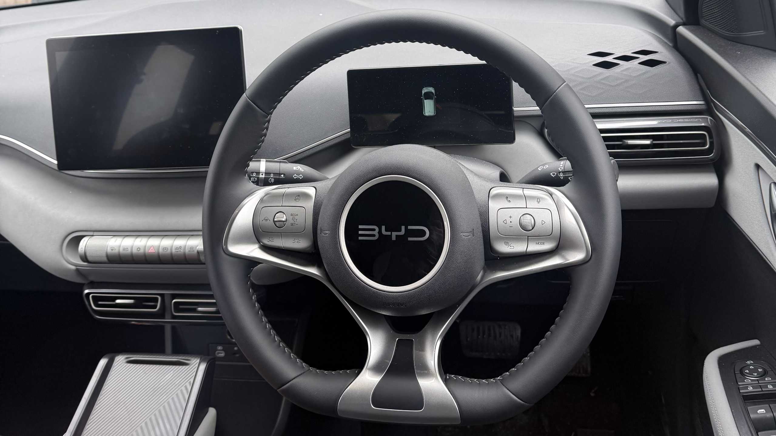 "Leather steering wheel and gear knob",
