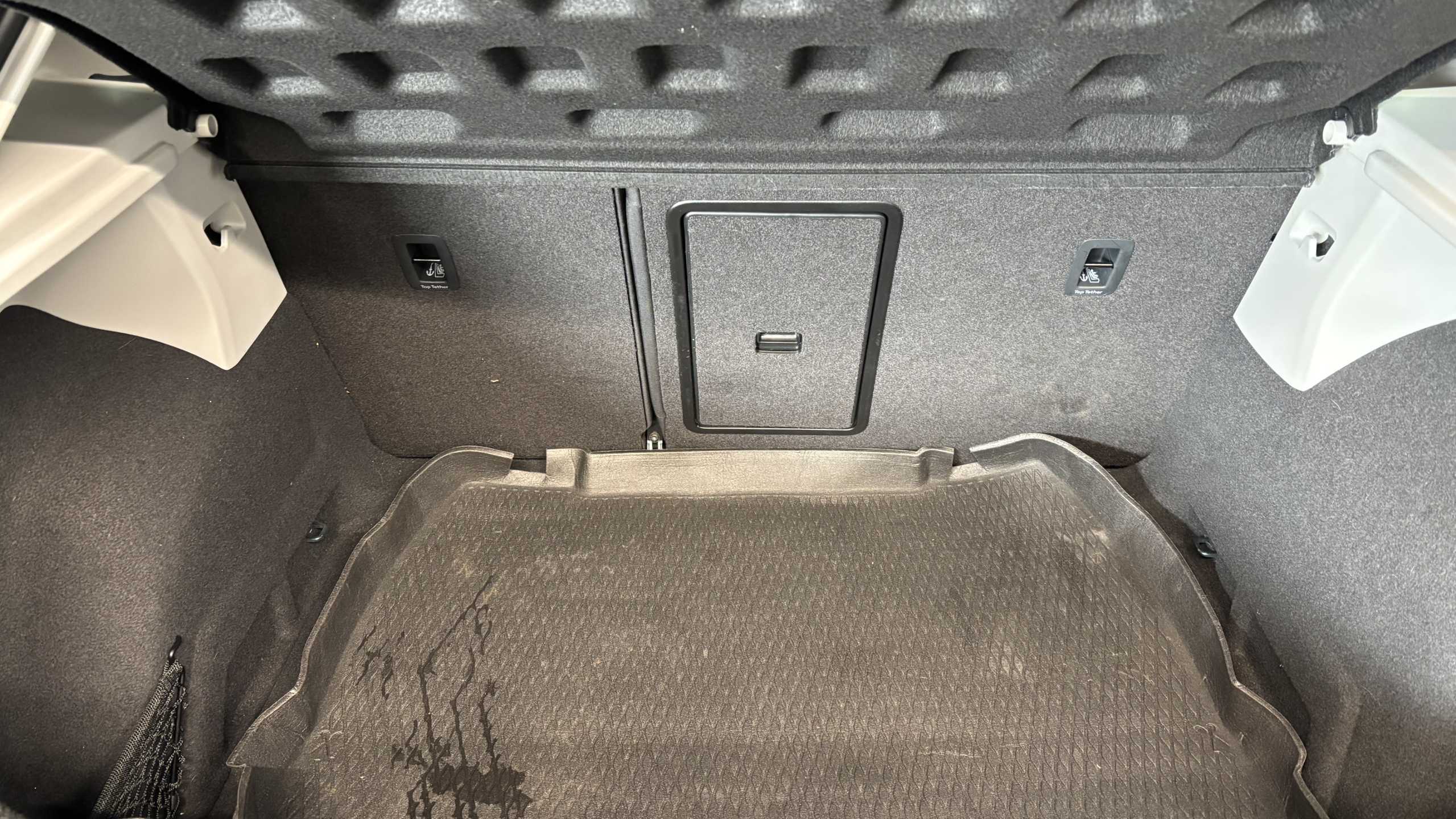 "Storage compartment in side of luggage compartment and storage compartment in spare wheel recess",