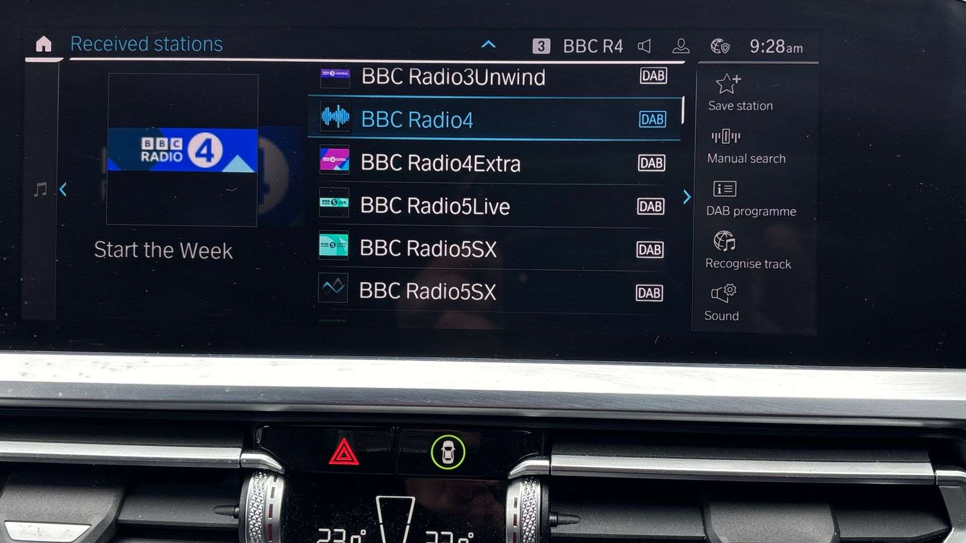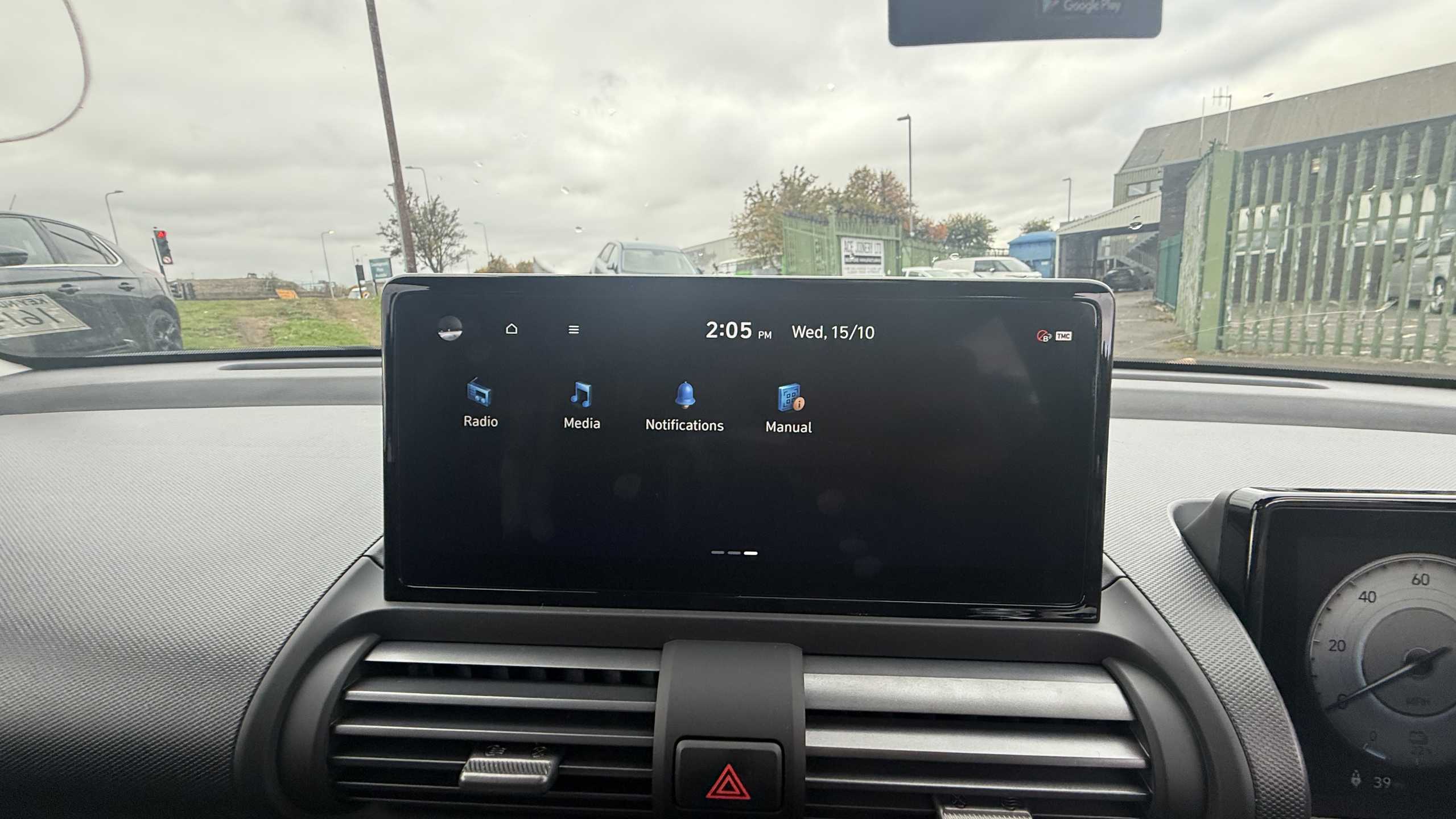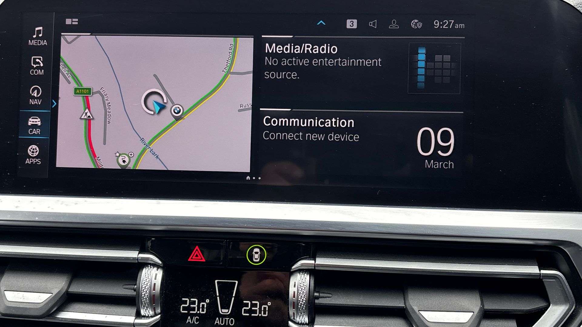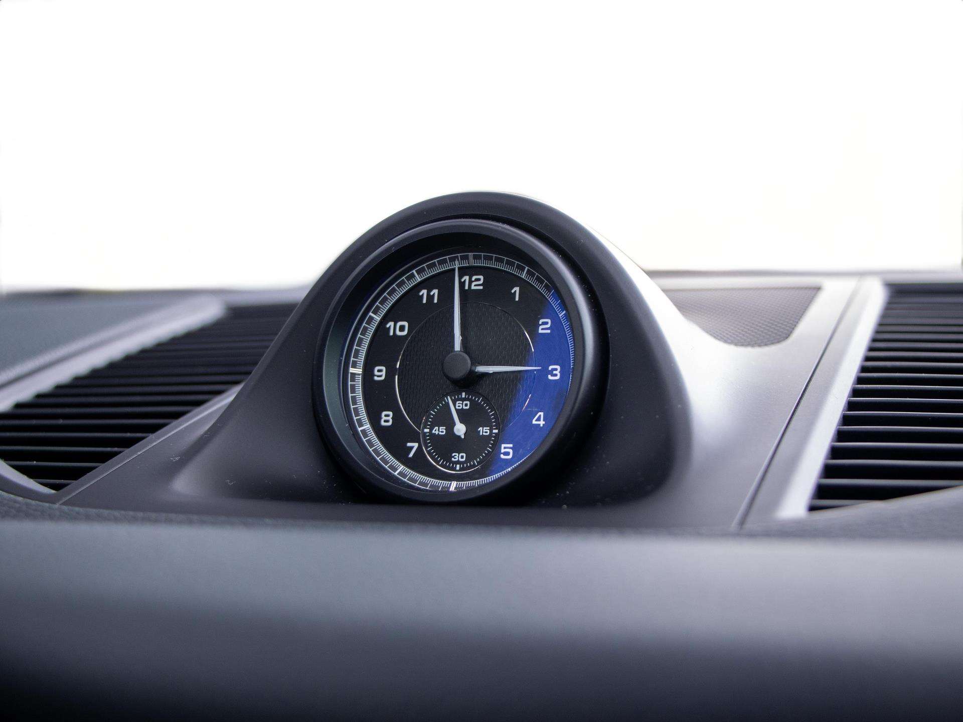 "Analogue clock on dashboard",
