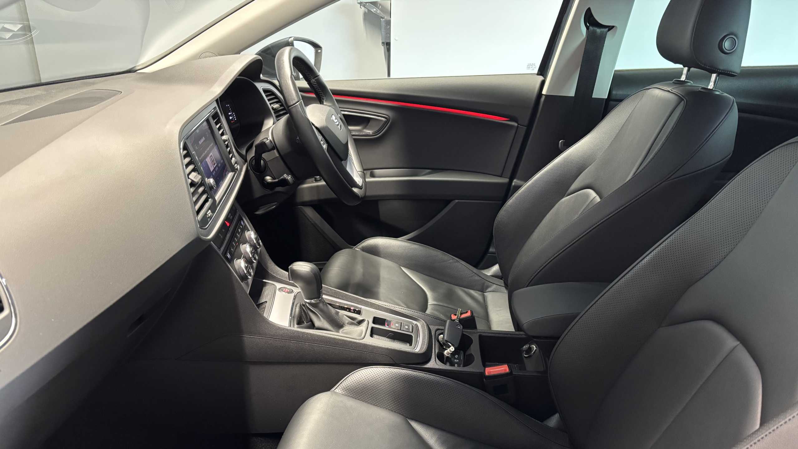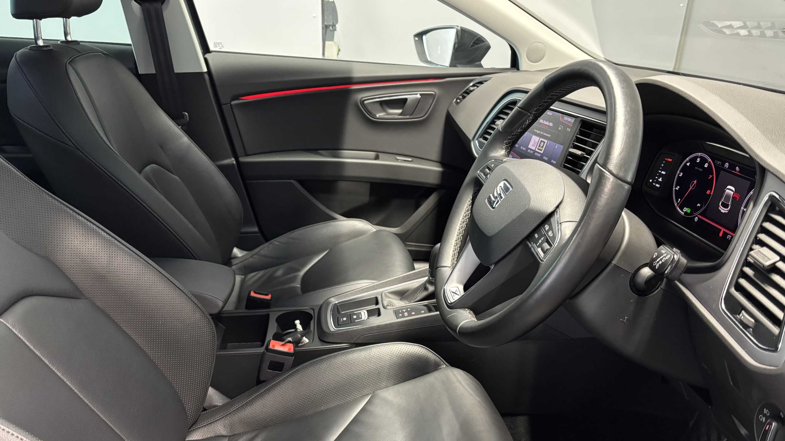 "features": "Digital cockpit, Electro-mechanical power steering, Front and rear parking sensors, Front assist with pedestrian protection, Full Link Smartphone Integration with Mirror Link, Apple Car Play, Google Android Auto with USB Type C cable for Apple and Android compatibility, Media system plus with 8\" display, 4 USB, 8 speakers, CD, voice control, DAB, bluetooth and handsfree, steering wheel mounted audio and phone control, Navigation system 3D map display, high resolution colour driver display, two SD card slots, Rear view camera, RPM, trip computer, outside temp gauge, instrument light brightness, low fuel warning light, lights on reminder, gearshift indicator, SEAT logo boot release, Service interval indicator, Comfort suspension, XDS electronic differential lock, Auxiliary input socket, SEAT USB media cable, Body colour door handles, Body coloured bumpers, Body coloured exterior mirrors with integrated LED indicators, Chrome window trim, Dark tinted rear windows, Electric folding door mirrors, Electric front/rear windows, Electrically adjustable and heated door mirrors, Front grille frame in chrome, Front grille hot stamping, Full LED headlights with LED day time running lights + LED rear tail lights + LED licence plate lights and LED front and rear fog lights, High gloss black finish B and C pillars, Illuminated aluminium front door sill with XCELLENCE logo, Rear wash/wipe, Visible twin exhaust tailpipes, 12v power point in centre console, 60/40 split folding rear seat with armrest, Additional heating and ventilation outlet in rear of centre console, Boot storage net, Cargo rings in boot, Driver and passenger seat height adjust, Driver and passenger sun visor, covered and illuminated mirror, driver sun visor with card holder, Driver seat lumbar adjustment, Dual zone climate control, Dust/pollen filter, Front centre armrest with storage compartment, Front cupholders x 2, Front passenger seat lumbar adjustment, Front seatback storage pockets, Front sport seats in leather, Front/rear floor mats, Height adjustable front and rear headrests and third rear headrest, Height/reach adjust steering wheel, High centre console with integrated box & cup holder, rear air outlet, with armrest in front seats, ISOFIX points in outer rear seats with top tether anchorage points, Leather steering wheel with XCELLENCE logo and leather gear knob, Luggage tie-down hooks, Multi-colour ambient interior lighting, Storage box under drivers and passenger seat, Convenience pack+ - Leon, Driving assistance pack with adaptive cruise control - Leon, Safety pack - Leon, Winter pack - Leon, 3 point seatbelts on all rear seats, ABS, traction control system, electronic stability control, Child proof door locks, Driver and front passenger airbags with front passenger airbag de-activation, front side, curtain, driver knee airbags, EBA, Electric handbrake, Electronic parking brake with auto hold, Front seatbelt pretensioners, Front seatbelt reminder, Hill hold control, Multi-Collision braking, Tyre pressure monitoring system, 2 folding remote keys with window open/close function and boot opening/door mirror folding function, Central locking fuel filler cap, Engine immobiliser, Keyless entry and go with wireless phone charger, Locking wheel bolts, Remote central locking + deadlocks, Volumetric alarm with back up horn, Chrome interior detailing, 17\" Dynamic machined atom grey alloy wheels 30/4, ",