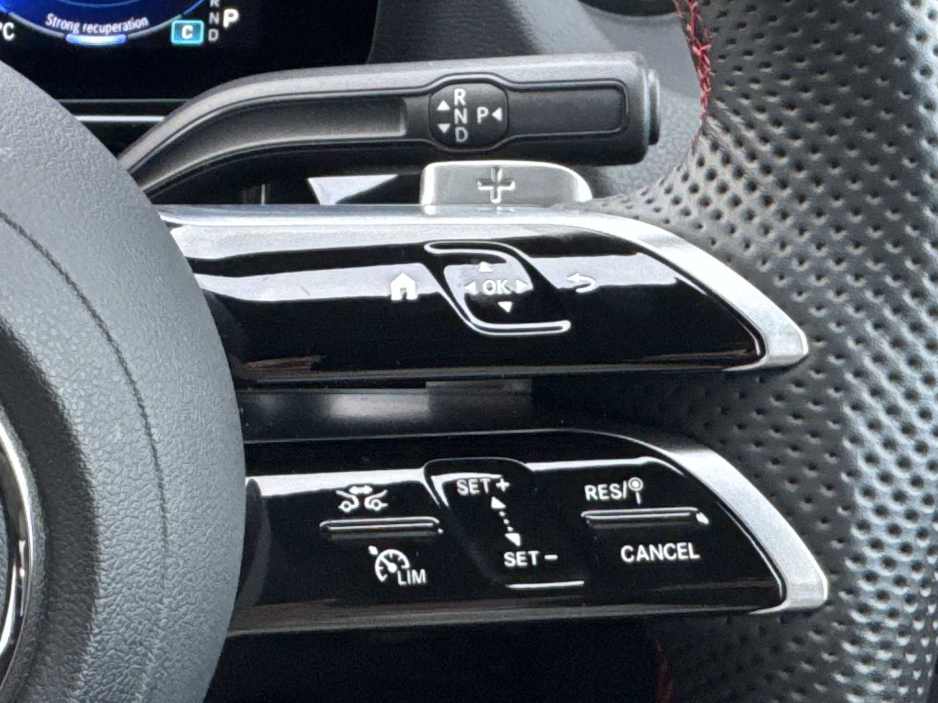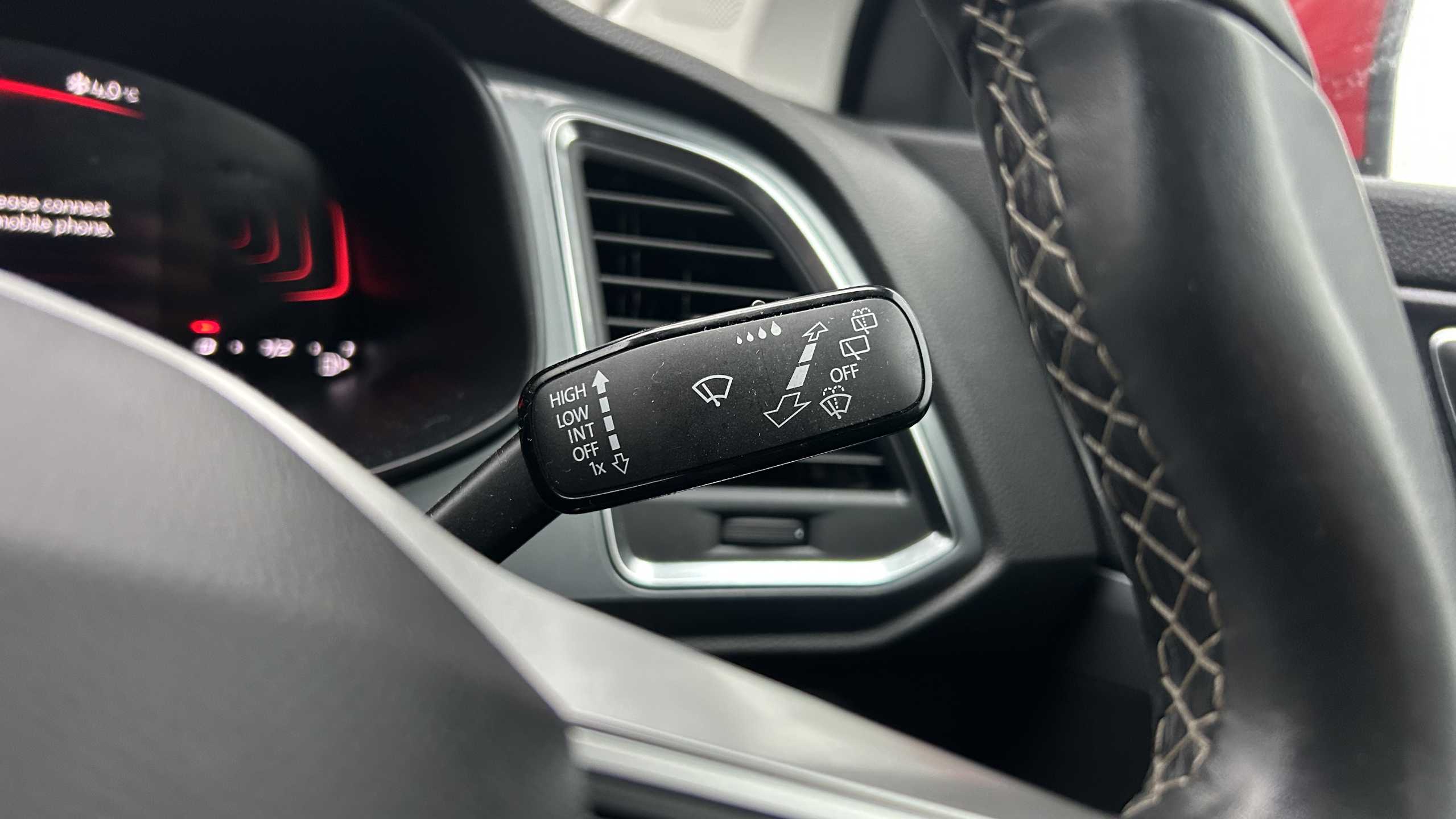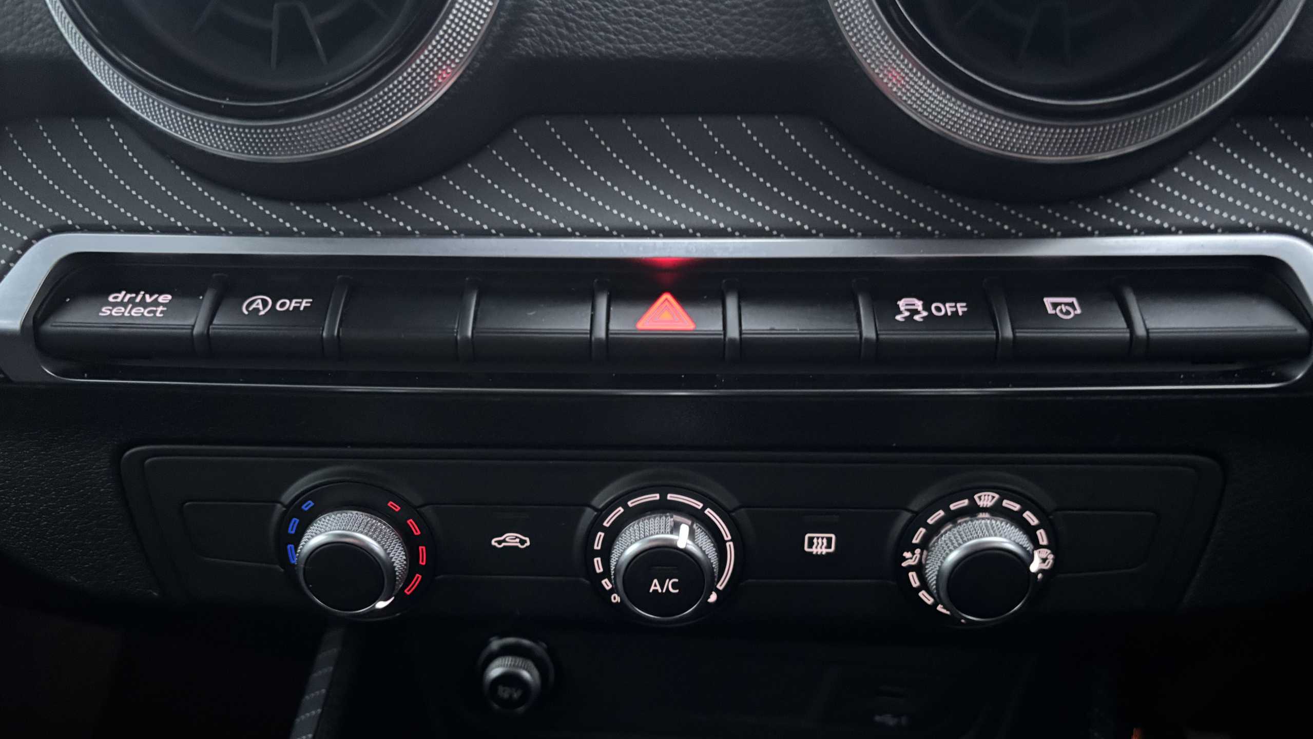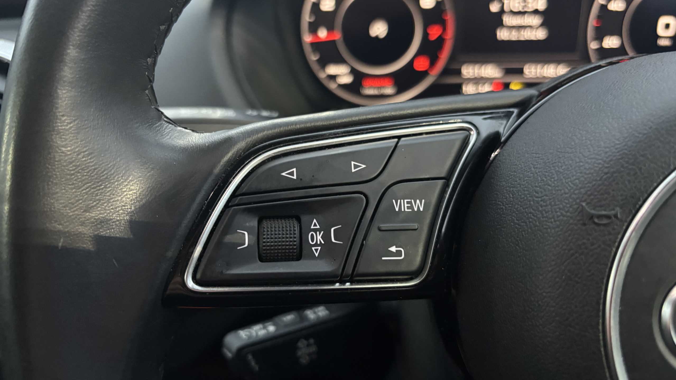 "3 Spoke flat bottom leather multi function steering wheel with perforated leather in grip area",