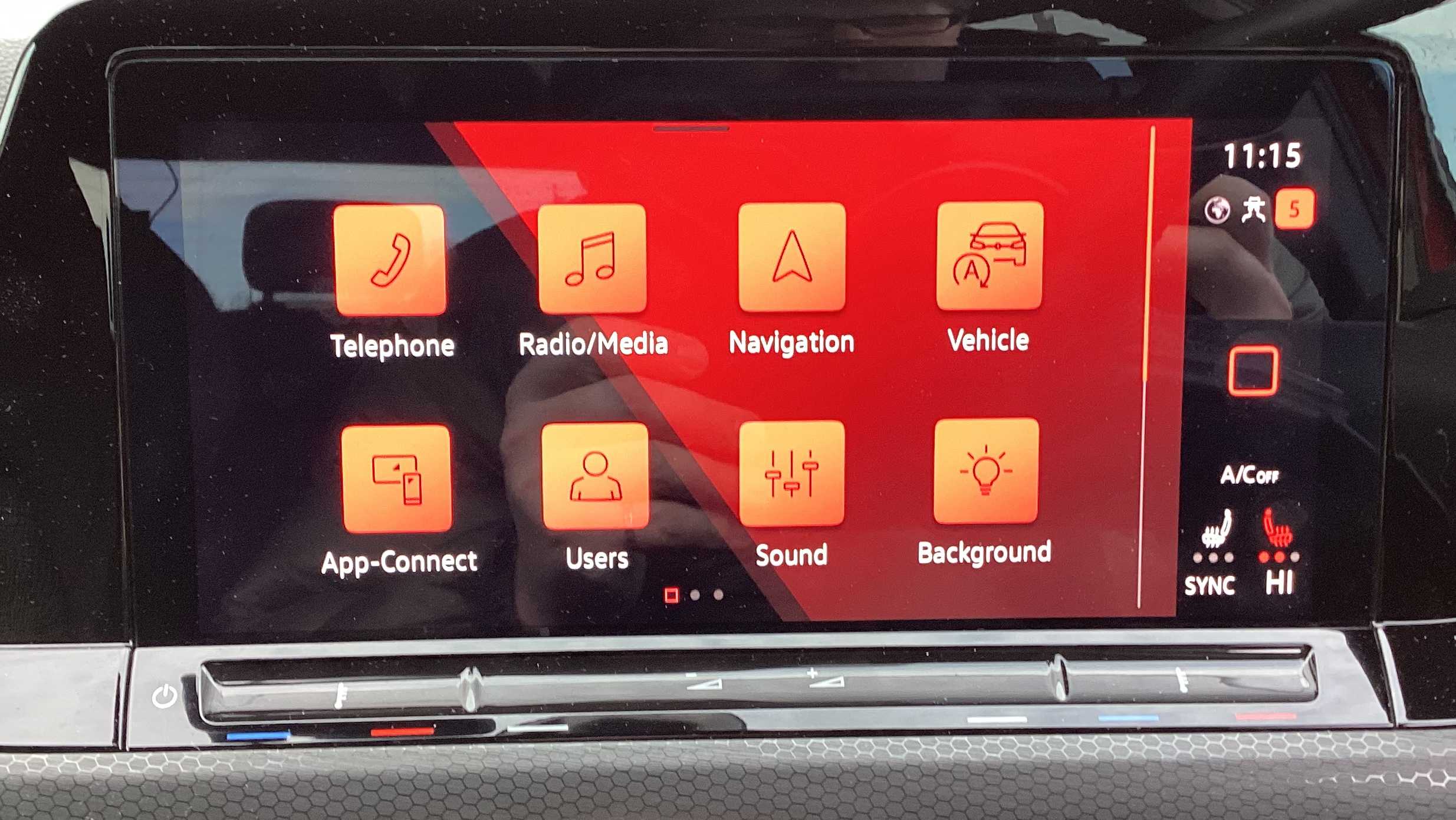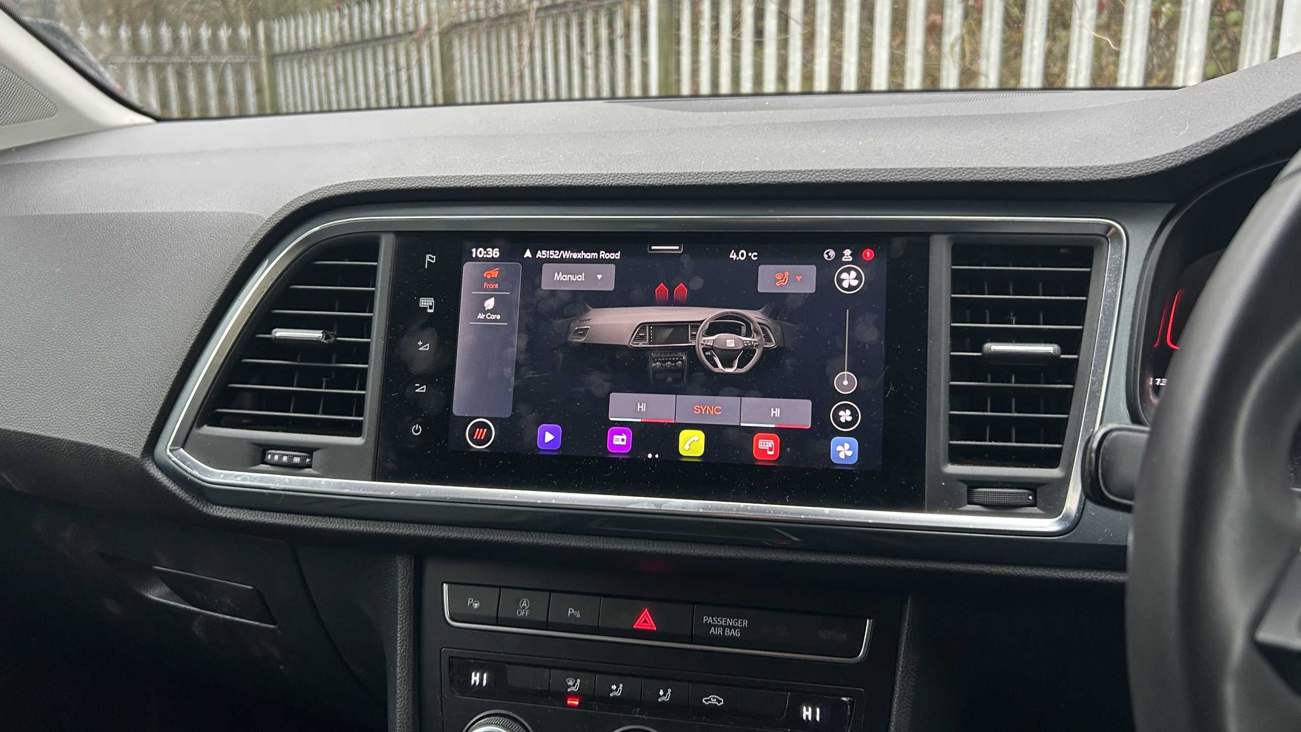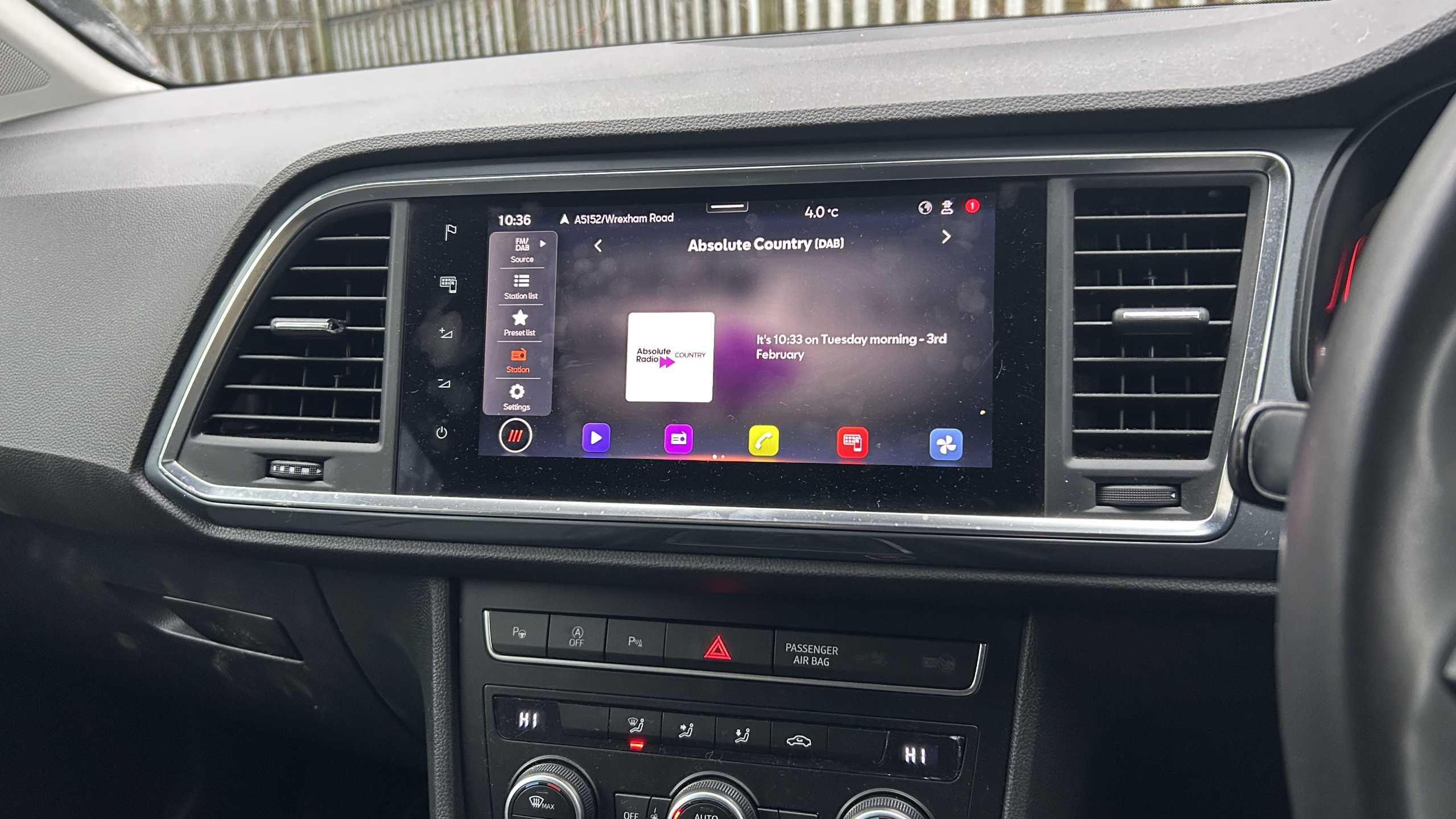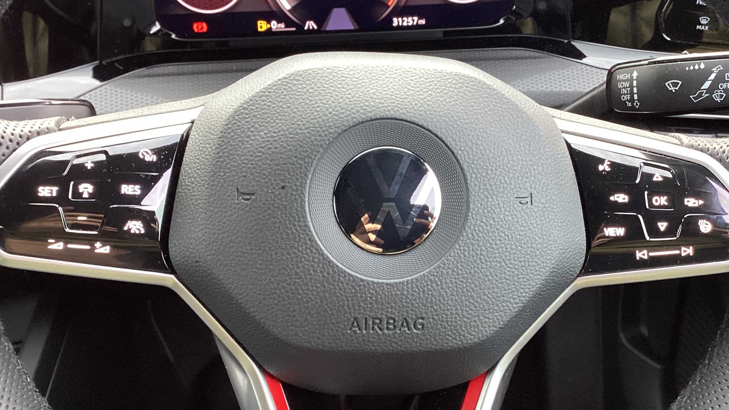 "3 Spoke flat bottom leather multi function steering wheel with perforated leather in grip area",