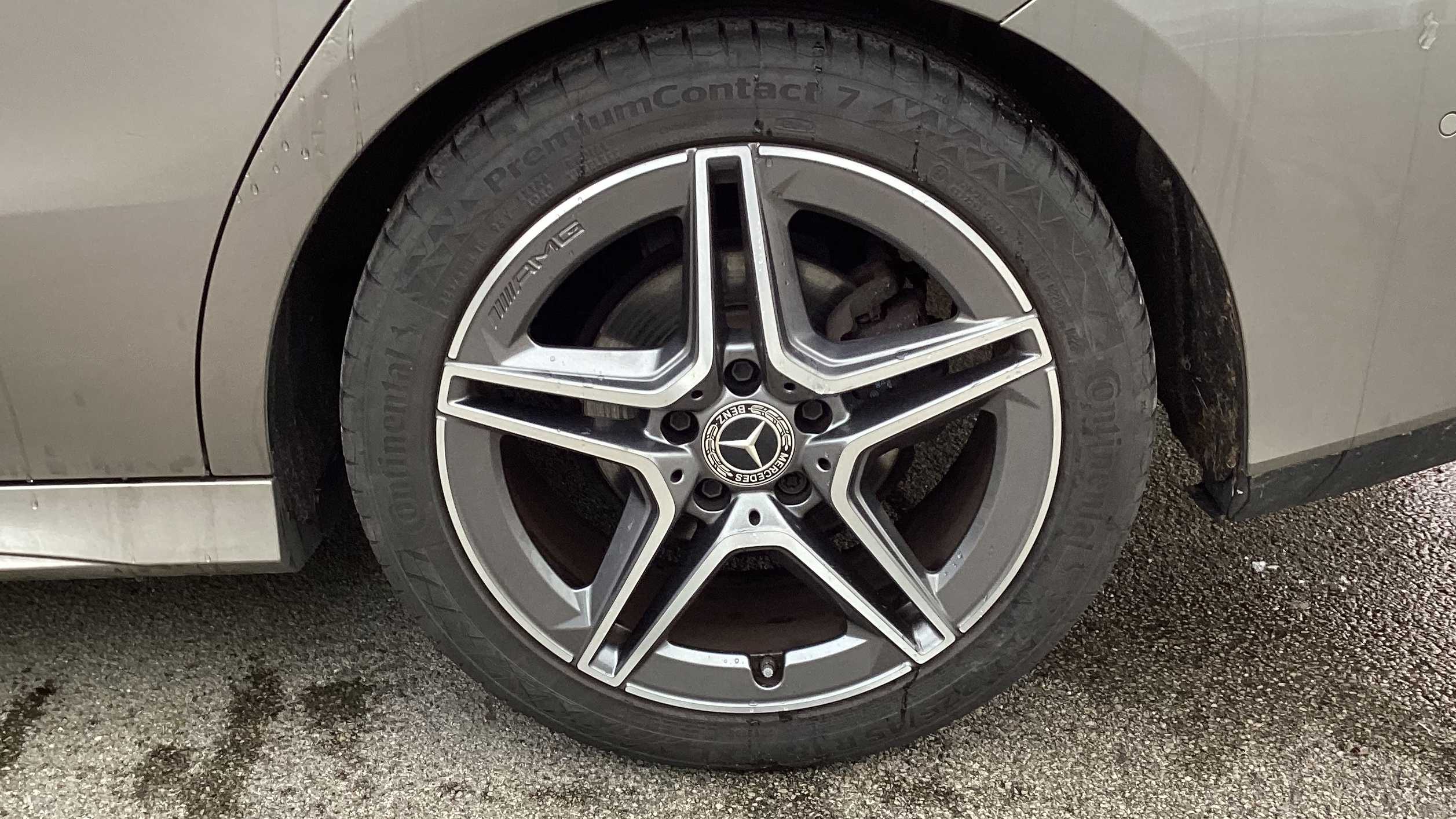 "18\" AMG 5 twin spoke light alloy wheels aerodynamically optimised painted in black with highsheen finish",