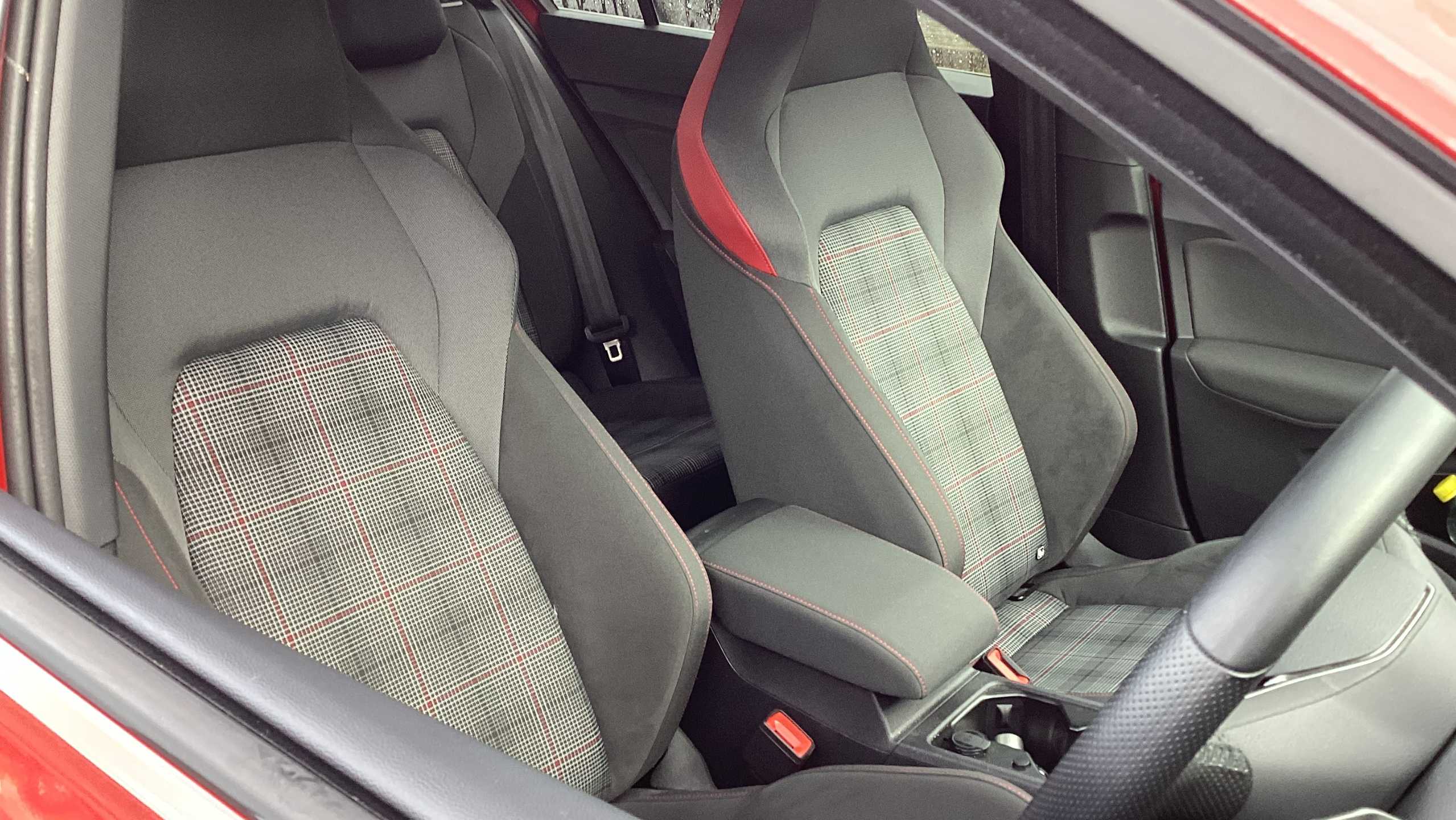 "Sports seats with integrated headrests",