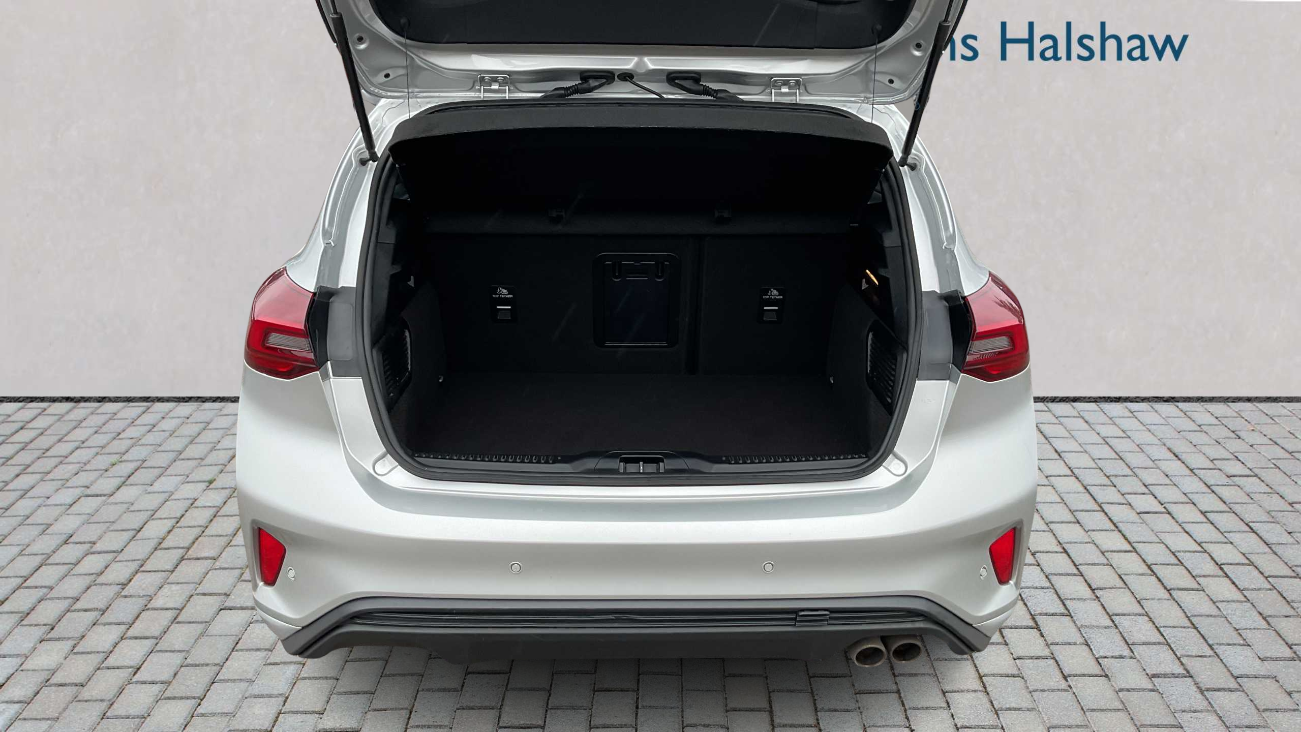 "Exhaust system - Twin visible tailpipes in polished stainless steel",