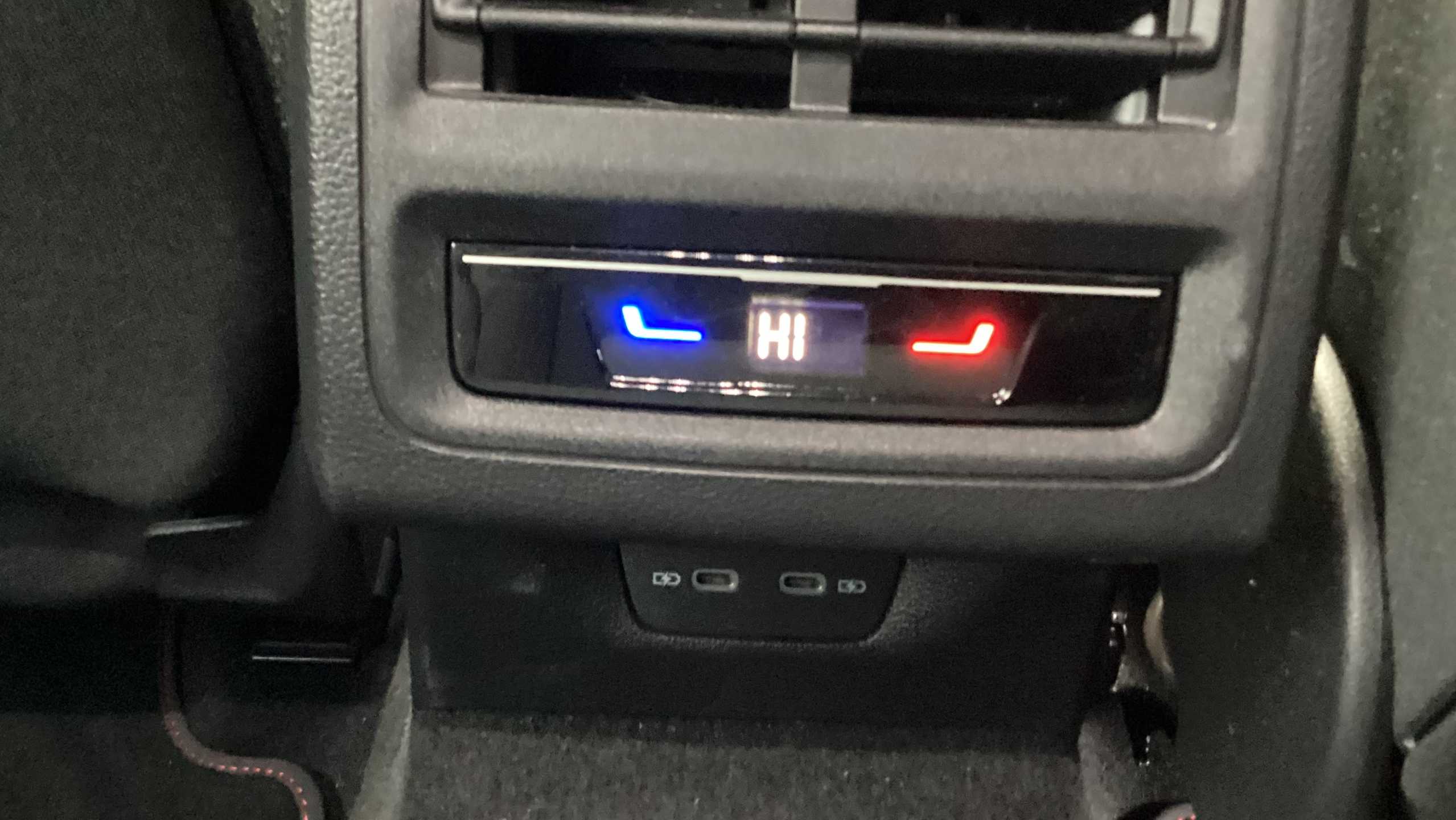 "2 USB ports (type C) in rear stowage compartment and one in front of center console",