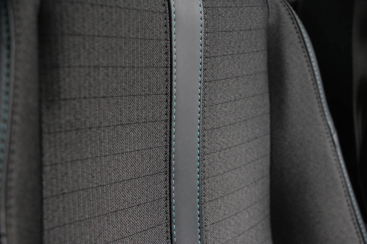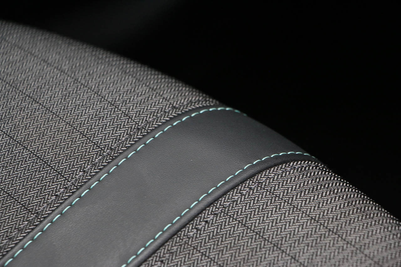 "Tri material cloth/leather effect upholstery"