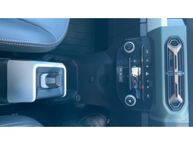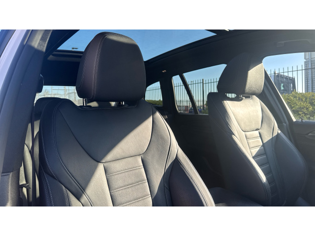 "Tailored instrument panel with contrast stitching"