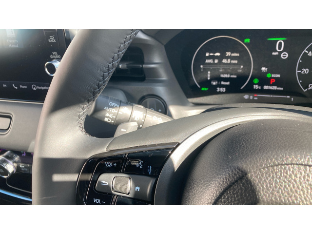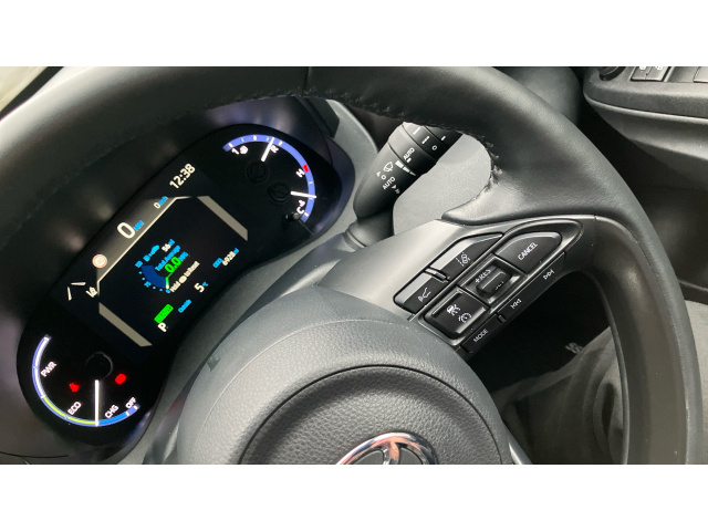 "Techno leather steering wheel with audio controls"