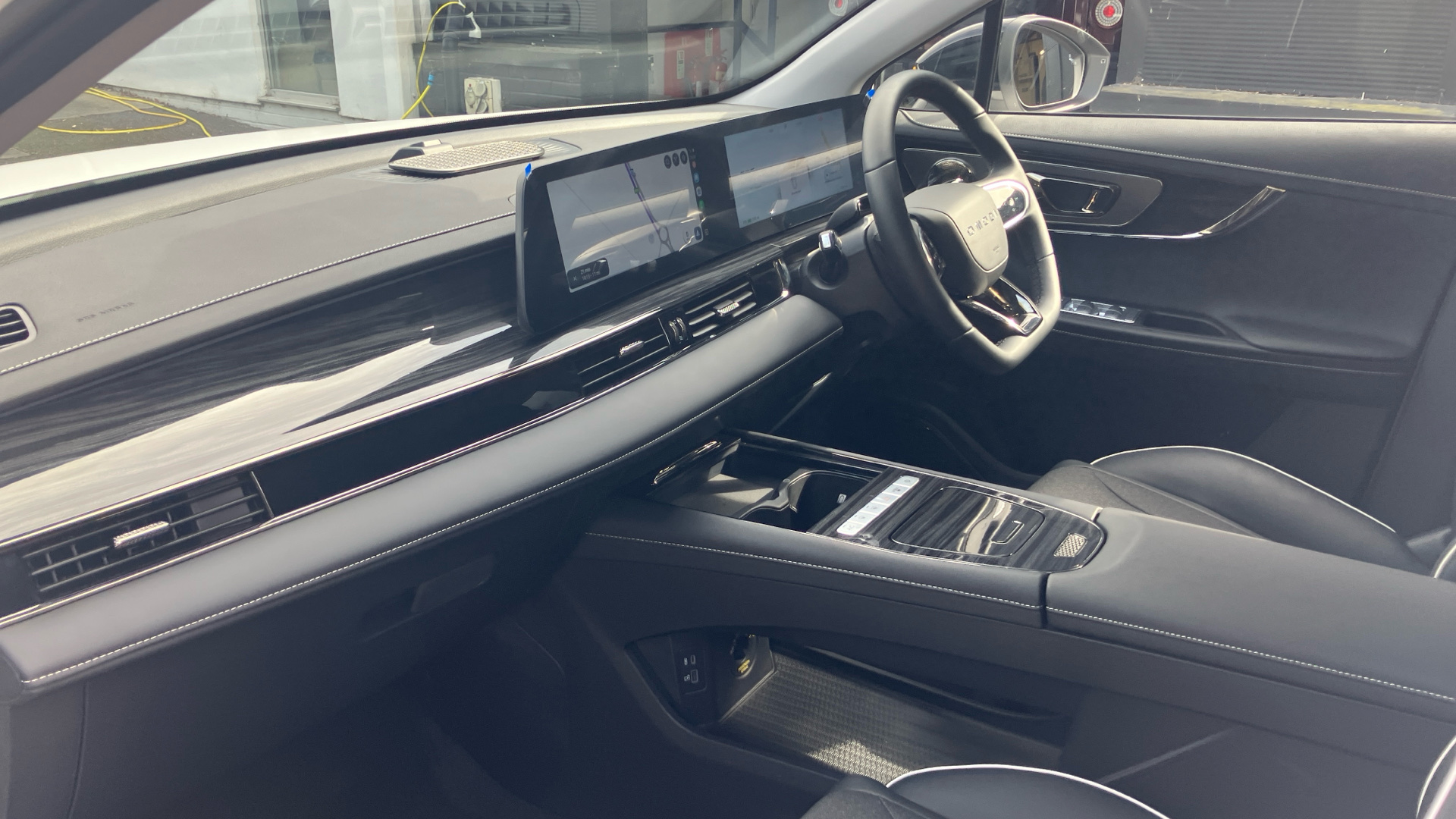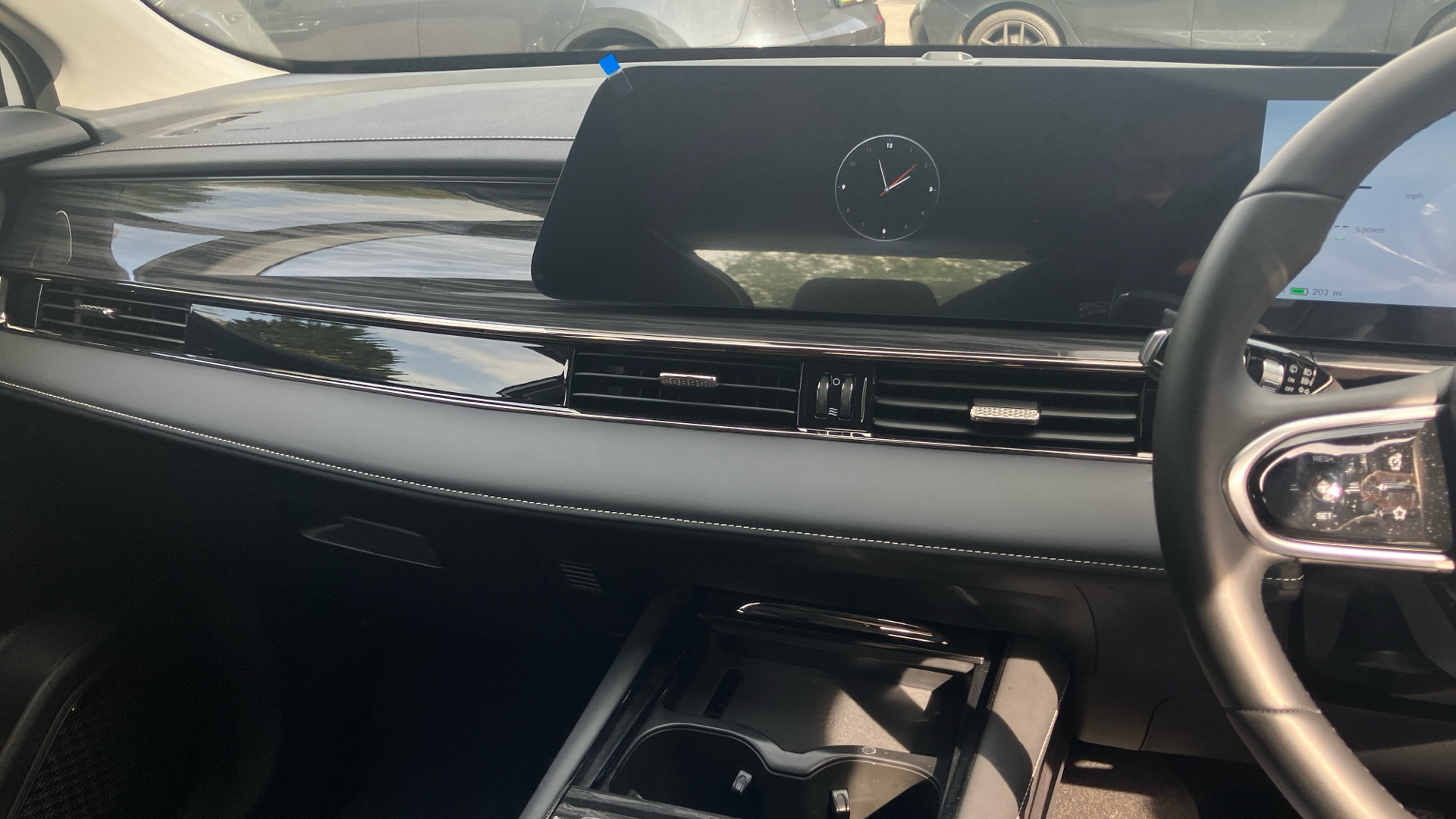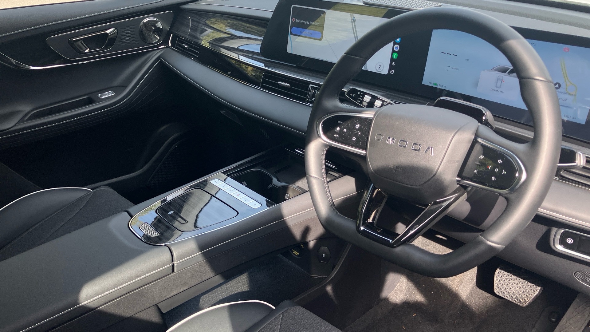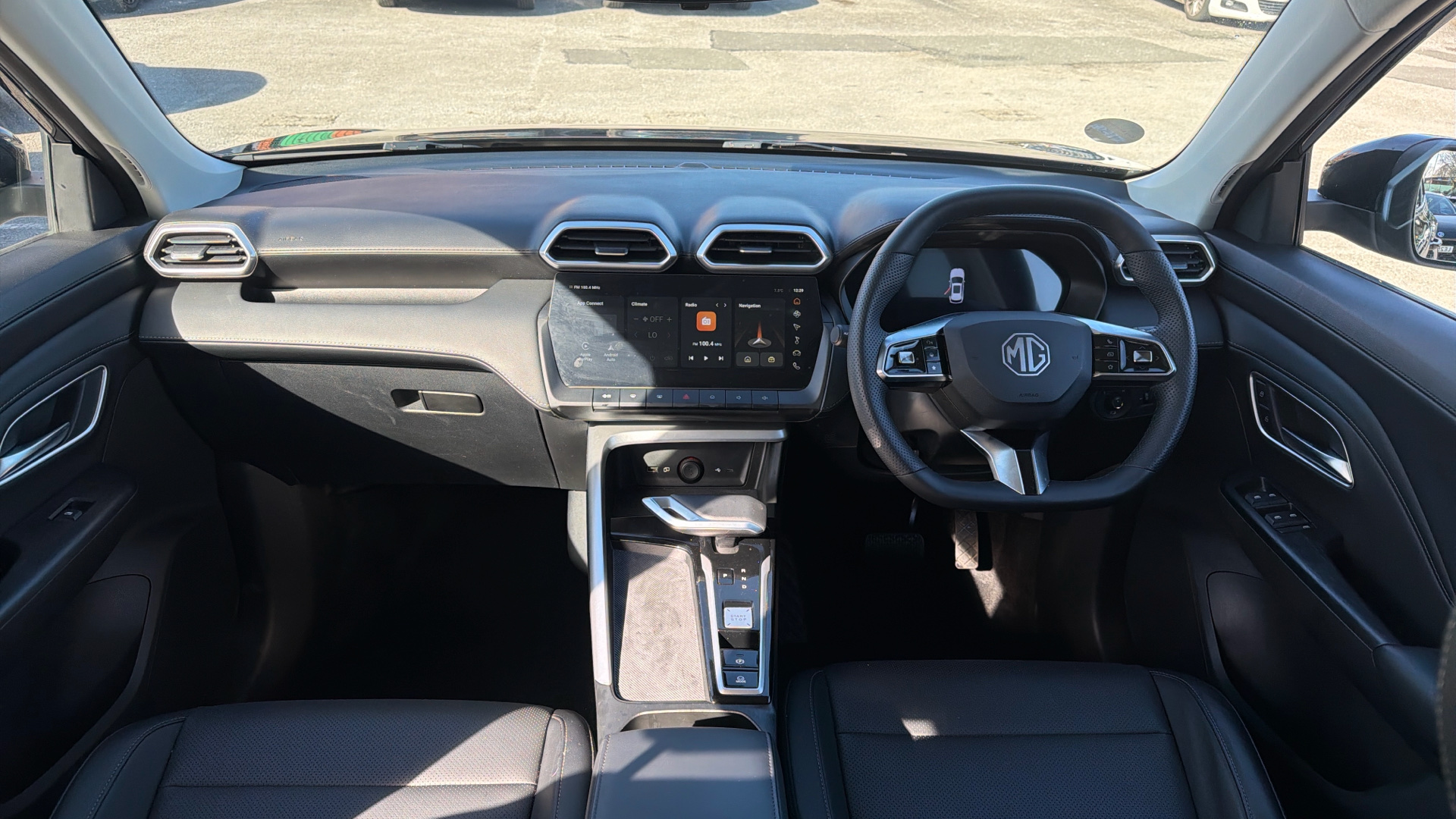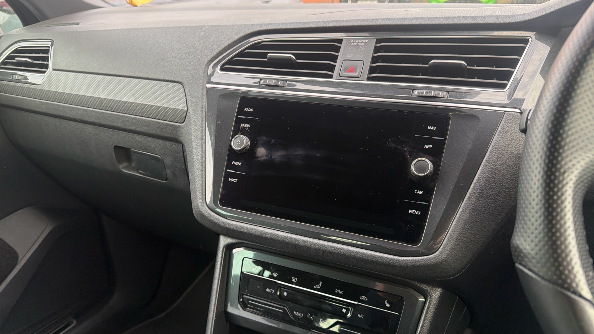"Steering wheel, dashboard and central controls in black",