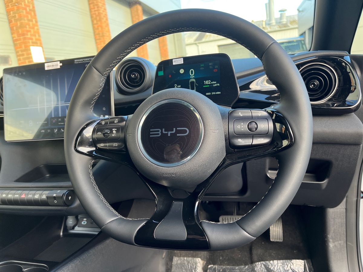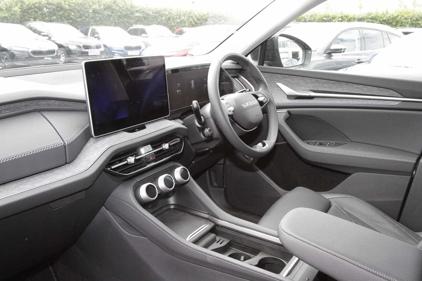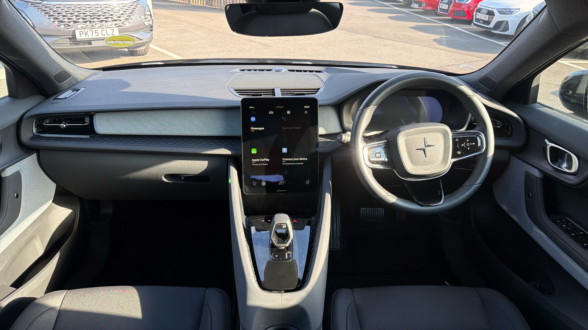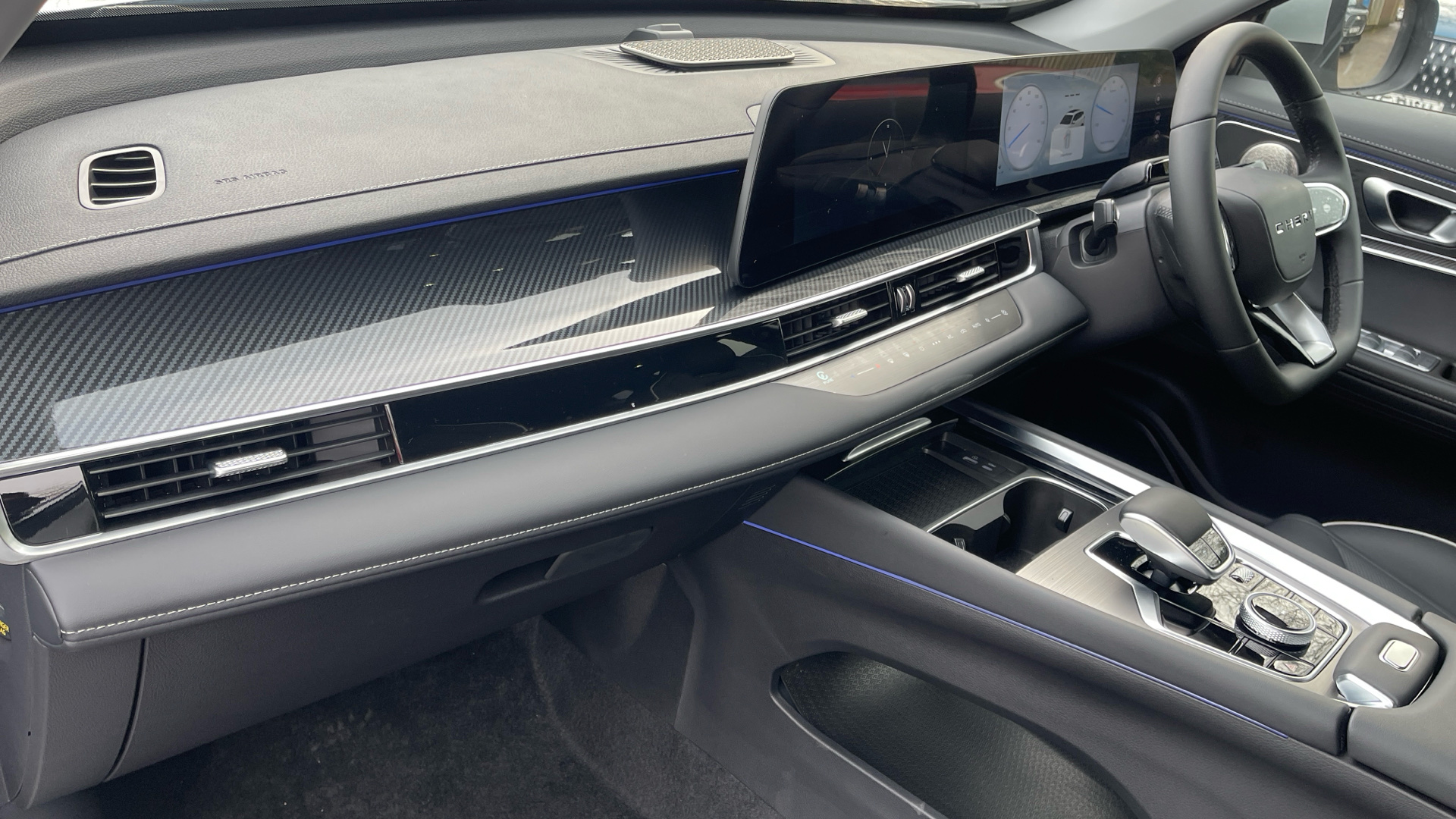 "Steering wheel, dashboard and central controls in black",