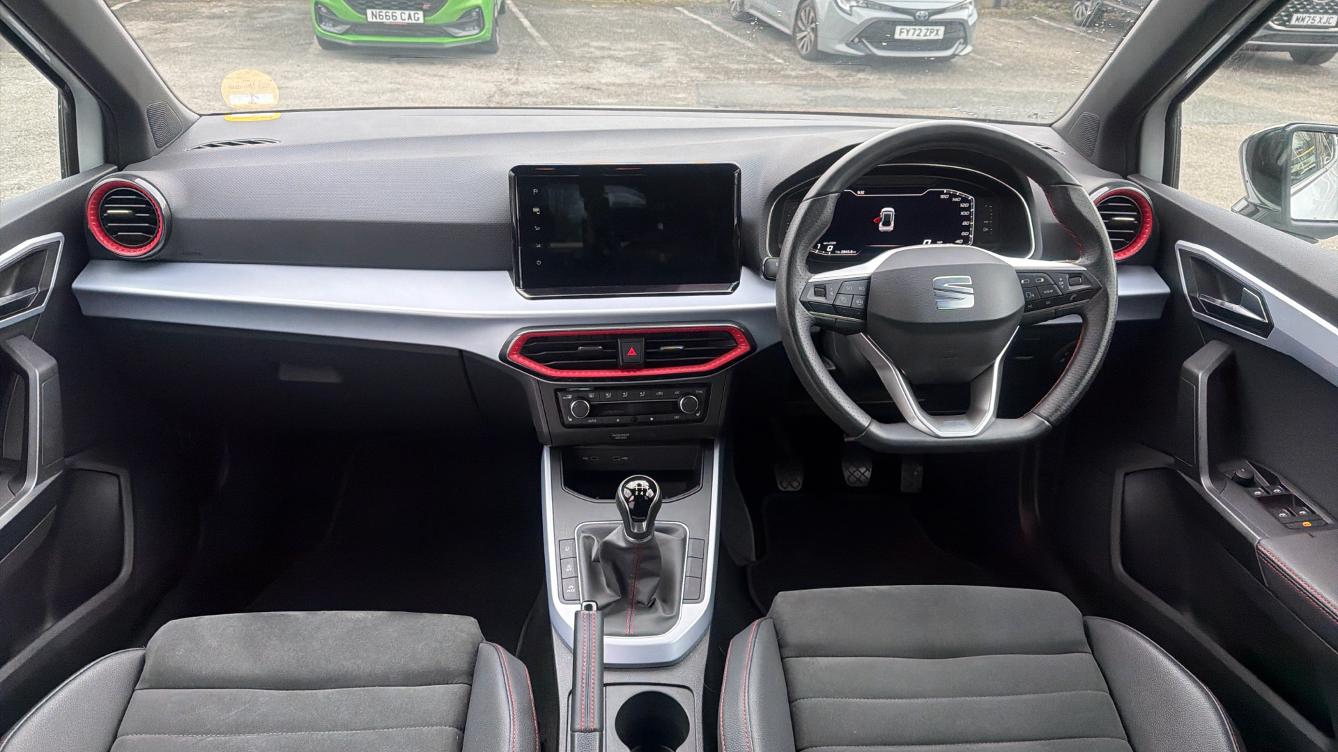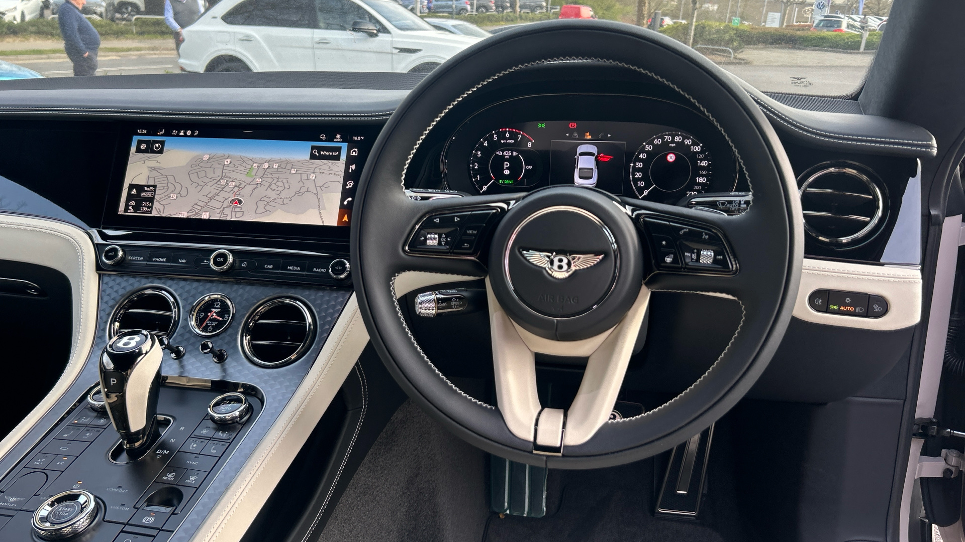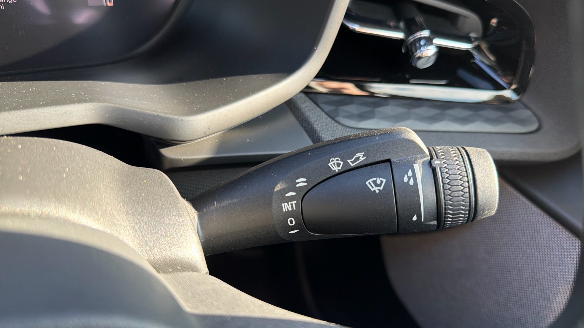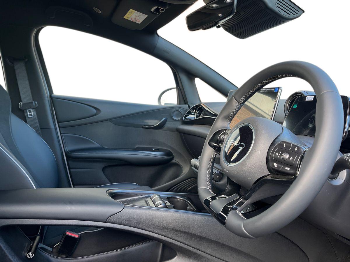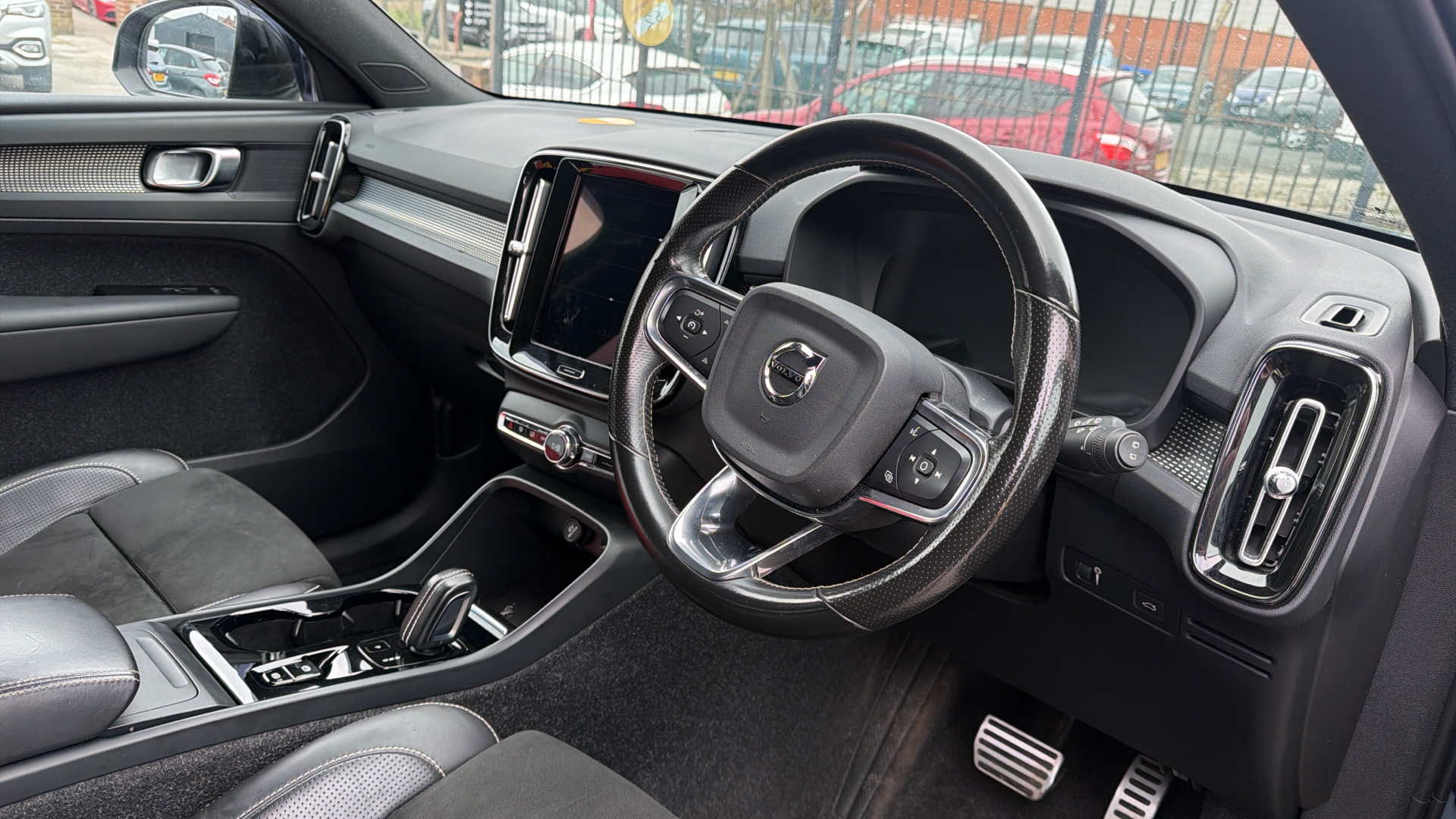 "Steering wheel, dashboard and central controls in black",