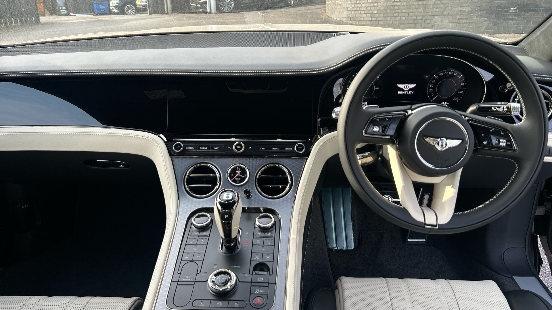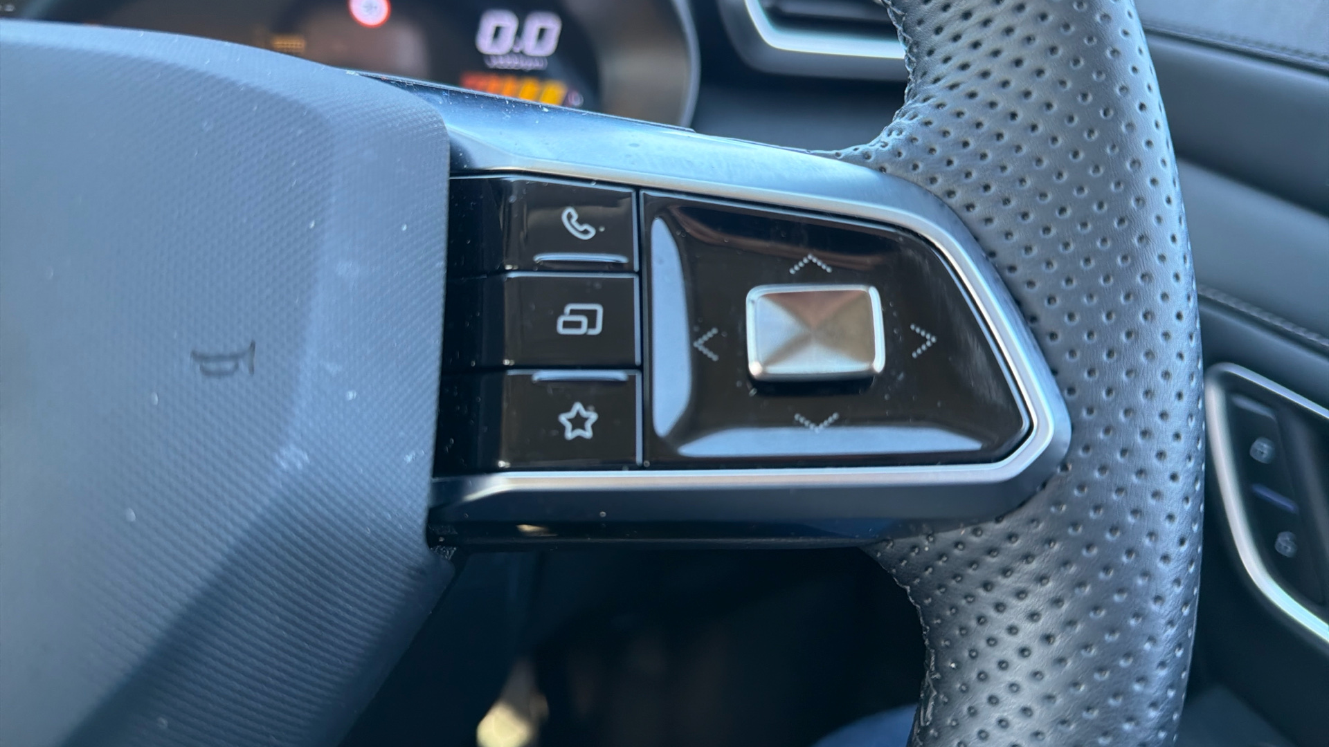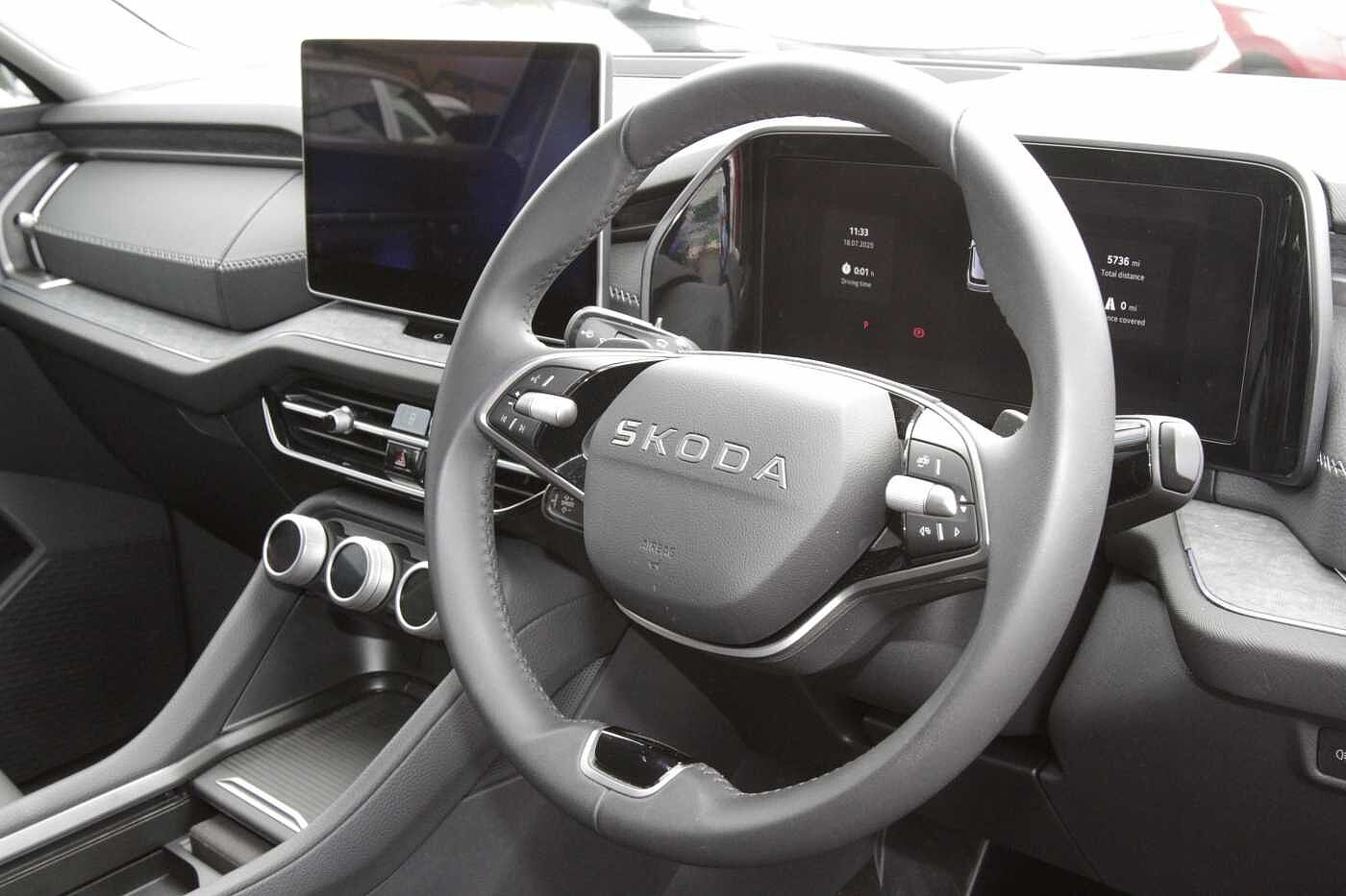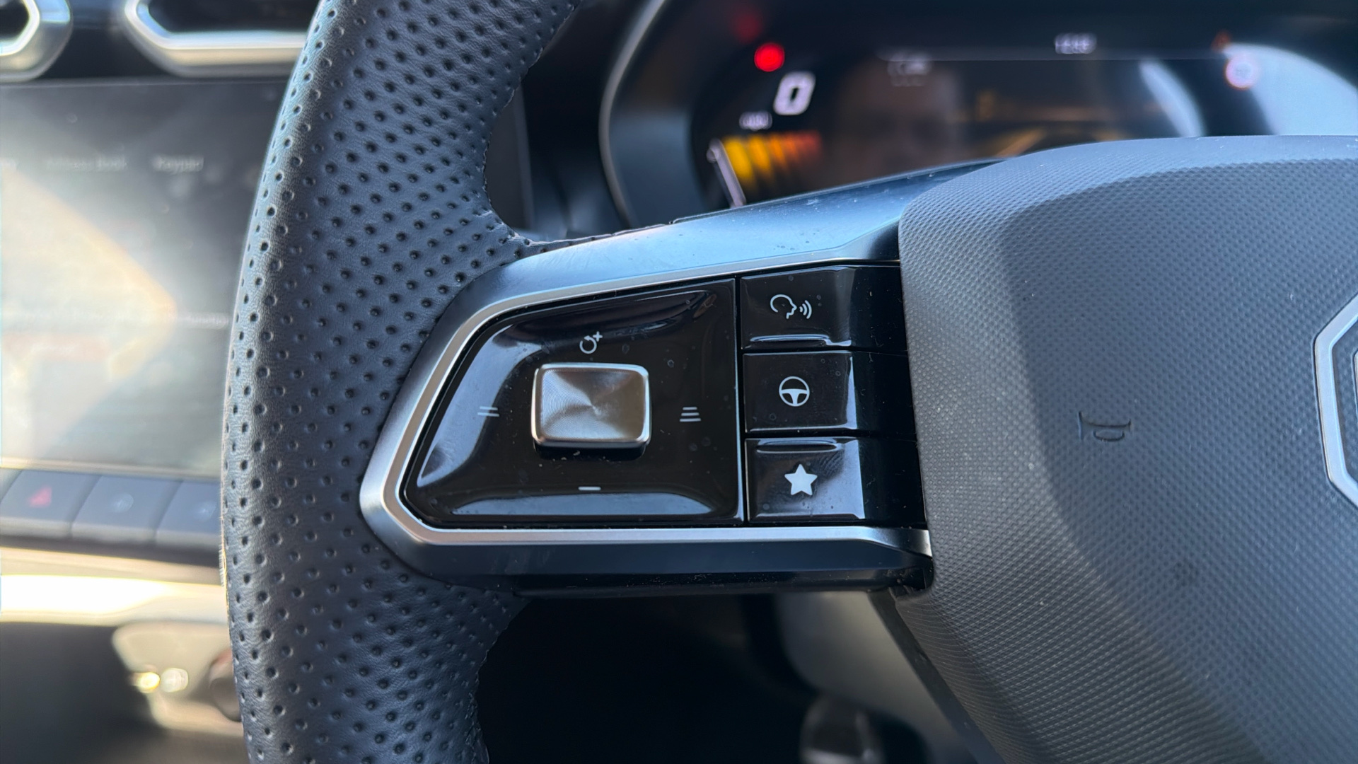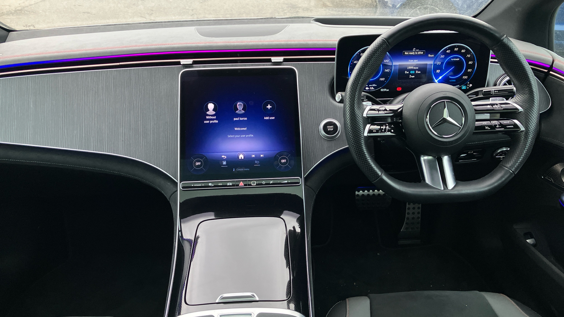 "Steering wheel, dashboard and central controls in black",