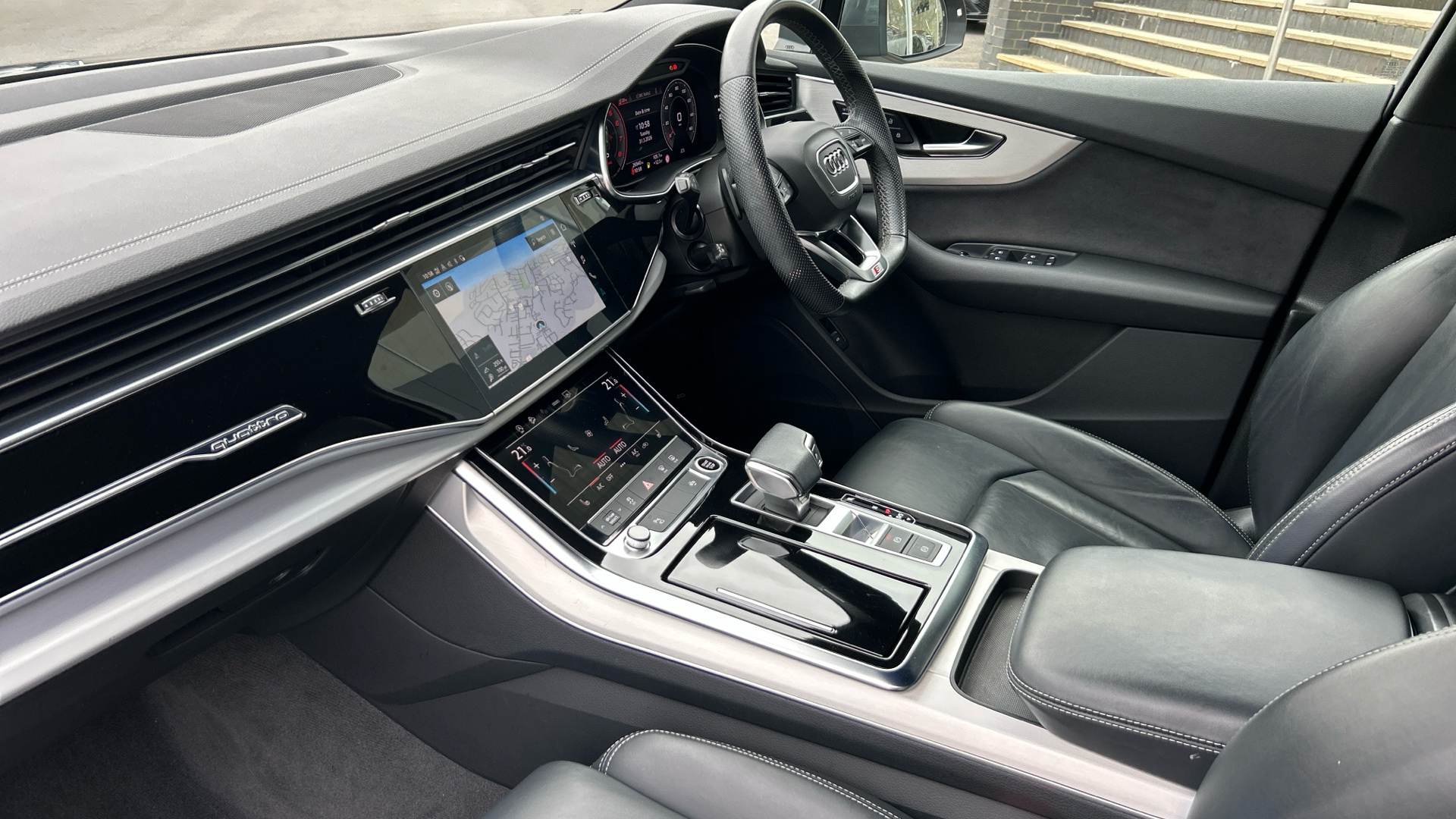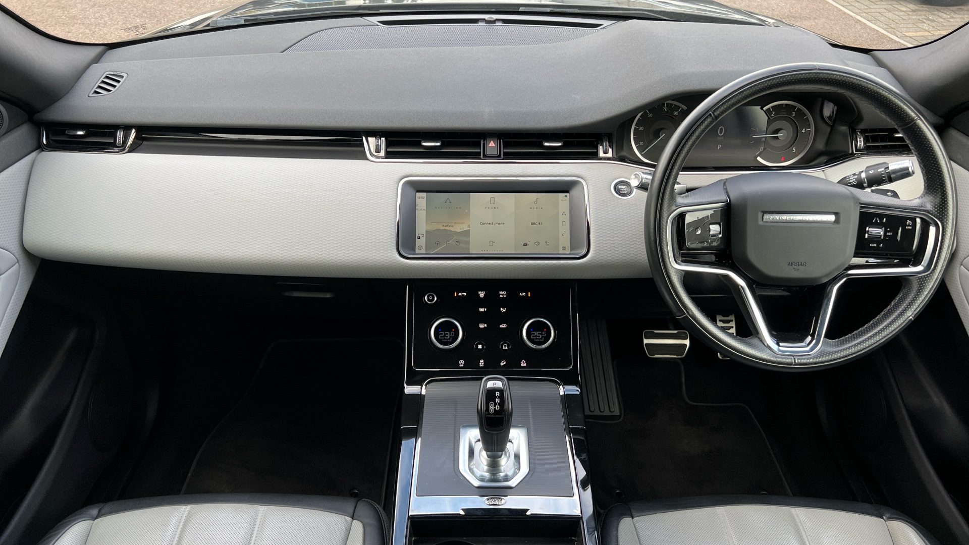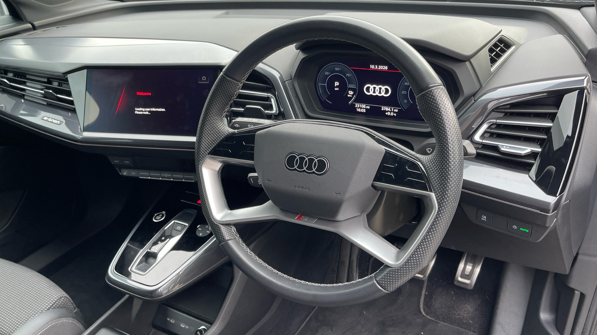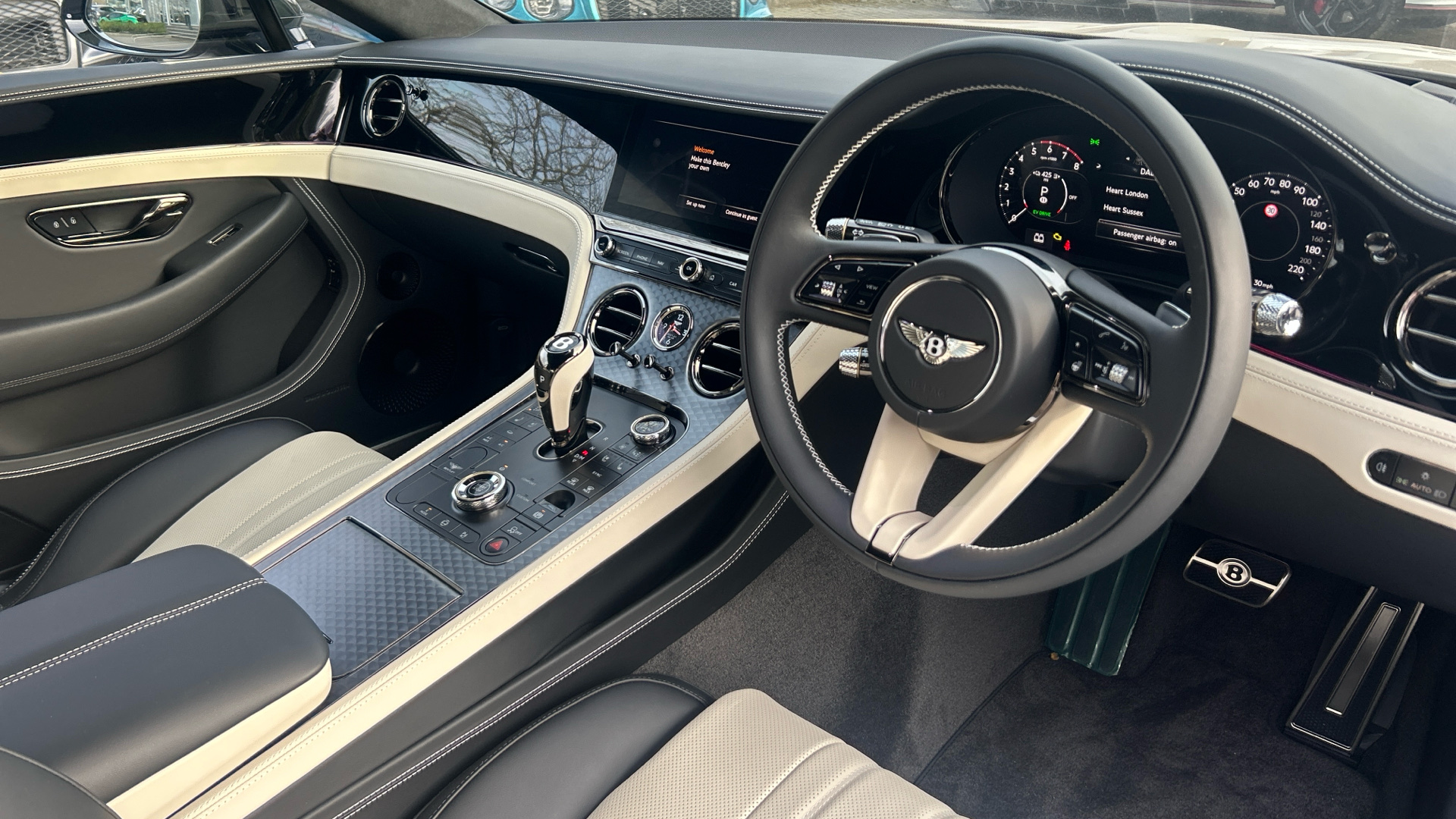 "Steering wheel, dashboard and central controls in black",