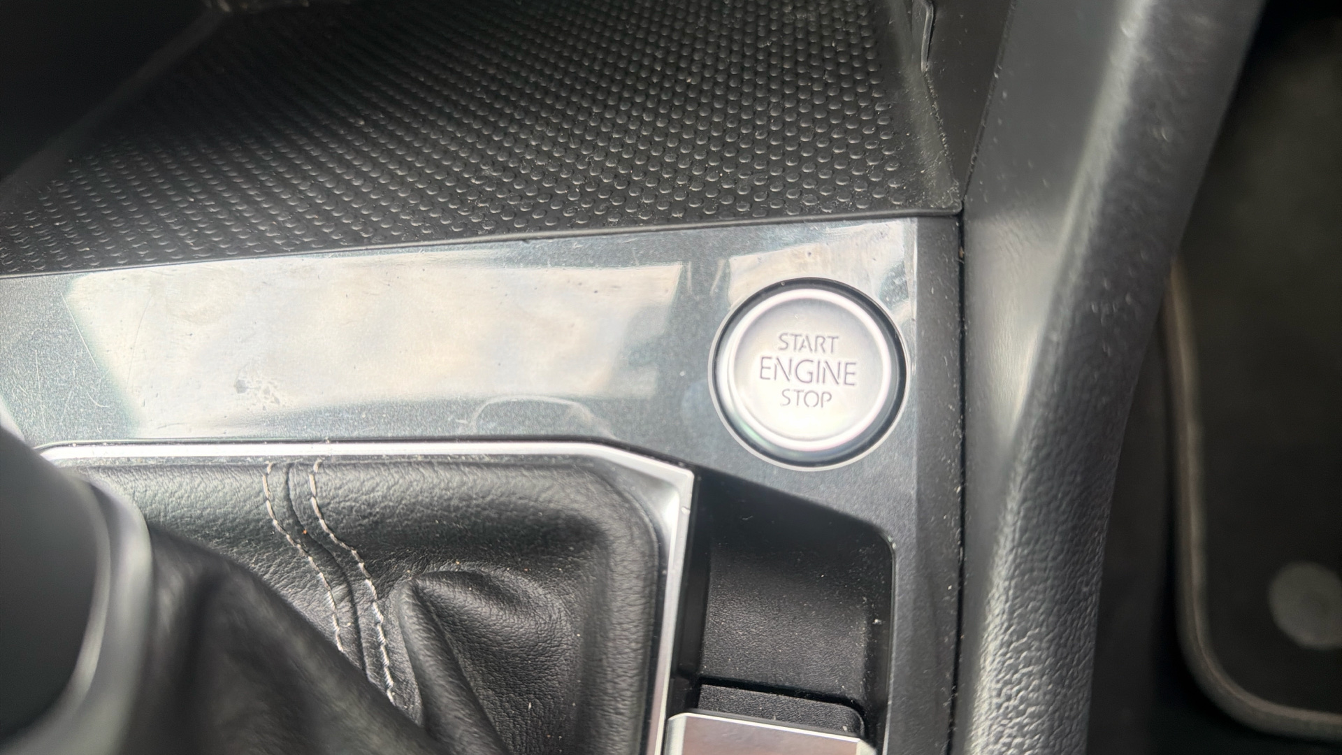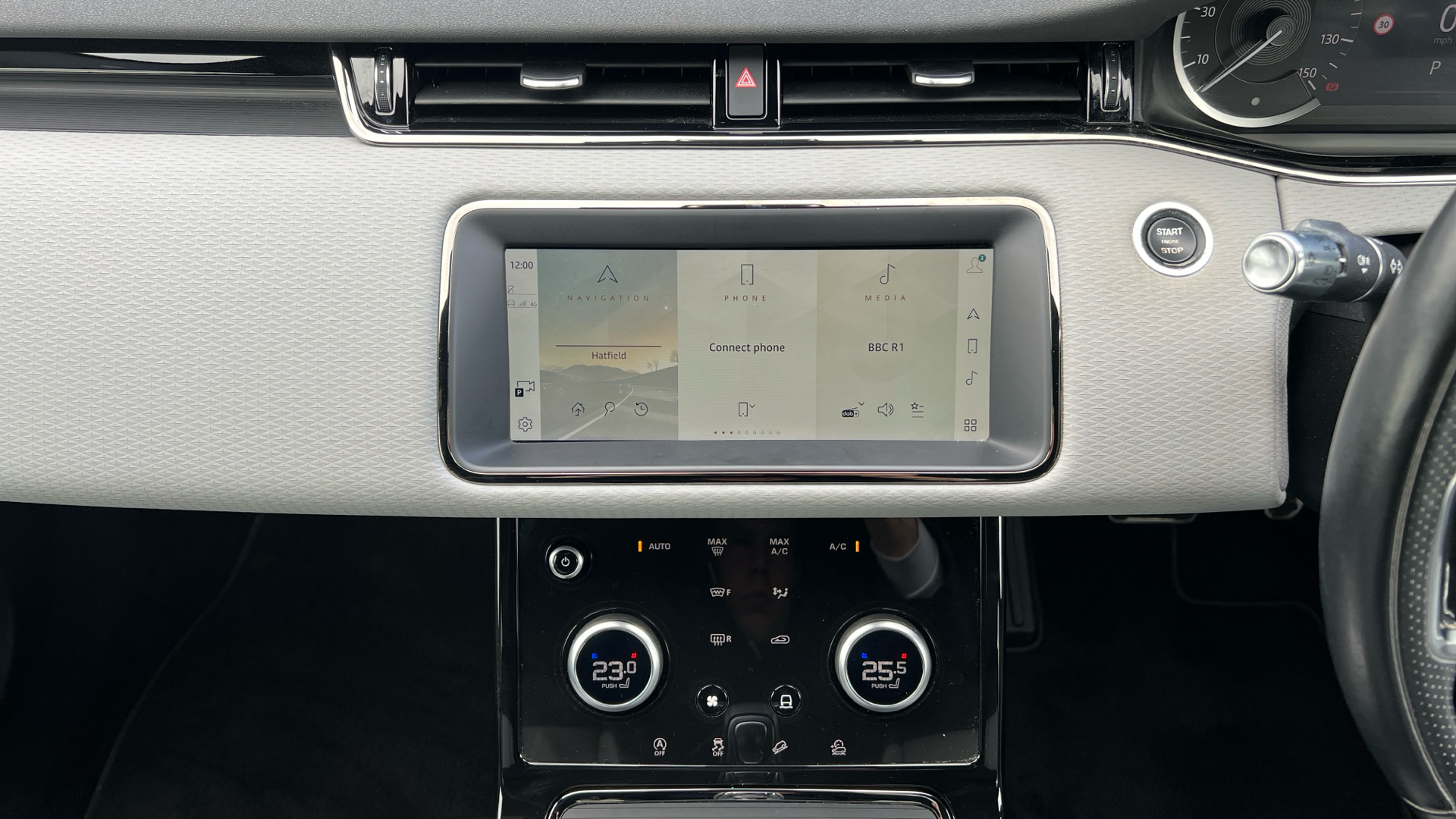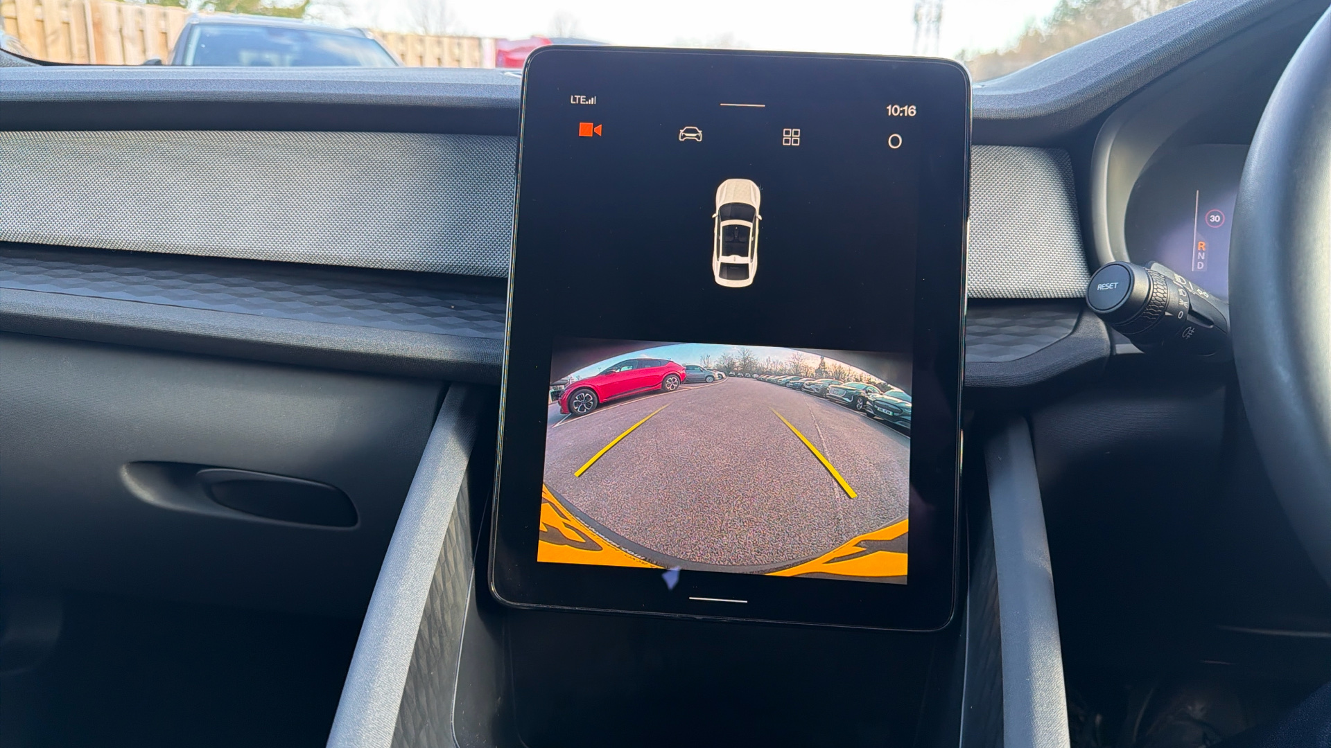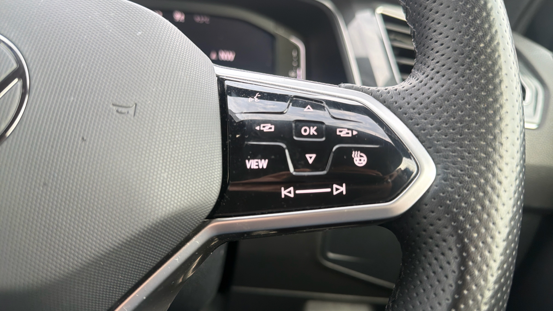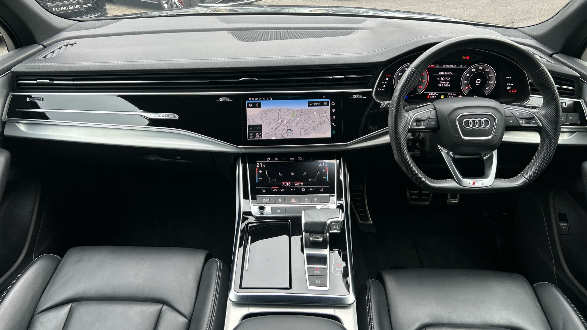 "Steering wheel, dashboard and central controls in black",