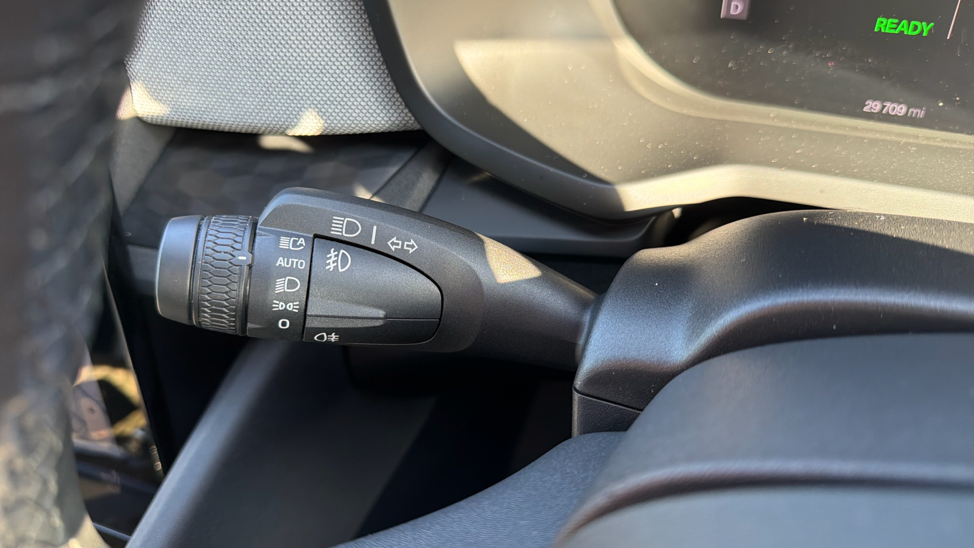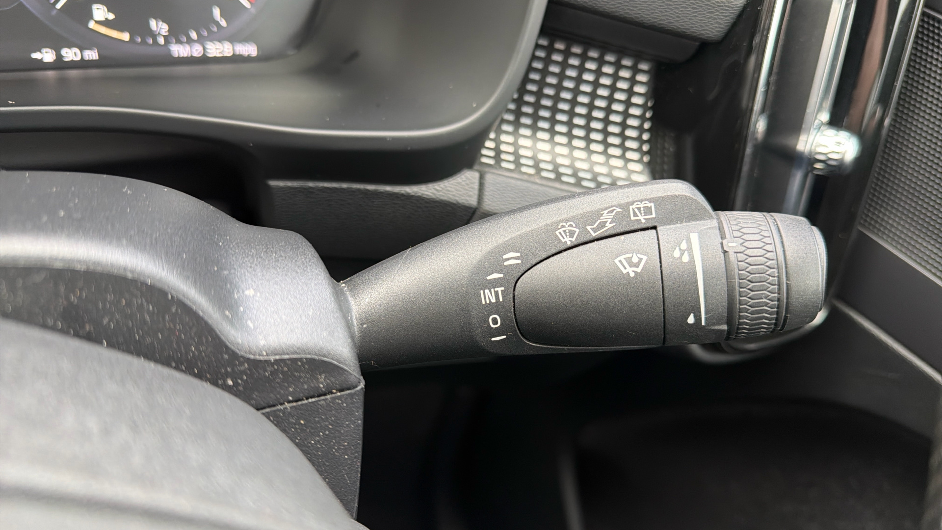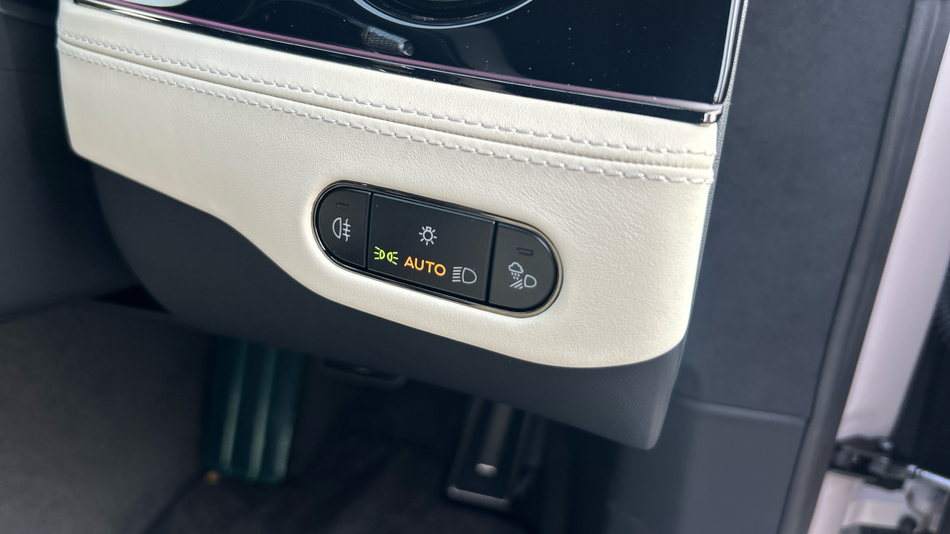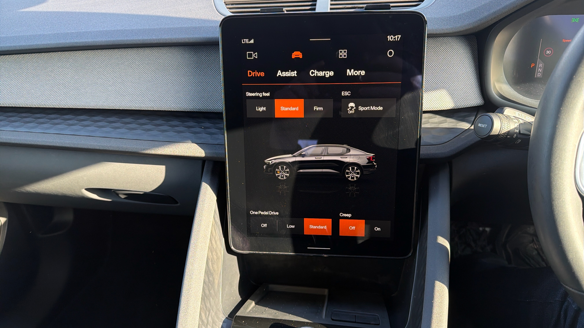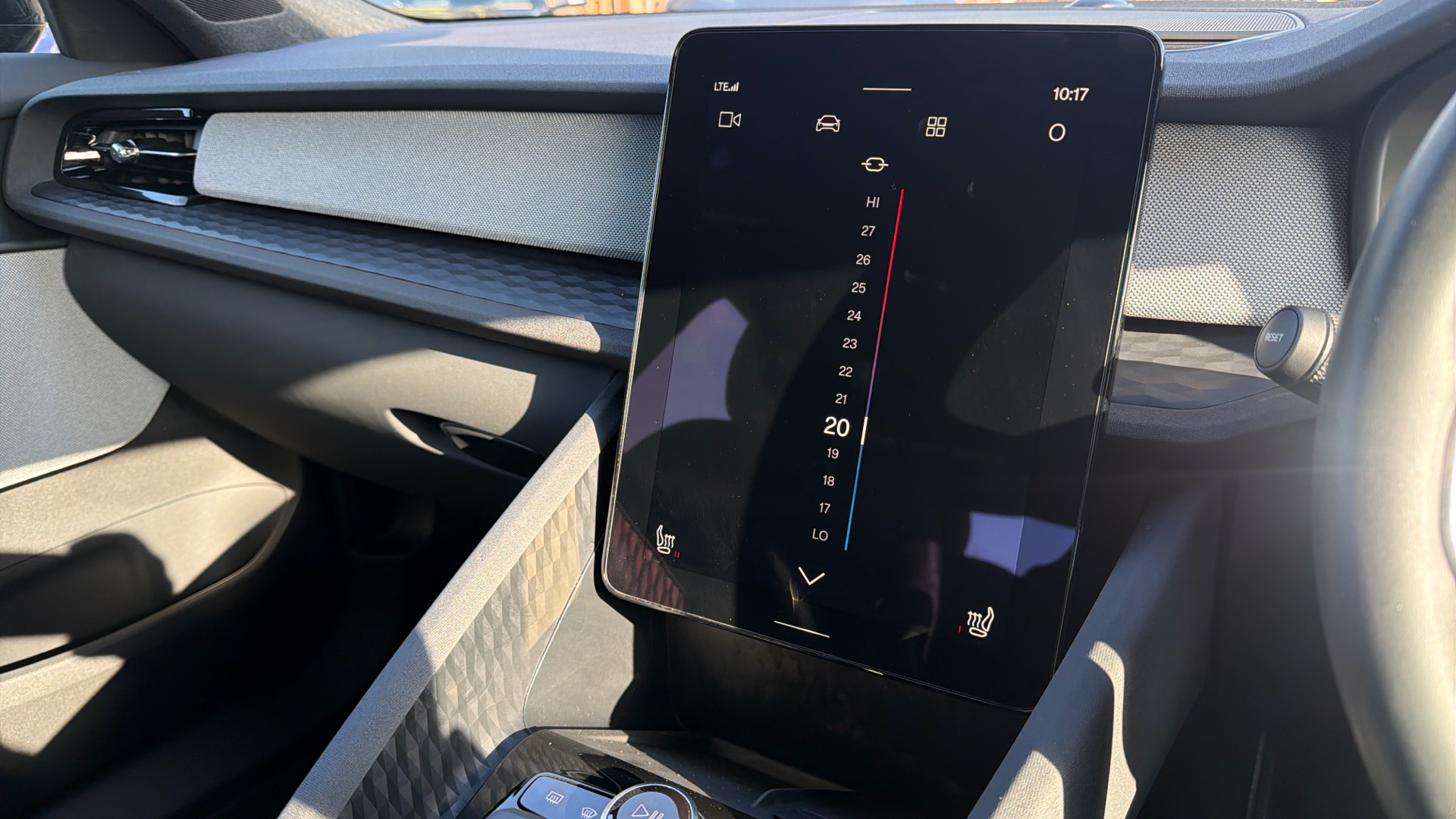 "Steering wheel, dashboard and central controls in black",