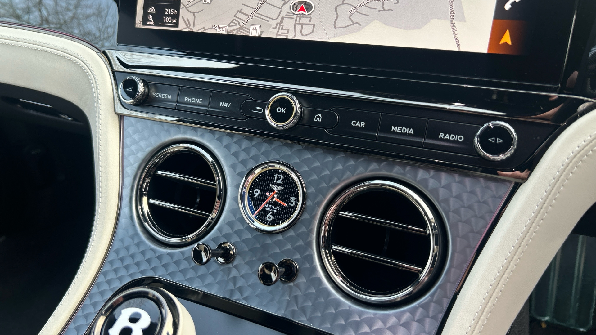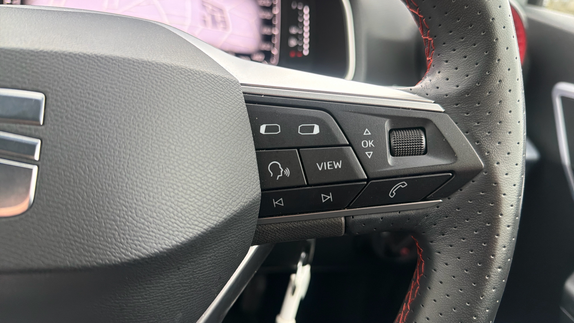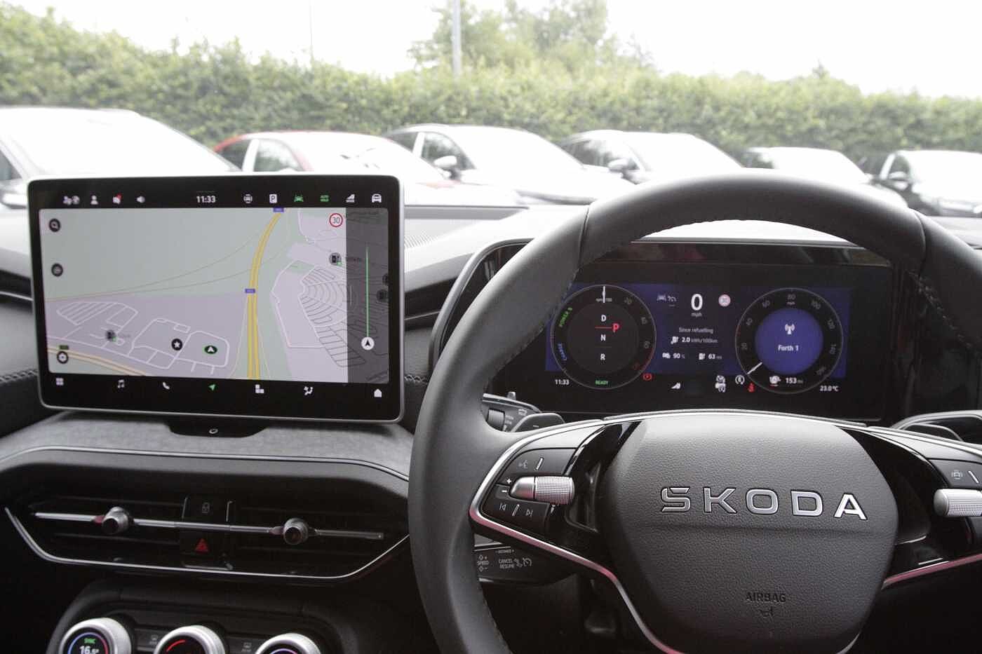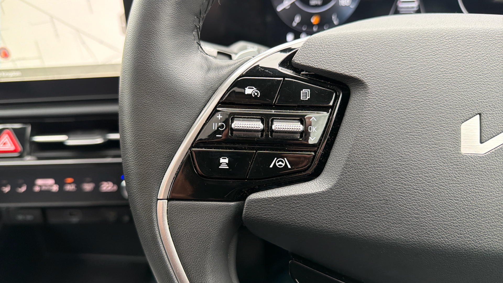 "Steering wheel, dashboard and central controls in black",