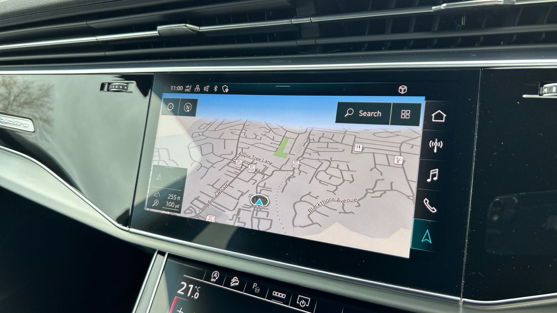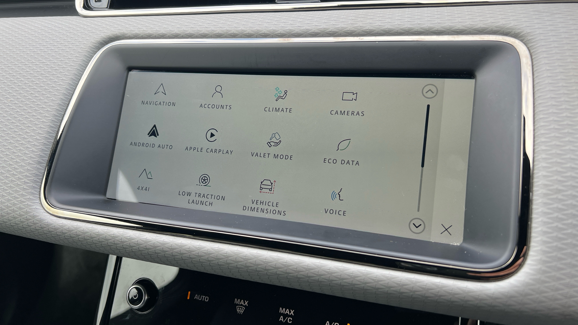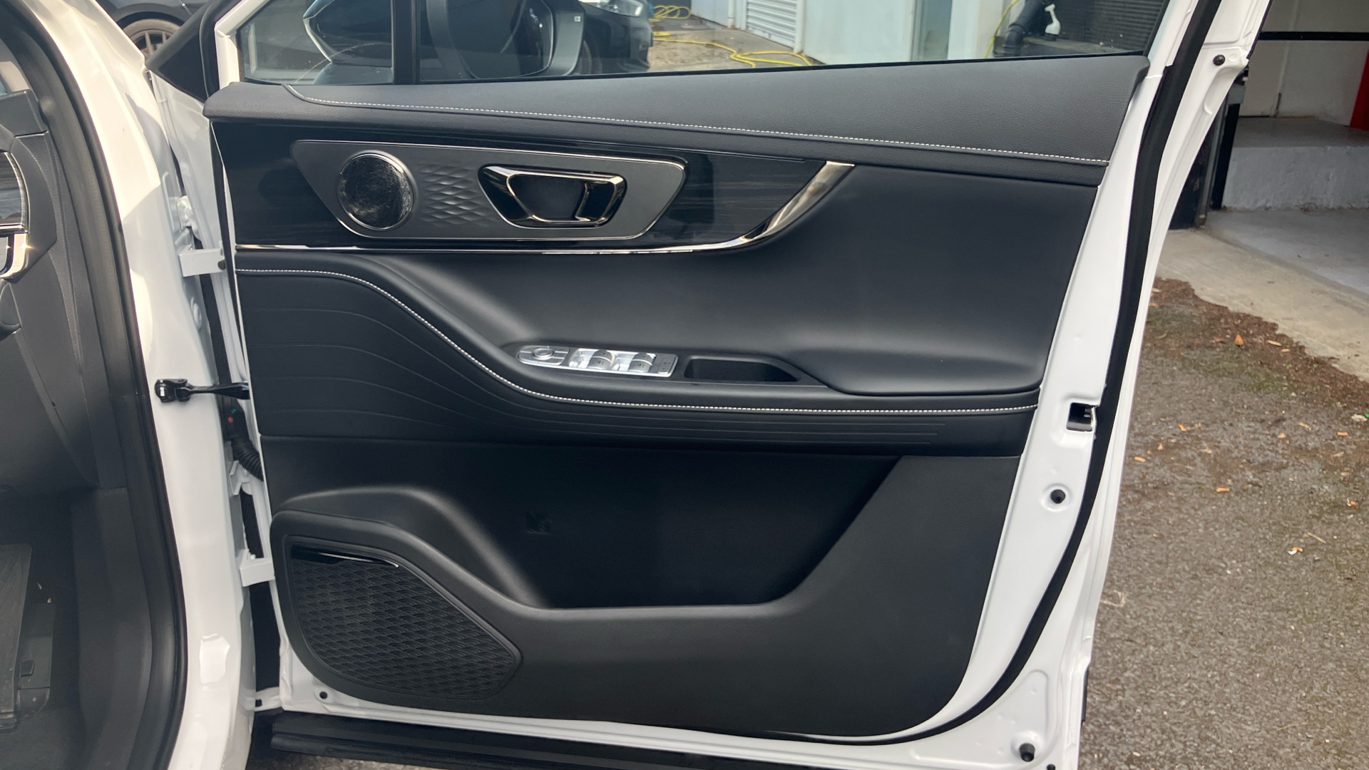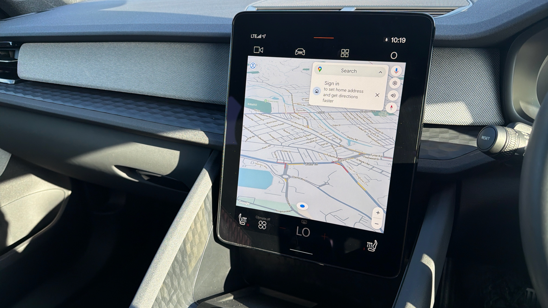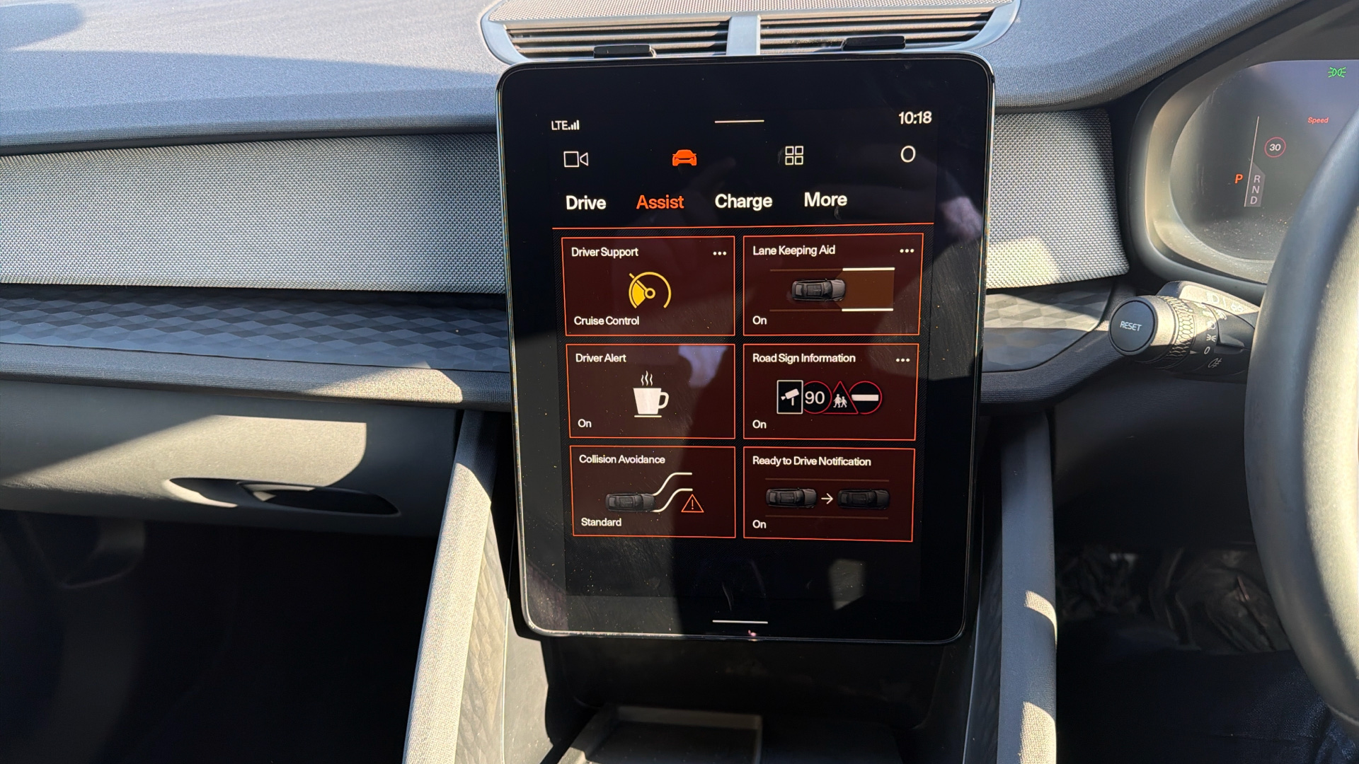 "Steering wheel, dashboard and central controls in black",