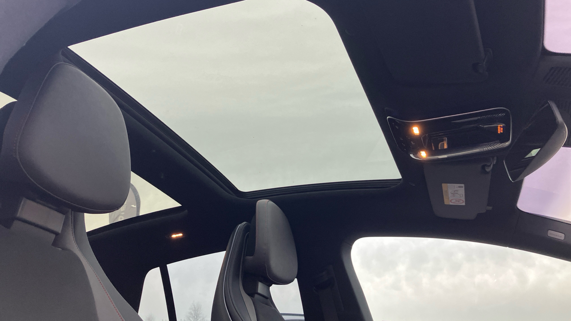 "Illuminated mirrors in sun vinsors with airbag label on sun visor and B-pillar",