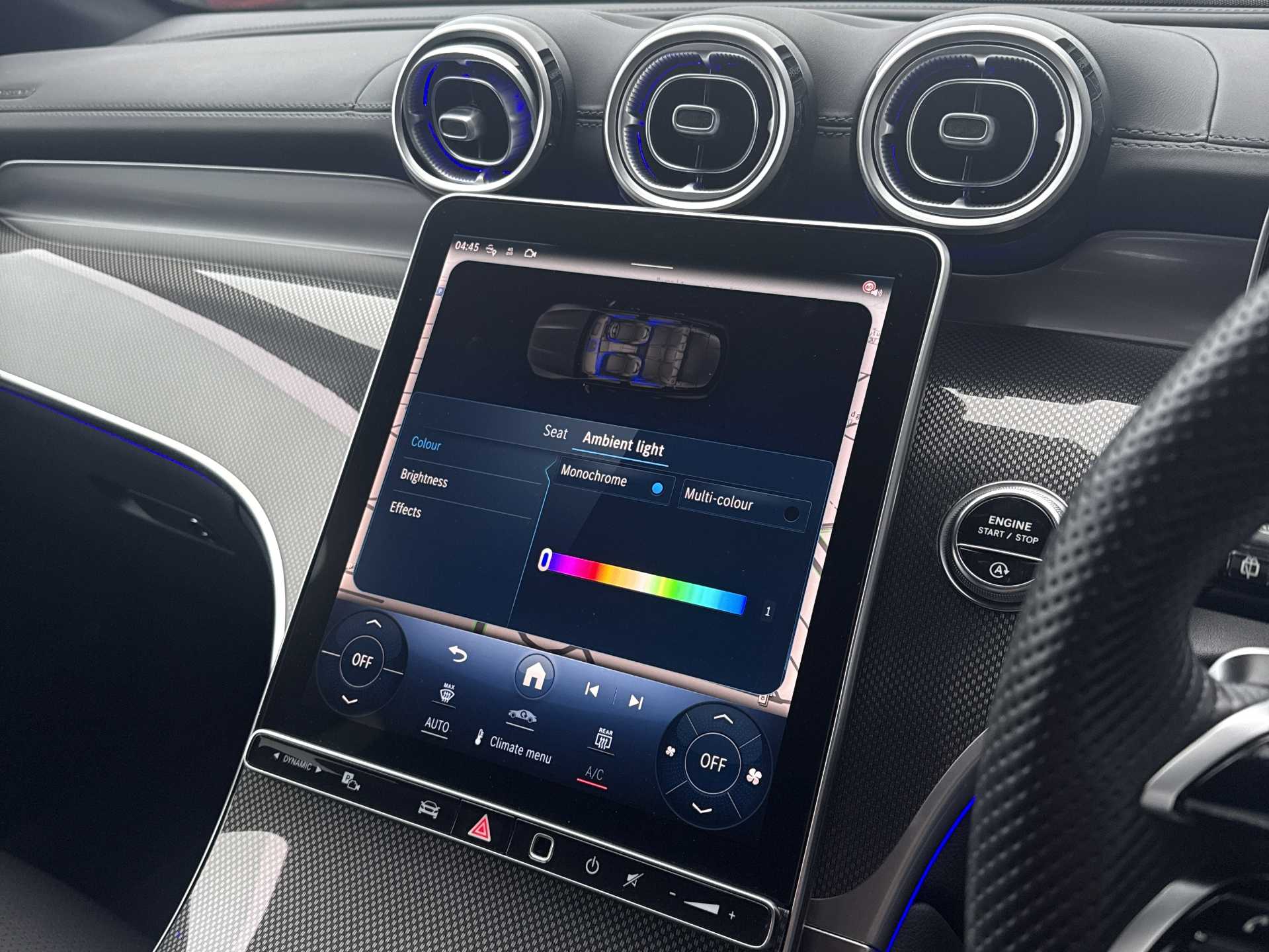 "Ambient lighting, exterior illuminated styling elements at the sides",