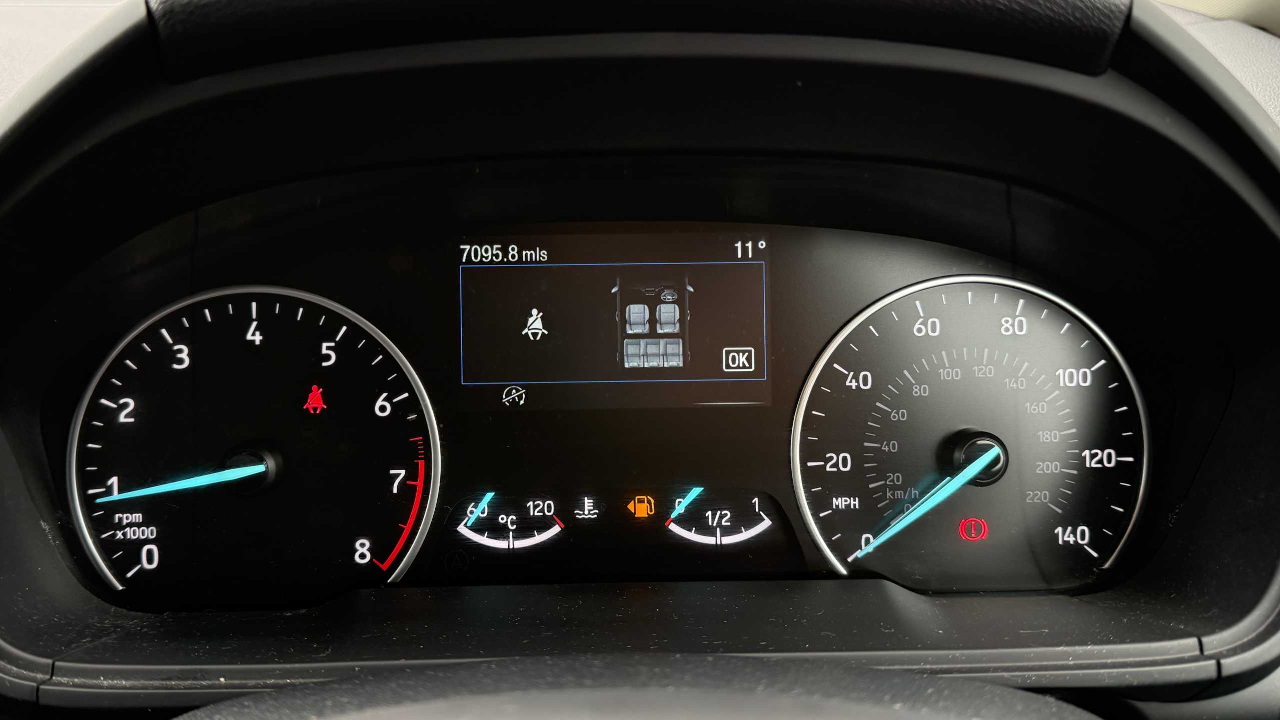 "Warning buzzer and light for front seatbelts unfastened",