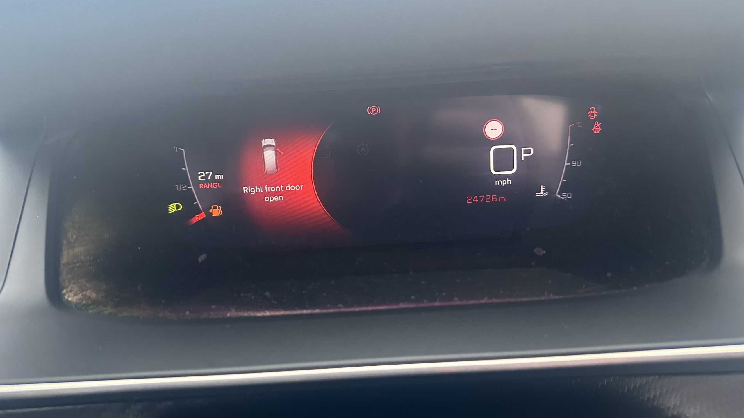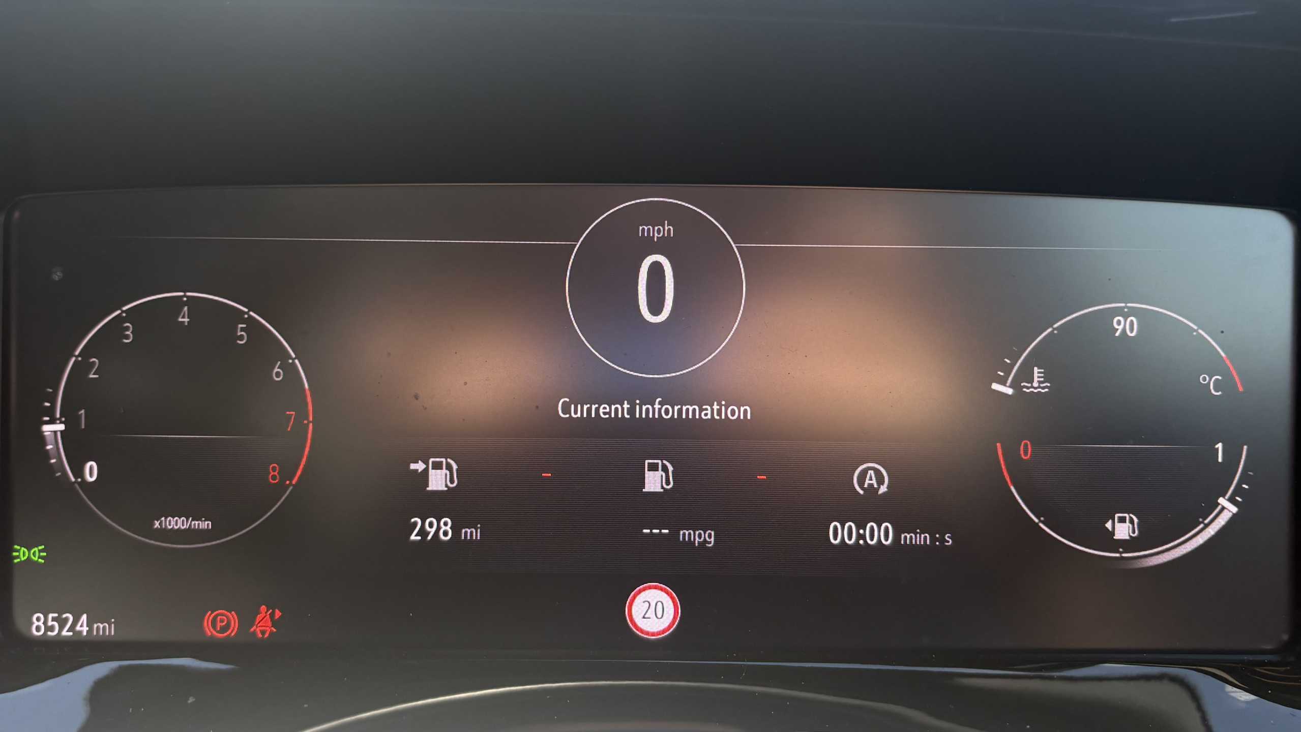 "Speedo, rev counter, electronic odometer, trip, service interval display, exterior temperature and fuel gauge",