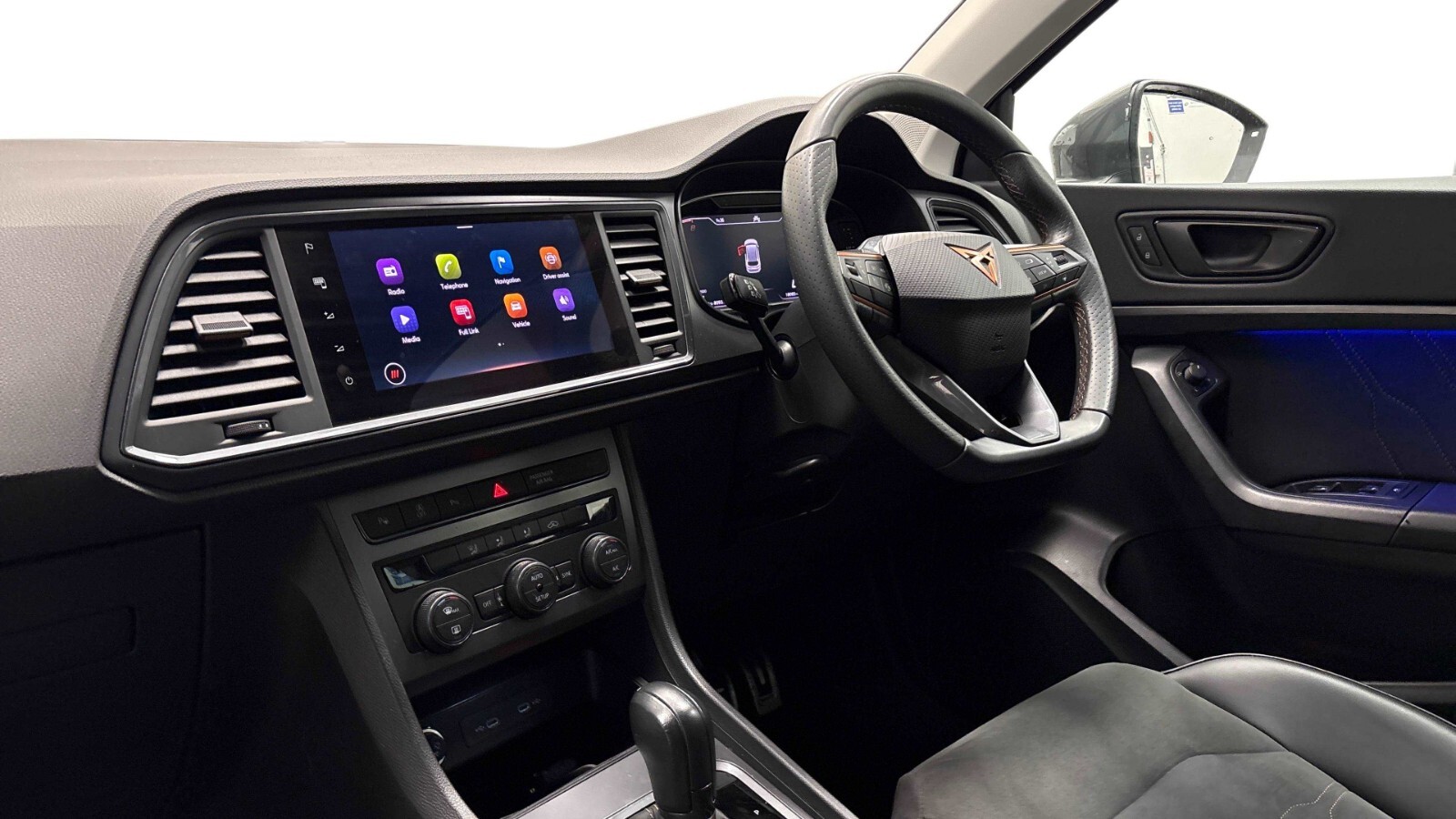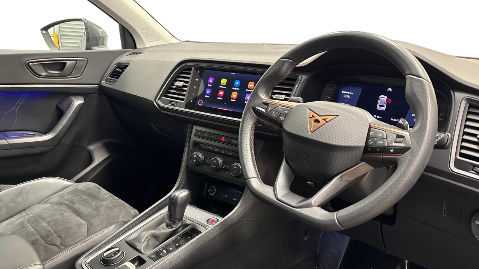 "features": "Cruise control system with speed limiter, Digital cockpit, Driving profile selection and conventional shock absorber, E-call, Outside temperature gauge, Progressive power assisted steering, Self parking functionality (includes front and rear parking sensors), Trip computer, Wireless full link smartphone integration, Wireless phone charger, Front and rear shock absorption, chassis with increased ride height, Steering wheel mounted audio/phone controls, Body colour bumpers with dark aluminium diffusor, Body coloured wheel arch surrounds, Dark tinted rear windows, Daytime running lights, Door mirrors with welcome CUPRA light silhouette, Dynamic headlight range control with self adjusting whilst driving, Electric adjustable/heated/folding door mirrors, Front and rear electric windows, Front grille frame in chrome, Full LED headlamps with lens and LED front fog lamps with cornering function, Gloss black door mirrors, Gloss black roof rails, Gloss black side mouldings, Gloss black side window trim, Illuminated aluminium front door sill, LED rear tail lights with dynamic indicators, Rear fog lights, Rear side wing doors, Rear spoiler, Rear wash/wipe, Specific CUPRA design front bumper, Standard rear exhaust tailpipes, Third brake light, 12V socket in front, 3 seat bench in 2nd row, 60/40 split folding rear seat, Aluminium pedals, Bucket sport seats in dinamica upholstery, Cupra steering wheel emblem, Document holder under left front seat, Dual zone climate control, Front and rear head restraints, Front centre armrest, Front seat back storage pockets, Grey roof lining, Heated steering wheel, Height adjustable driver and passenger seat with lumbar adjustment, ISOFIX points in outer rear seats with top tether anchorage points, Leather steering wheel and gear knob, Multicoloured ambient lighting with LED interior illumination, Pedal cluster, Rear armrest and easy back seat release mechanism from boot, Single front passenger seat, Sports steering wheel, Steering wheel mounted gearshift paddles, Storage compartment in roof console for sunglass, Storage compartment under driver's seat, Convenience pack - Ateca, Interior lighting pack - Ateca, Navigation system plus pack with DAB - Ateca, 3x3 point rear seatbelts, ABS, Traction control system (TCS), Electronic stability control (ESC) and Electronic differential lock system (XDS), Airbags - Driver and front passenger airbag with deactivation, front side, two curtain and driver's knee airbags, Black brake callipers with CUPRA logo, Electric parking brake with auto hold function, Front and rear seatbelt reminder, Front assist with autonomous emergency braking, Hill hold control, Manual rear child locks, Single tone horn, Tiredness recognition system, Tyre pressure monitoring system, Alarm, Keyless entry, Locking wheel bolts, 19\" Sport machined alloy wheels 36/3 in black/silver, ",