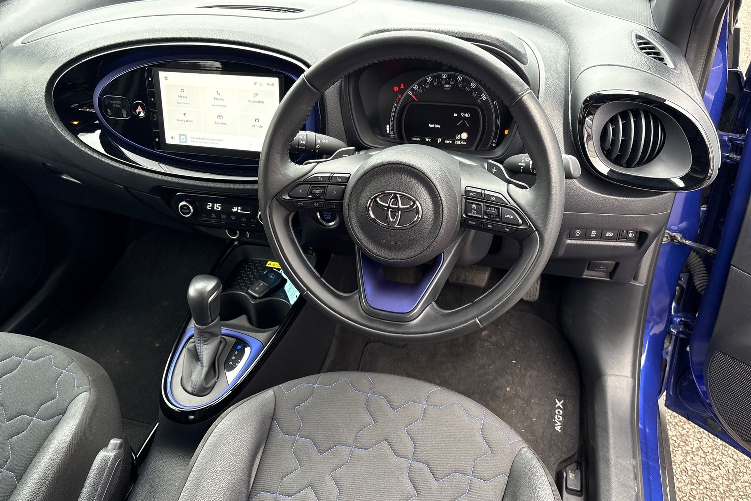 "Leather wrapped steering wheel and gear knob",