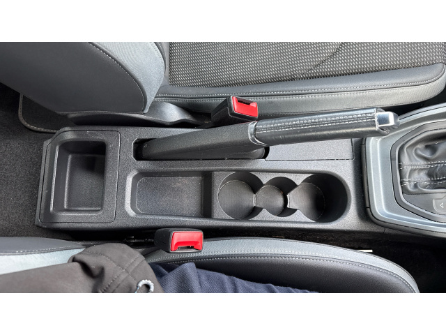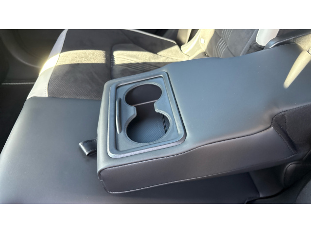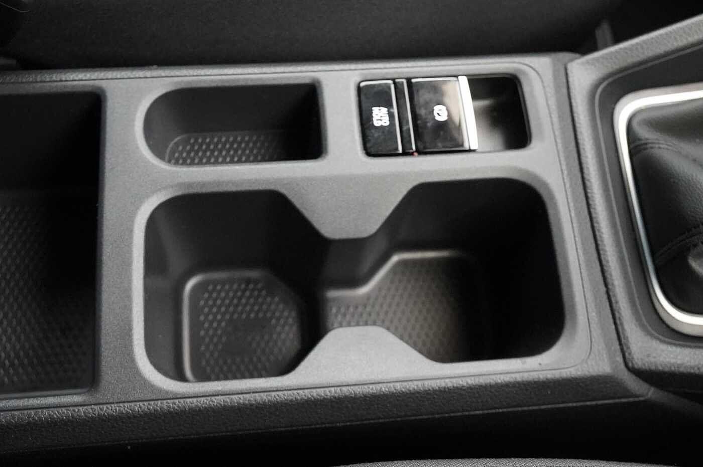 "Centre console with illuminated storage compartment with sliding cover and two drinks holders",