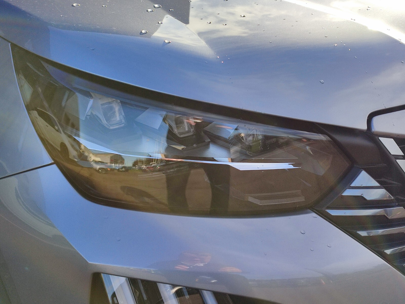 "Volkswagen logo in front, illuminated lighting animation with wake up/goodbye scenario and illuminated door handles"