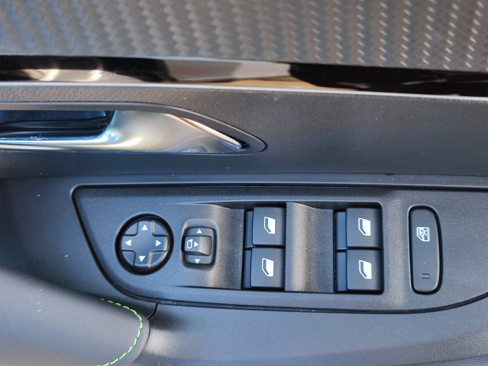 "Chrome elements on the mirror switch and power window switches and door pulls",