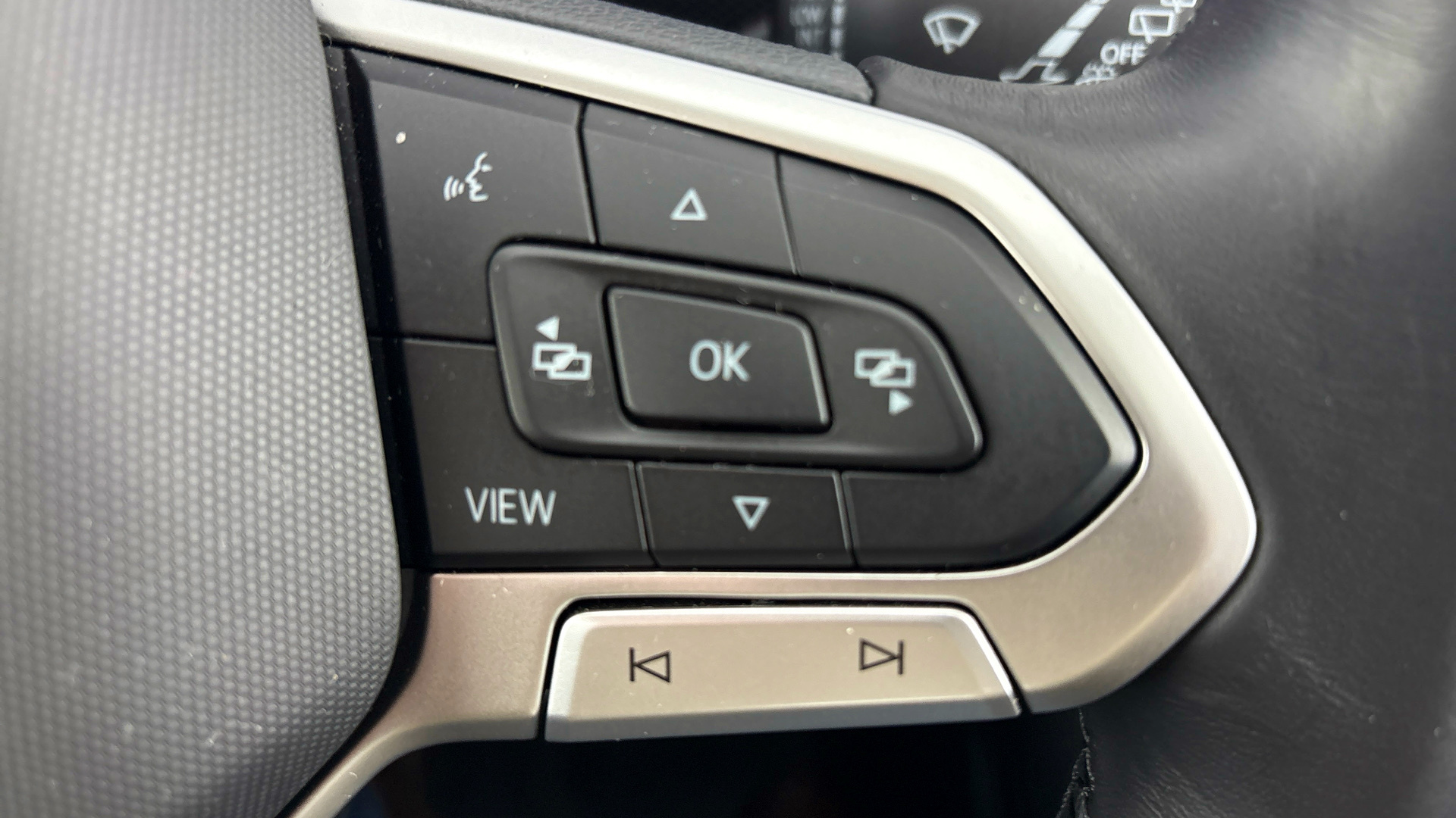 "3 spoke leather multifunction steering wheel with gear shift paddles",
