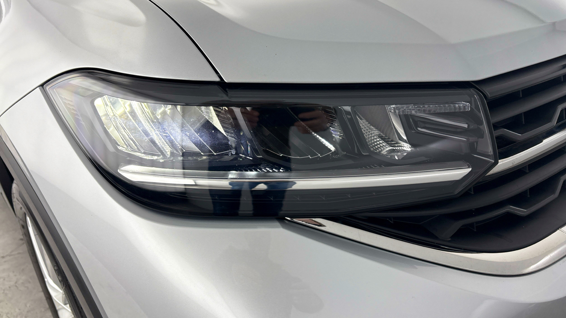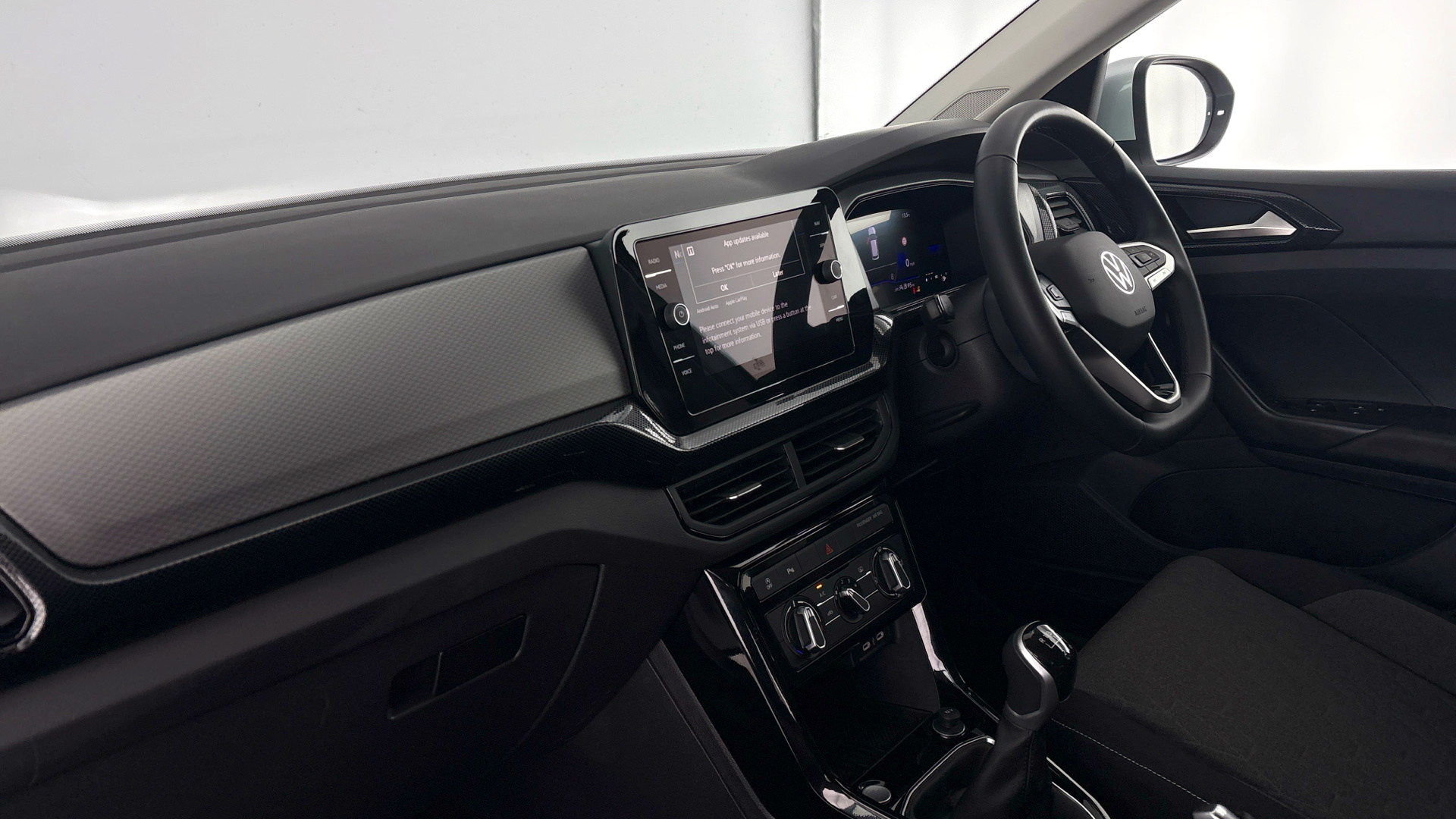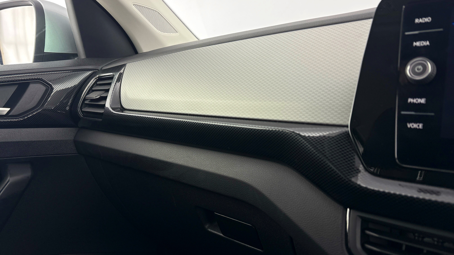 "Dark spectrum aluminium inlays, accent surfaces in the dashboard and centre console in platinum grey silk effect paint finish"