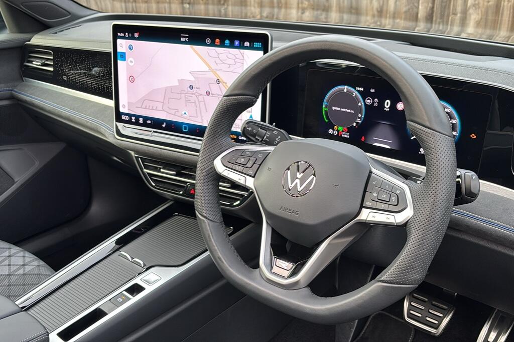 "features": "Activated carbon canister, Adaptive cruise control (ACC), Advanced driver attention and drowsiness monitor, Dynamic road sign display, Dynamic steering, E-Sim card for online connectivity, eCall emergency call system, Multi-color Digital cockpit pro, selection of different info profile possible, Multifunction front facing camera for distance control, Navigation system, Oncoming vehicle braking when turning including swerve support, Preparation for light assist system, Speed limiter, Speedo, rev counter, electronic odometer, trip, service interval display, exterior temperature and fuel gauge, Traffic jam assist, Voice enhancer and voice control, Warning signal and warning light for front and rear seatbelts not fastened, We connect plus preparation, We connect preparation, Wireless app connect, Diesel particulate filter, Hybrid propulsion system, Start-stop system with battery regeneration (recuperation - energy recovery during braking), XDS electronic differential lock for improved traction and handling, 2 USB C ports in front, 2 USB charging sockets on the centre console in the rear charging capacity upto 45W, Comfort telephony + wireless charging, without wireless aerial connection, Digital radio reception (DAB), Diversity antenna for FM reception, Gaming platform via car app, Infotainment system with 12.9\" display, Mobile phone interface with inductive charging feature, 3rd brake light, Auto headlights, Automatic headlamp activation with Coming home and Leaving home feature, Body colored bumpers in R-Line style, Body colour door handles, Exterior ambient lighting with illuminated door handles, Exterior mirrors convex on the left and aspherical on the right, Front and rear electric windows, Heat insulating windshield made of laminated glass, LED daytime running lights, Rear exhaust tailpipe, Rear fog light on one side and reversing lights on both sides, Rear side wing doors, Rear windscreen washer and wiper with interval delay, Remote electrically foldable door mirrors, puddle lights and reverse activated passenger's door mirror, Welcome light with surround lighting, 12V socket in front centre console, 12V socket in luggage compartment, 3 rear head restraints, 3 seat bench in 2nd row, Ambient lighting with 30 colour including LED light unit in front footwell with selectable light colour, Brushed stainless steel pedals, Carpet mats, front and rear, Chrome plated radiator grille inserts, air vent surrounds and light switch surrounds, Front centre armrest, Integrated front head restraints, ISOFIX anchors for child seats on outer rear bench seats and on front passanger seat compatible for i-Size, Luggage compartment lighting, Plastic gear knob, Premium sports seats in front, Rear cupholder and loadthough, Single front passenger seat, Soul black instrument panel, Split folding backrest with centre armrest and unsplit rear seat bench, Storm grey roof lining, Sun visors with illuminated vanity mirrors, 3 point height adj front seatbelts + pretensioners, 3 rear three point seatbelts, ABS, Autonomous emergency braking front assist with pedestrian and cyclist monitoring, Child locks on rear doors, Driver and front passenger airbag with front passenger airbag deactivation, Electronic parking brake with auto hold, ESC (Electronic Stability Control), Extended pedestrian protection measures, Hill start assist, Rear disc brakes, Two tone horn, Tyre pressure loss indicator, Volkswagen roadside assistance, Anti theft wheel bolts, Preparation for alcohol interlock, Decorative inserts carbon grey for dashboard and front door trim panels, ",