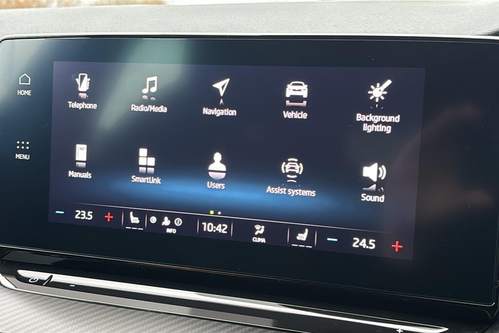 "features": "10.1\" colour touchscreen, 12.3\" Full digital driver information display, Android Auto, Apple CarPlay, Blind Spot Detection (BAS), Bluetooth connectivity, Cruise control, Emergency call service, Intelligent speed assist, Lane keep assist system (LAS) with Lane departure warning system (LDWS), PAS, Rear cross traffic alert, Rear parking camera, Rear parking sensors, Satellite navigation system, Trip computer, USB mobile phone charging function, 6 speaker audio system, DAB audio, Auto dimming rear view mirror, Automatic headlights, Body colour electric adjustable heated door mirrors, Electric folding door mirrors, Follow me home headlights, Front and rear aero wiper, Front and rear electric windows with one-touch up/down, Front fog lights, Intelligent high beam, LED Bi-Function headlights, LED centre brake light, LED daytime running lights, LED front and rear sequential indicators, Panoramic sky roof, Rain sensing wipers, Rear side wing doors, Silver roof rails, 12V power sockets, 2nd row 60/40 split fold seat, 2nd row seat with 2 stage incline adjustment, 3 rear headrests, 3 seat bench in 2nd row, 4 way electric adjustable passenger seat, 6 way electric adjustable drivers seat + lumbar support, Ambient lighting, Dual zone automatic air conditioning, Front centre sliding armrest with storage compartment, Front headrests, Heated front seats, Height and reach adjustable steering wheel, ISOFIX restraints on outer rear seats x2, Leather steering wheel, Single passenger seat, Sports Style Front Seats with One-Piece Back, 3x3 point rear seatbelts, ABS/EBD, Active emergency braking with pedestrian/Bicycle detection, Anti rolling protection, Cornering brake control (CBC), Driver, passenger and 2nd row rear seat belt reminder, Dual front airbags, Electric parking brake with auto hold function, ESP, Front passenger airbag deactivation switch, Front seat belt height adjuster, Front seatbelts (3-point + pretensioner + load limiter), Front side airbags, Hill descent control, Hill launch assist, Manual rear child locks, Rear outer seatbelt pretensioner and load limiter, Side curtain airbags, Tyre pressure monitoring system, Alarm system and engine immobiliser, Keyless entry and push button start system, Remote central locking, Speed sensing door locks, 18\" Hurricane diamond cut alloy wheels, Tyre repair kit, ",