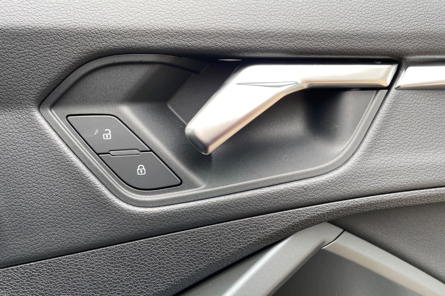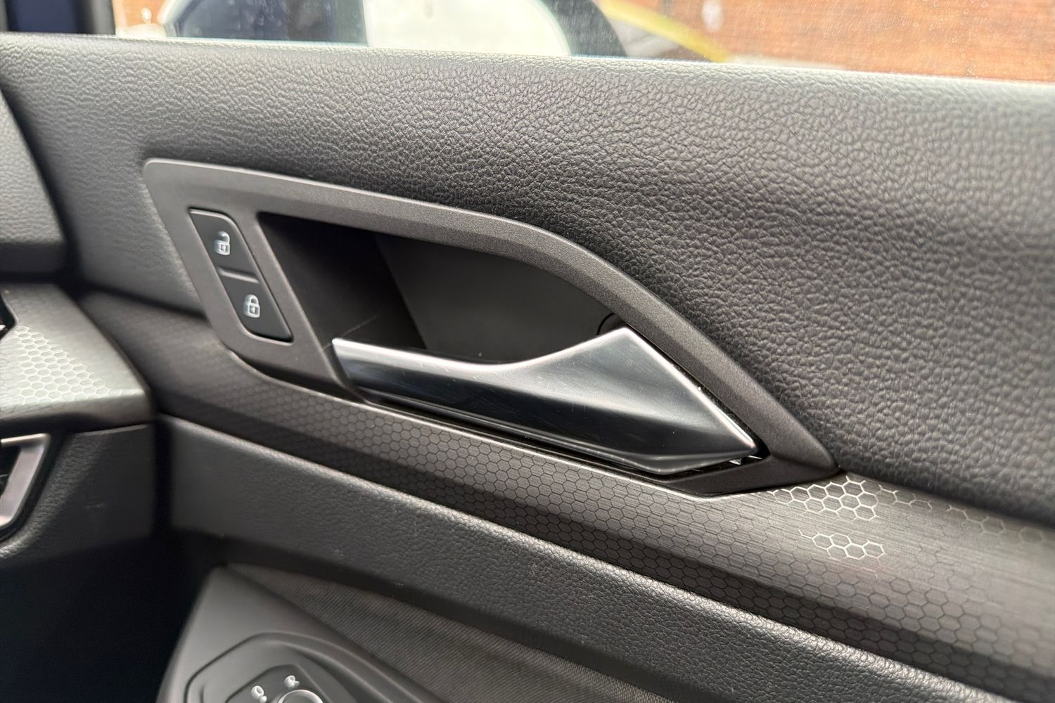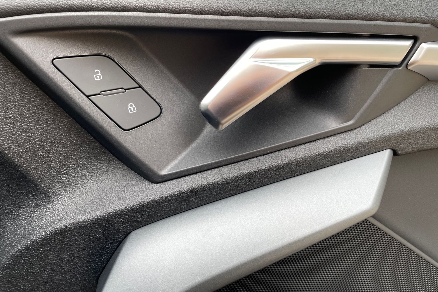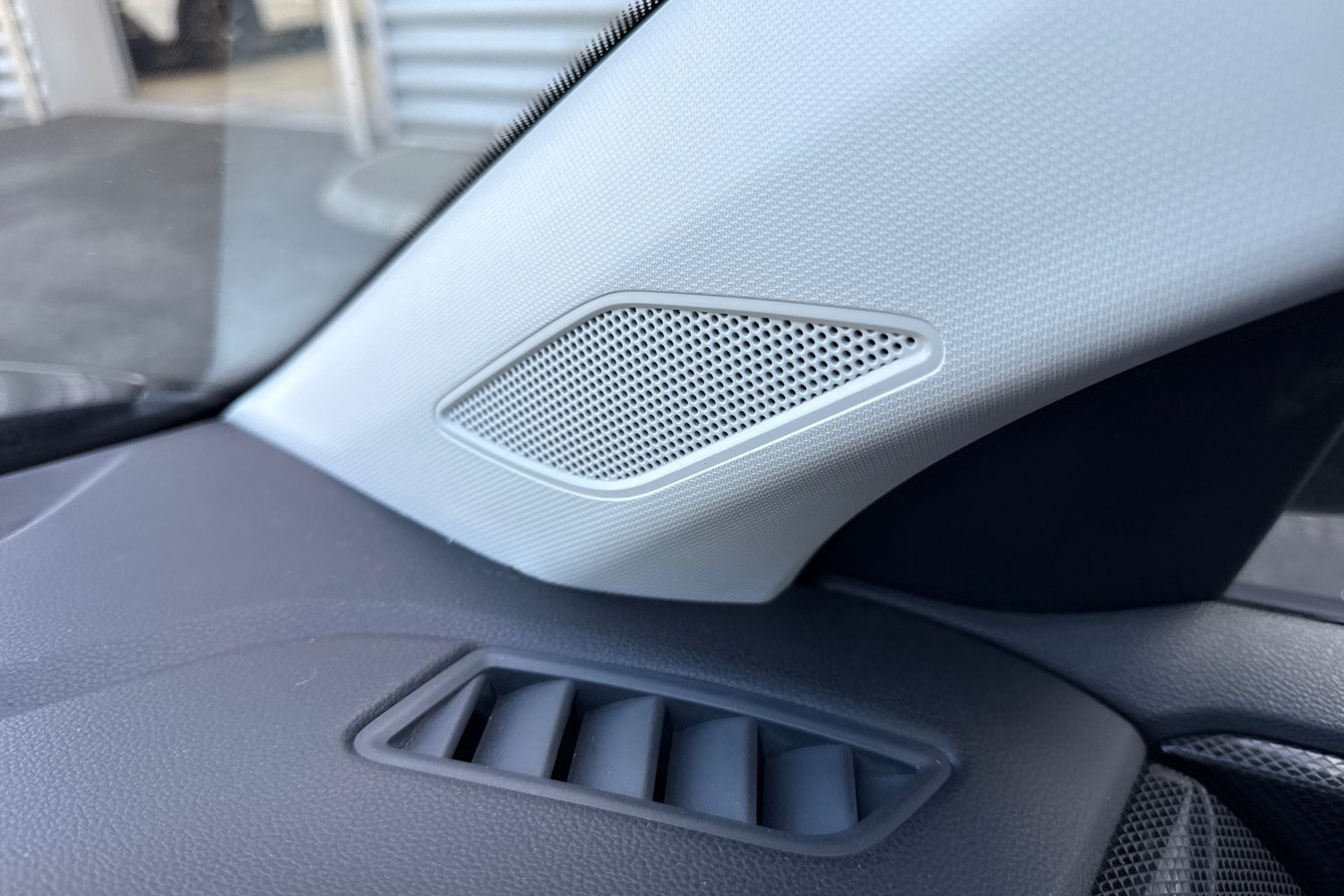 "Structured grey accent surfaces insert of air vents, interior door handle recesses and centre console in quartz paint finish"