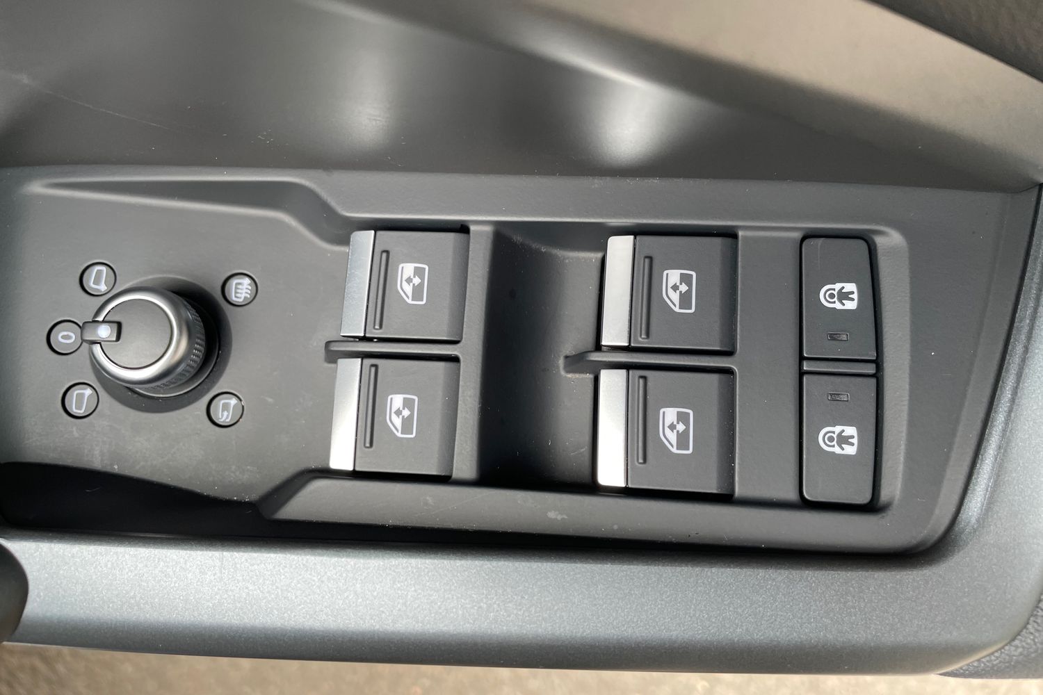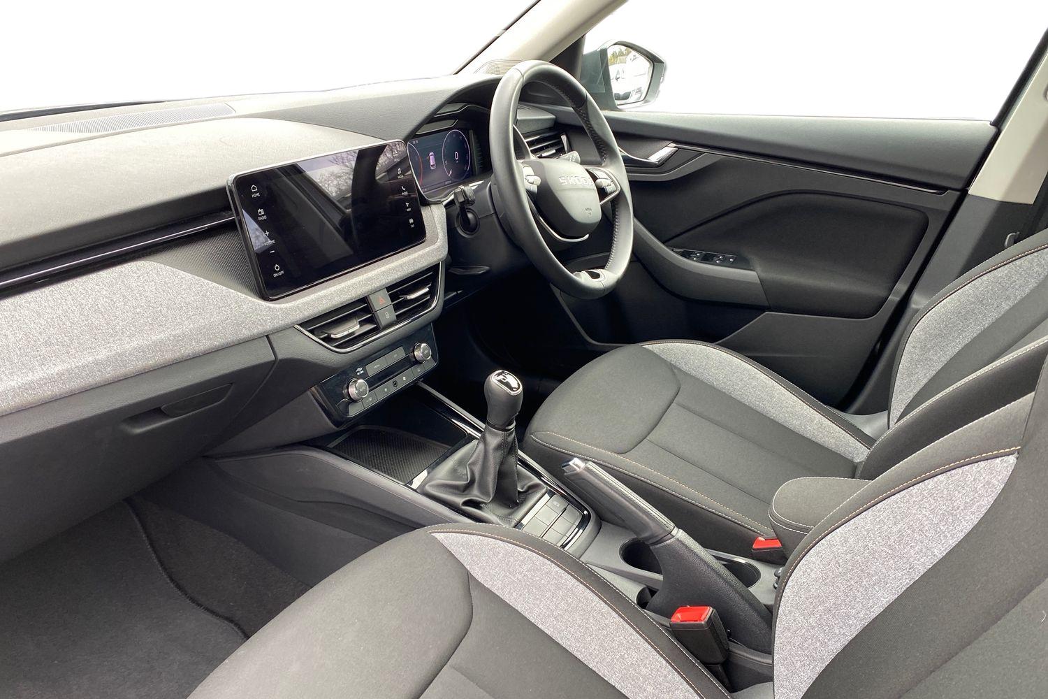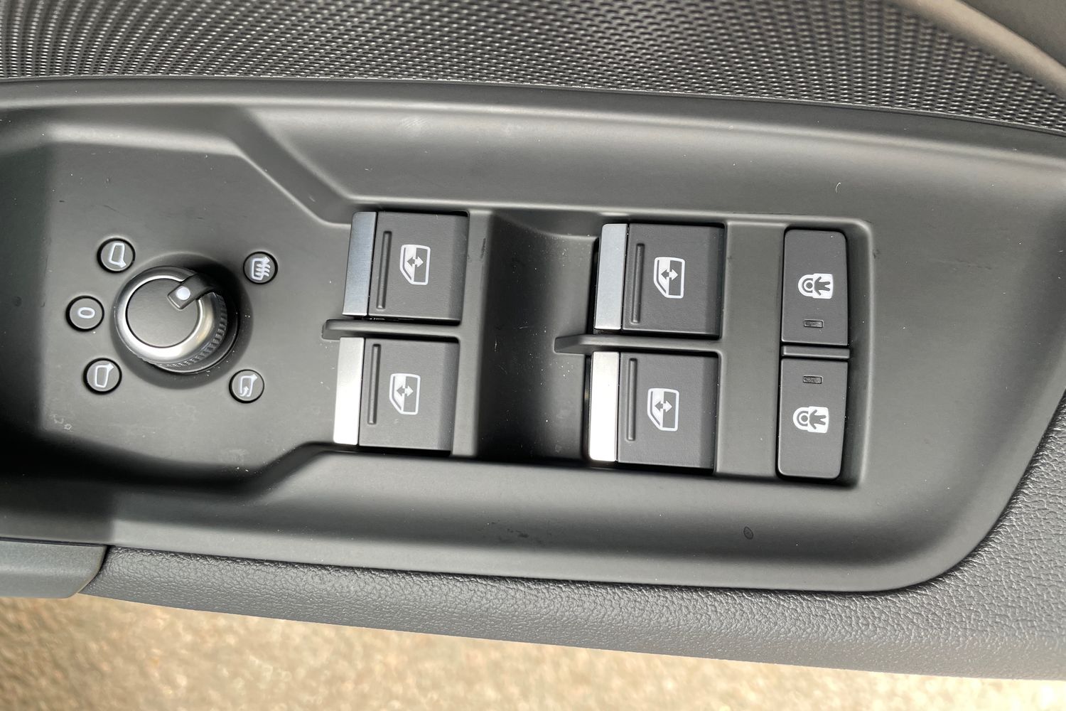 "Structured grey accent surfaces insert of air vents, interior door handle recesses and centre console in quartz paint finish"
