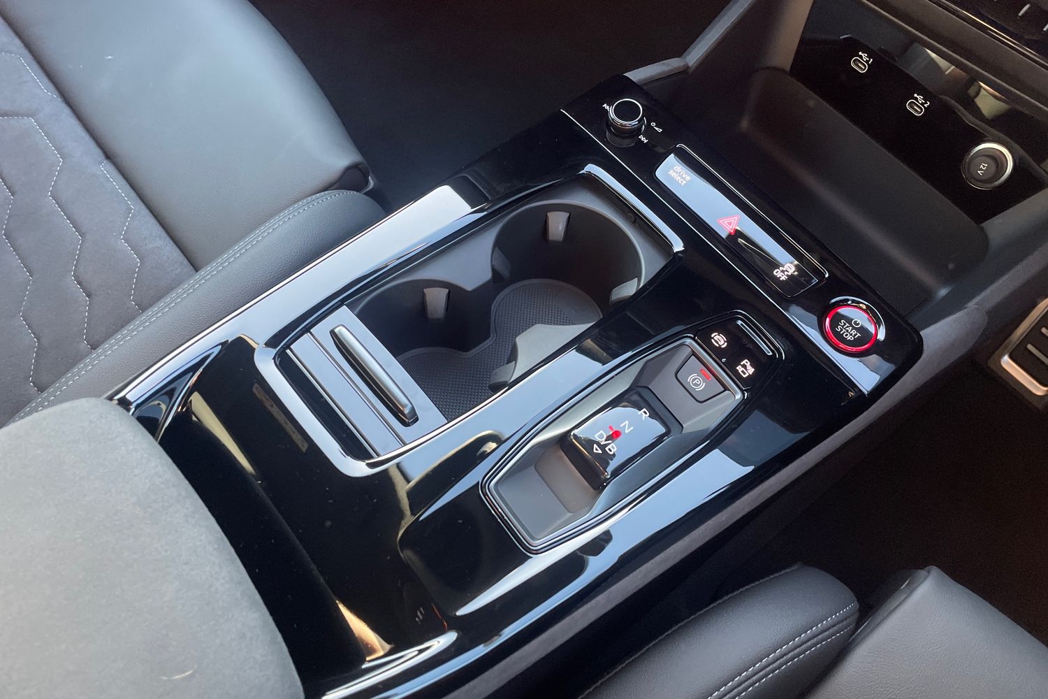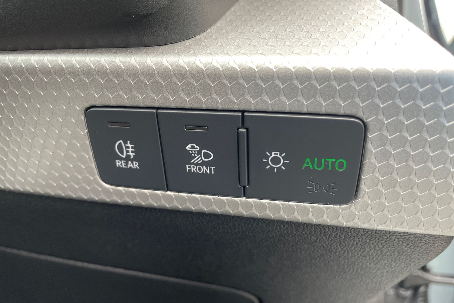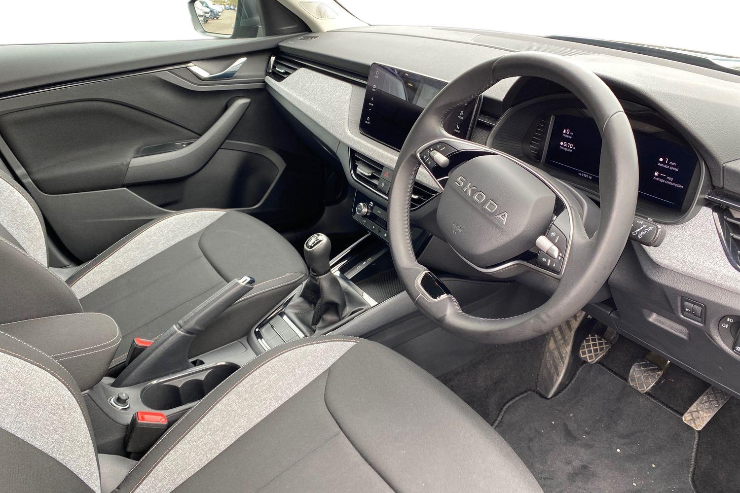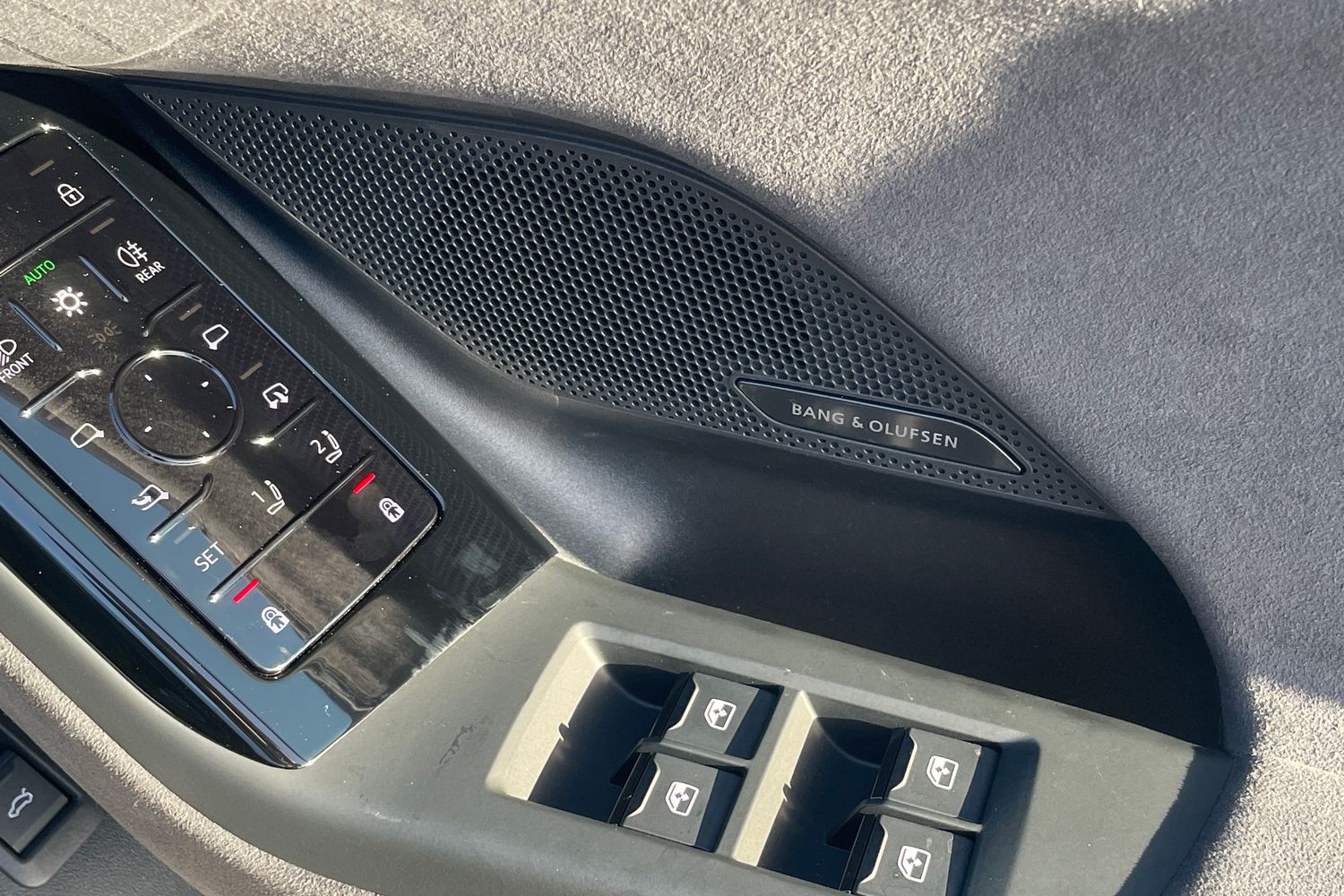 "Structured grey accent surfaces insert of air vents, interior door handle recesses and centre console in quartz paint finish"