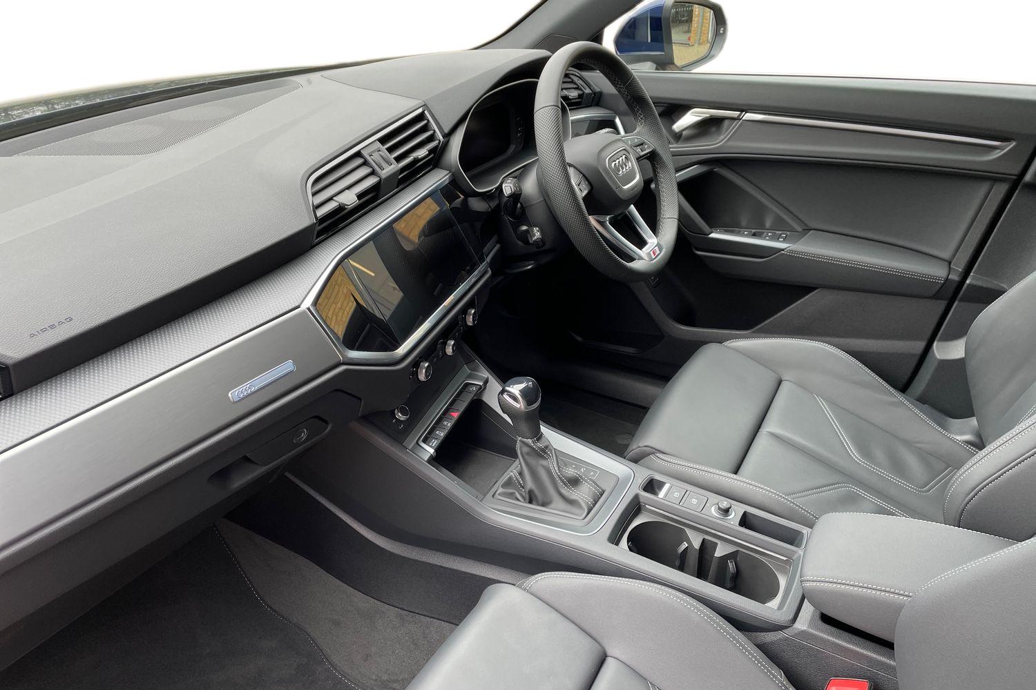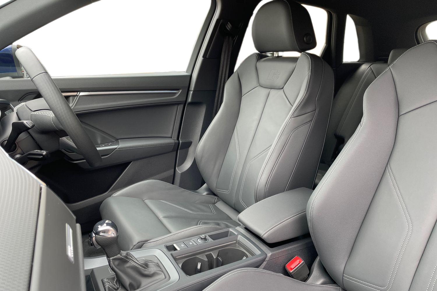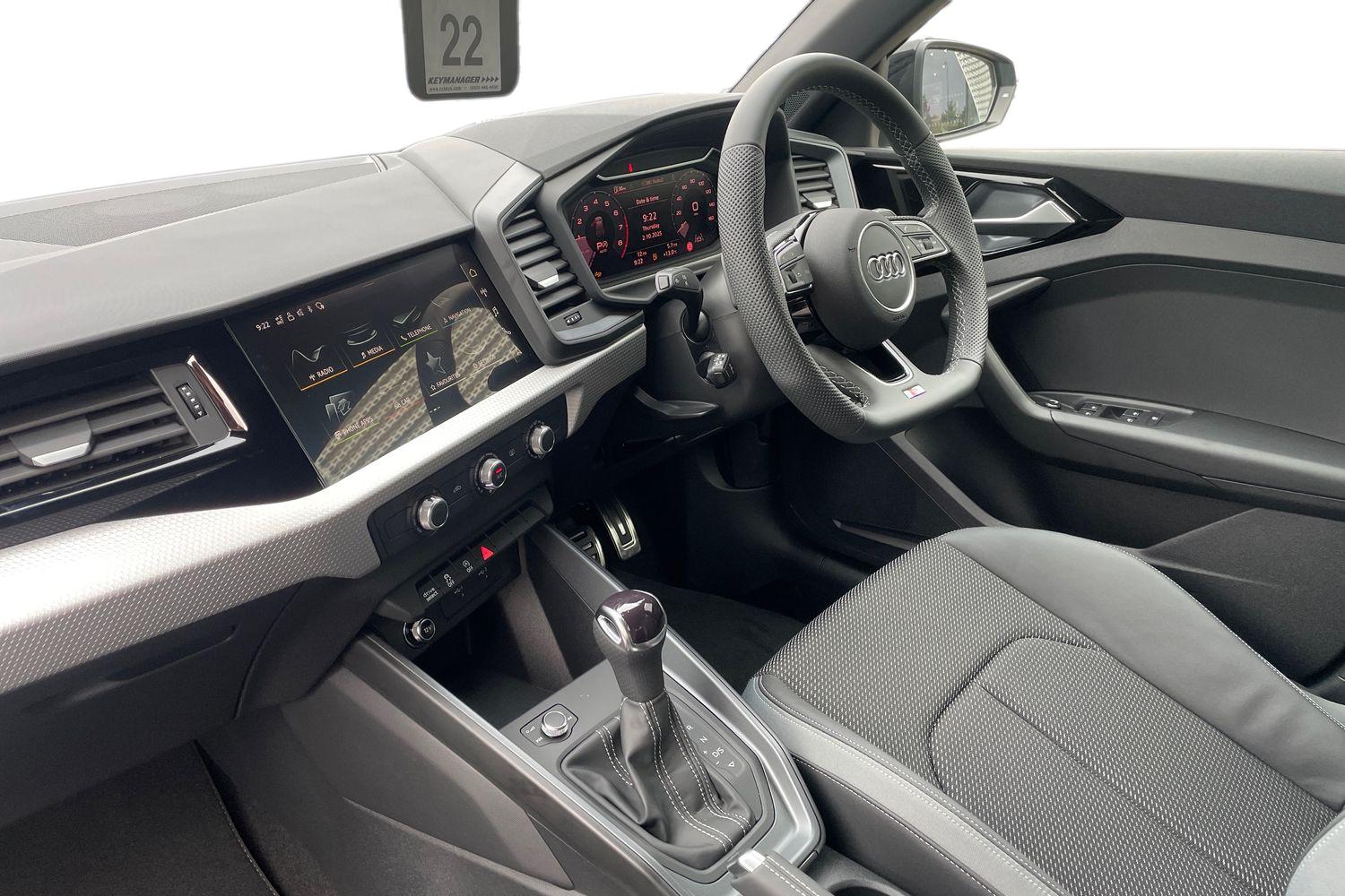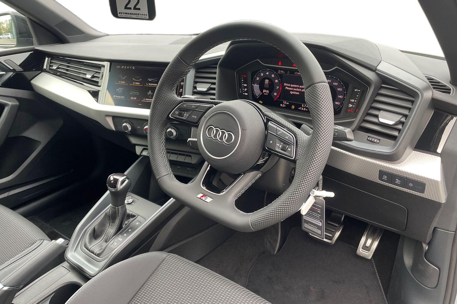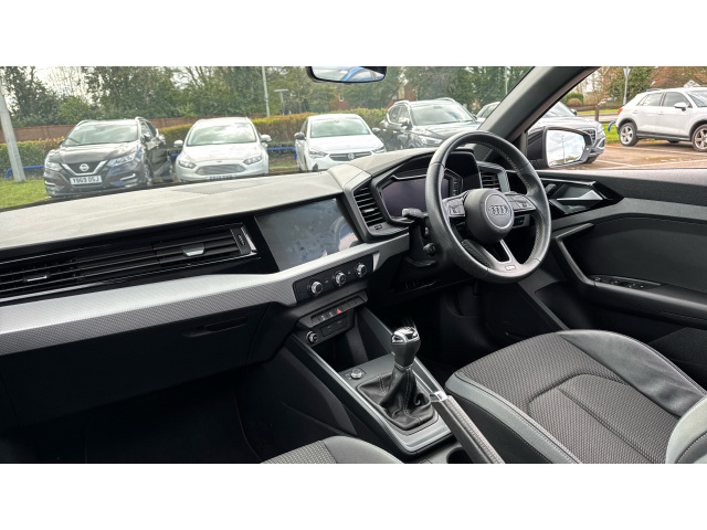 "features": "10.25\" Digital instrument cluster display classis style instrument dials + speed,odometer,time,outside temperature,telephone menu + fuel level warning, Audi connect safety emergency and service including E-call, Audi smartphone interface with connect compatible smartphone via USB directly MMI display + Nav,music, third party apps controlled via MMI controller, Automatic start/stop system, Bluetooth interface, Cruise control, Driver's information system, Electromechanical power steering, Lane departure warning system, Service interval indicator, Speed limiter, Voice control system, Washer fluid level indicator, Sports suspension, 1 x SDXC card reader, 2 x USB type C connection points, DAB Digital radio, MMI radio plus with 8.8\" colour MMI display screen and MMI touch, Auto dimming rear view mirror, Body coloured door mirrors, Door sills with aluminium inlays and S Line logo, Electric front and rear windows, Electrically adjustable, heated, folding door mirrors with integrated LED side indicator, Front side air inlets in grained matt black and C frame in titanium black, Heat insulating glass windscreen and side windows, Heated rear windscreen, LED headlights with LED rear lights + dynamic rear indicators + headlight adjustment and high beam, turning light + LED daytime running lights, Radiator grille and rear diffuser in matt titanium black, Radiator protective grille frame in matt aluminium silver, Rain and light sensors, Rear fog lights, Rear wiper, S line badges on front wings, Side front spoiler lips in grained matt black, 12V socket in centre console with two cup holders, 3 rear seats with headrests, 40:60 Split folding rear seat or folded fully, Black cloth headlining, Driver and passenger seat with manual height adjust with forward and backwards adjustment, Front and rear black floor mats with contrast stitching in fine silver, Front head restraints, Height and reach adjustable steering wheel, ISOFIX child seat mounting for front passenger and outer rear seats including top tether attachment point of outer rear seats, Leather gear knob with aluminium trim, Luggage compartment light with front and rear reading lights, Manually adjustable lumbar support in front seats, Stainless steel pedals, LED interior lighting pack - A1, Luggage compartment pack - A1, S line exterior styling pack - A1 Sportback, 3x3 point rear seatbelts, Audi pre-sense front with pedestrain and cyclist recognition, Brake assist function, Driver and front passenger airbag with front side and head airbags, Electronic Stability Control including ABS, EBD, ASR and EDL, Front and rear seatbelt reminder, Front passenger airbag deactivation switch, Hill hold assist, Seatbelt height adjustment for front seats, Seatbelt monitoring, Tyre pressure warning light, Warning triangle and first aid kit, Anti theft alarm, Anti theft wheel bolts and loose wheel warning, Immobiliser, Remote central locking with 2 foldaway keys, Aluminium trim for control switches, air vents and digital instrument cluster, Silver grey inlays polygon structure in diamond paint finish, Structured grey accent areas including air vents, door handle recesses and centre console in quartz paint finish, ",