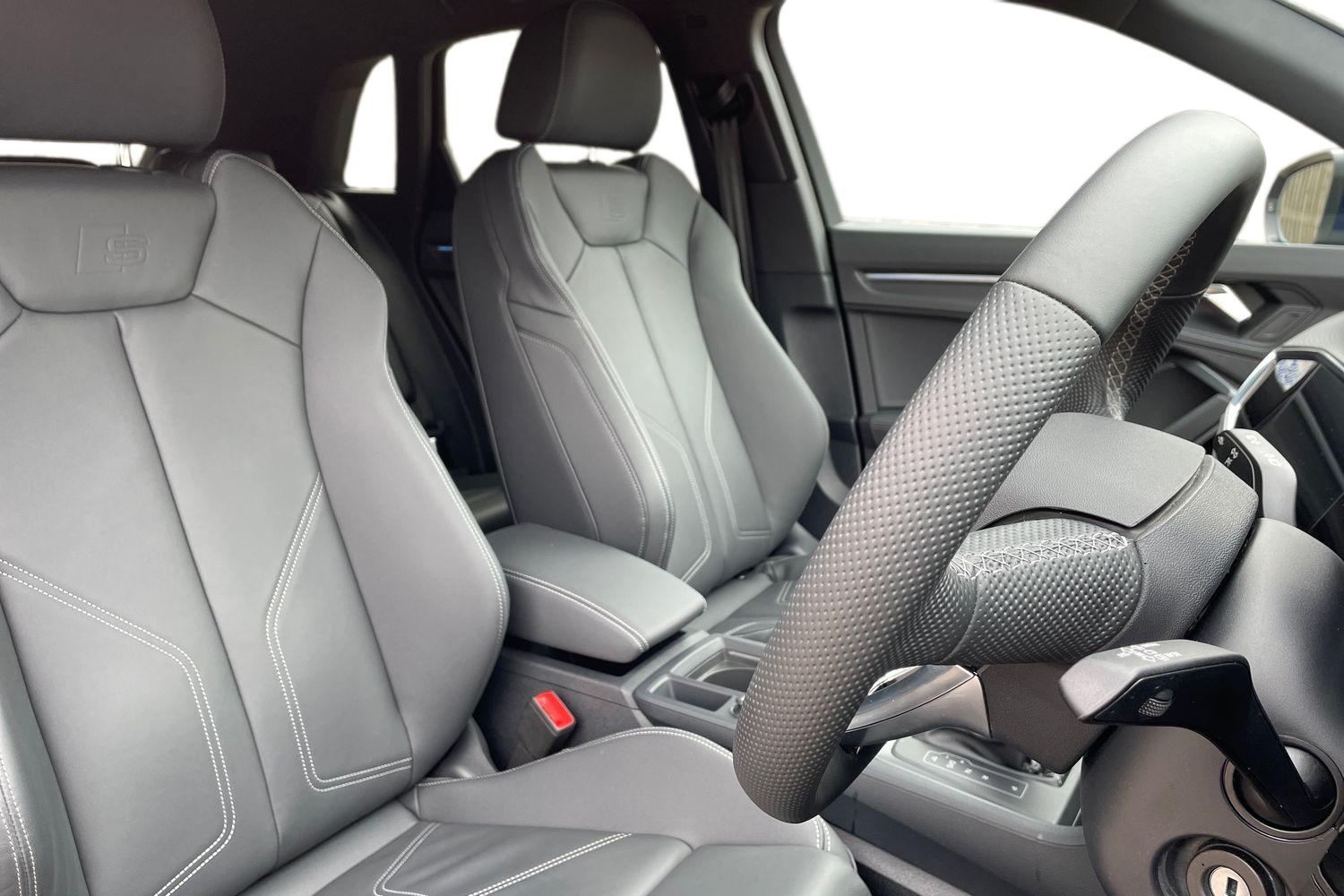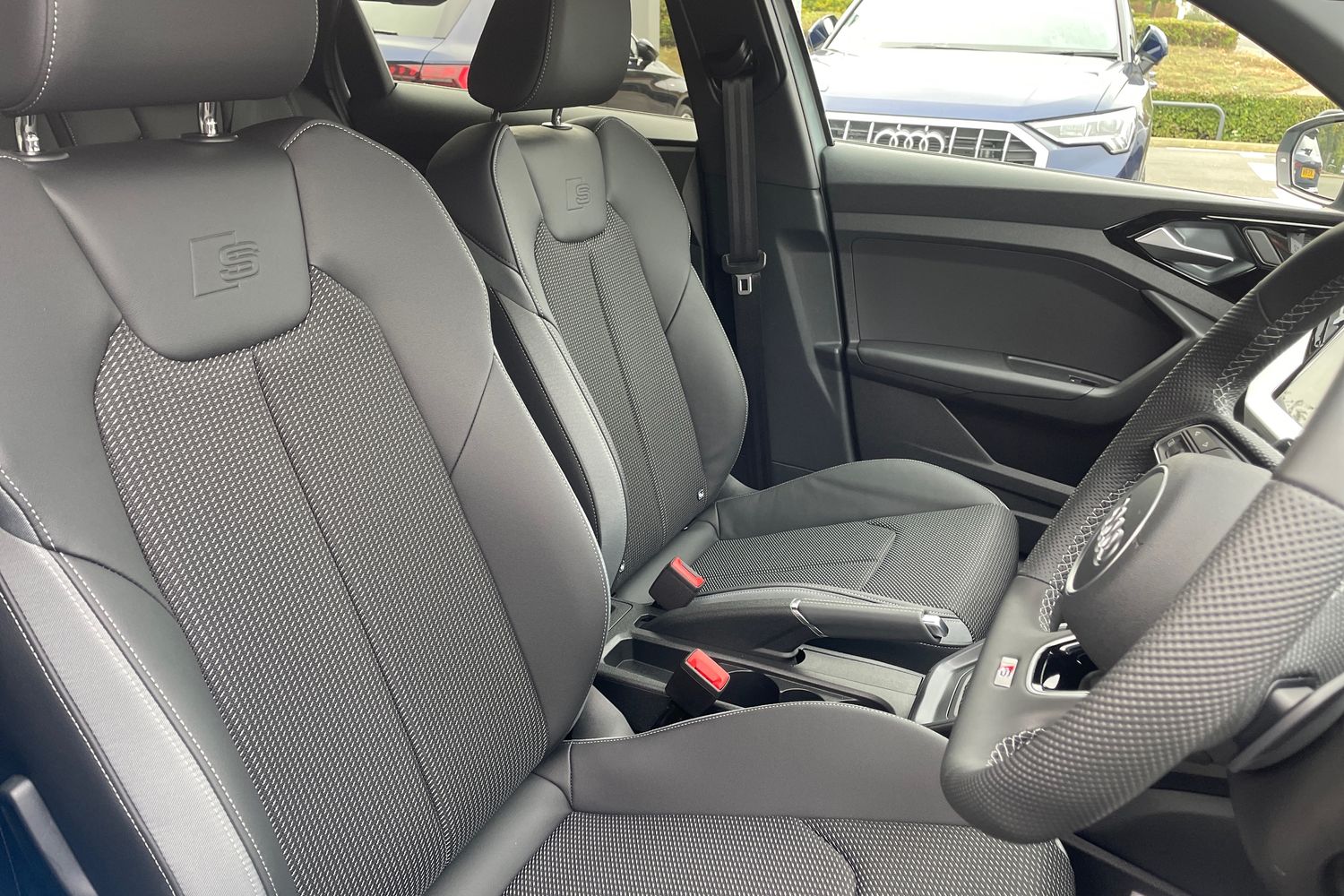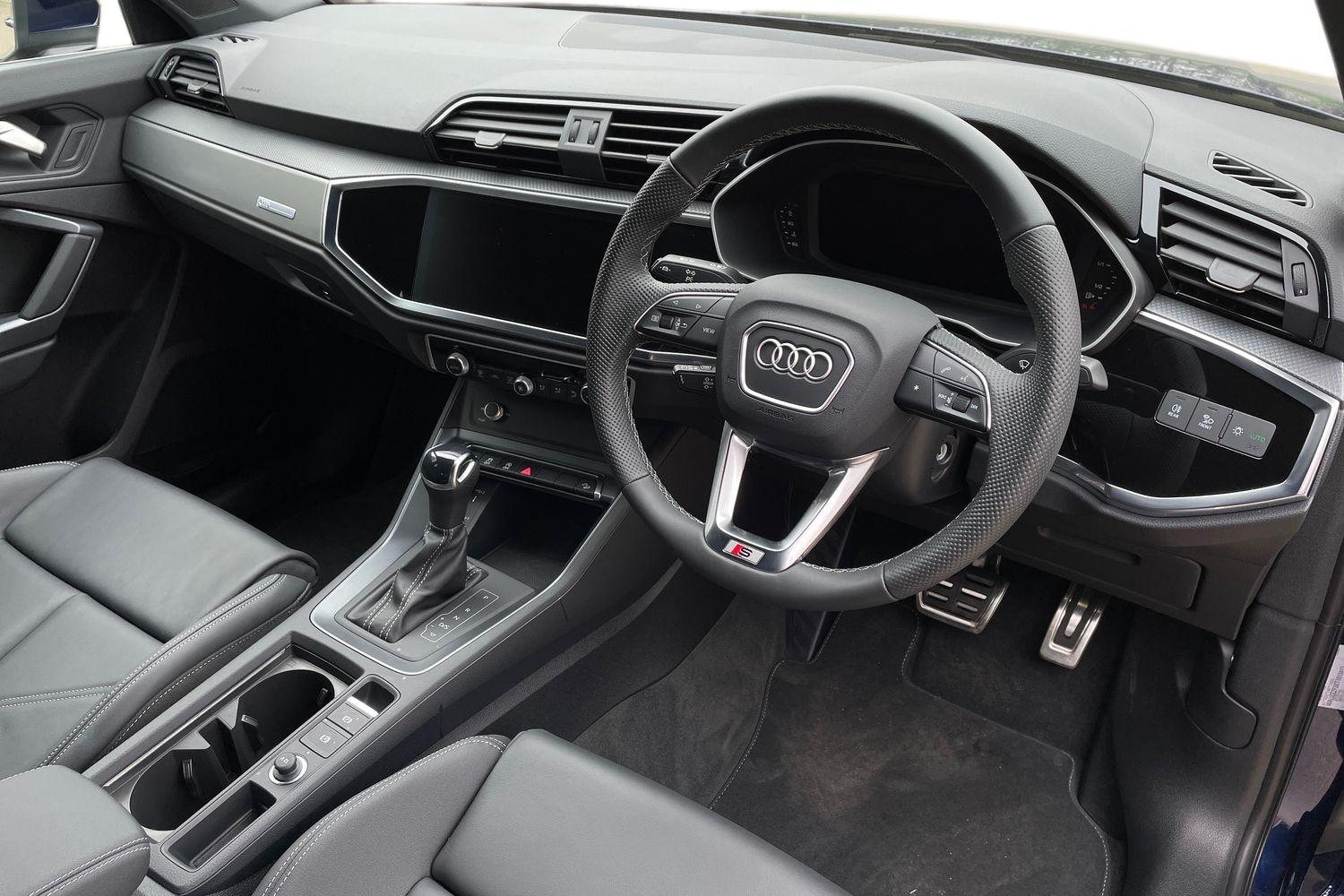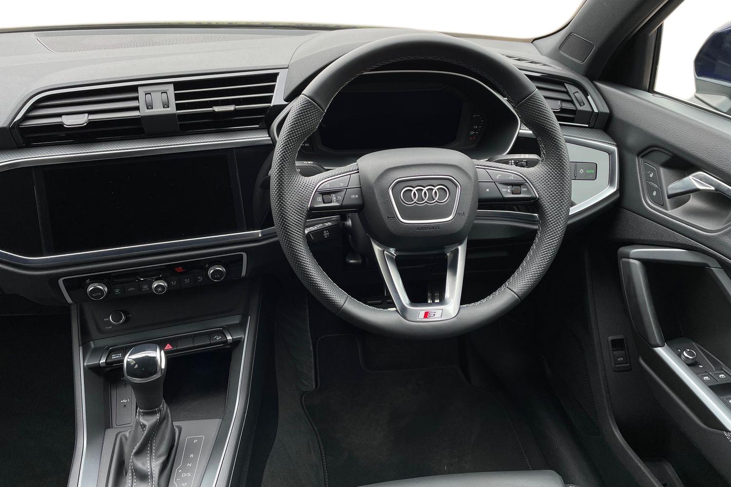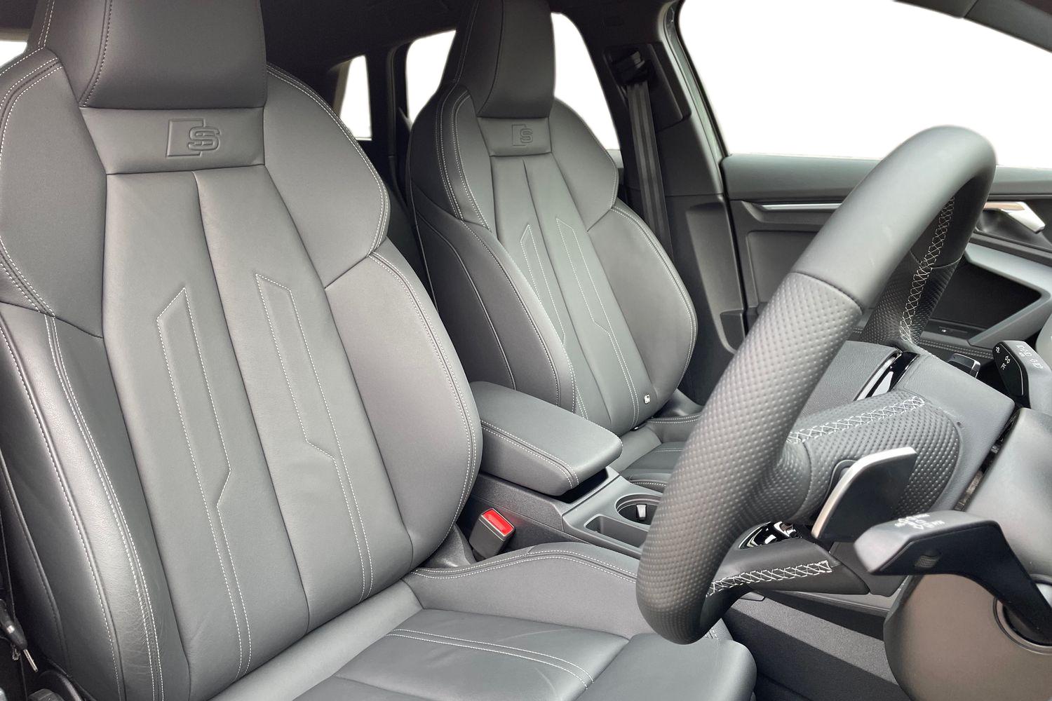 "features": "10.25\" Digital instrument cluster display classis style instrument dials + speed,odometer,time,outside temperature,telephone menu + fuel level warning, Audi connect safety emergency and service including E-call, Audi smartphone interface with connect compatible smartphone via USB directly MMI display + Nav,music, third party apps controlled via MMI controller, Automatic start/stop system, Bluetooth interface, Cruise control, Driver's information system, Electromechanical power steering, Lane departure warning system, Service interval indicator, Speed limiter, Voice control system, Washer fluid level indicator, Sports suspension, 1 x SDXC card reader, 2 x USB type C connection points, DAB Digital radio, MMI radio plus with 8.8\" colour MMI display screen and MMI touch, Auto dimming rear view mirror, Body coloured door mirrors, Door sills with aluminium inlays and S Line logo, Electric front and rear windows, Electrically adjustable, heated, folding door mirrors with integrated LED side indicator, Front side air inlets in grained matt black and C frame in titanium black, Heat insulating glass windscreen and side windows, Heated rear windscreen, LED headlights with LED rear lights + dynamic rear indicators + headlight adjustment and high beam, turning light + LED daytime running lights, Radiator grille and rear diffuser in matt titanium black, Radiator protective grille frame in matt aluminium silver, Rain and light sensors, Rear fog lights, Rear wiper, S line badges on front wings, Side front spoiler lips in grained matt black, 12V socket in centre console with two cup holders, 3 rear seats with headrests, 40:60 Split folding rear seat or folded fully, Black cloth headlining, Driver and passenger seat with manual height adjust with forward and backwards adjustment, Front and rear black floor mats with contrast stitching in fine silver, Front head restraints, Height and reach adjustable steering wheel, ISOFIX child seat mounting for front passenger and outer rear seats including top tether attachment point of outer rear seats, Leather gear knob with aluminium trim, Luggage compartment light with front and rear reading lights, Manually adjustable lumbar support in front seats, Stainless steel pedals, LED interior lighting pack - A1, Luggage compartment pack - A1, S line exterior styling pack - A1 Sportback, 3x3 point rear seatbelts, Audi pre-sense front with pedestrain and cyclist recognition, Brake assist function, Driver and front passenger airbag with front side and head airbags, Electronic Stability Control including ABS, EBD, ASR and EDL, Front and rear seatbelt reminder, Front passenger airbag deactivation switch, Hill hold assist, Seatbelt height adjustment for front seats, Seatbelt monitoring, Tyre pressure warning light, Warning triangle and first aid kit, Anti theft alarm, Anti theft wheel bolts and loose wheel warning, Immobiliser, Remote central locking with 2 foldaway keys, Aluminium trim for control switches, air vents and digital instrument cluster, Silver grey inlays polygon structure in diamond paint finish, Structured grey accent areas including air vents, door handle recesses and centre console in quartz paint finish, ",