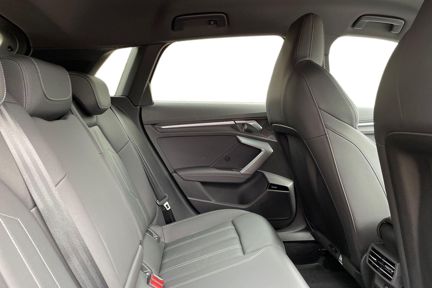 "features": "10.25\" Digital instrument cluster display classis style instrument dials + speed,odometer,time,outside temperature,telephone menu + fuel level warning, Advanced driver attention and drowsiness monitor, Audi connect emergency call and service, Audi drive select, Audi remote connect and control, Audi smartphone interface, Bluetooth interface, Camera based traffic sign recognition, Cruise control, Driver's information system, Electromechanical power steering, Lane departure warning system, Rear parking sensor, Service interval indicator, Speed limiter, Start stop system with recuperation, Voice control system, Washer fluid level indicator, Sports suspension, 2 x USB type C connection points, 6 loudspeakers, DAB Digital radio, MMI radio plus with 10.1\" colour MMI display screen and MMI touch, Auto dimming rear view mirror, Black side skirts, Body coloured bumpers, Door sill trims with aluminium inlays and logo, Electric front and rear windows, Electrically adjustable, heated, folding door mirrors with integrated LED side indicator, Front side air inlets in grained matt black and C frame in anthracite black, Front wing badges, Headlight cleaning system, Heat insulating glass windscreen and side windows, Heated rear windscreen, High level LED brake light, LED daytime running lights, LED headlights with range control LED rear lights + dynamic rear indicators, Light and rain sensors, Privacy glass, Radiator grille and rear diffuser in matt anthracite black, Radiator protective grille frame in matt aluminium silver, Rear fog lights, Rear side wing doors, Rear wiper, Side front spoiler lips in grained matt black, 12V socket in centre console with two cup holders, 3 rear seats with headrests, 3 seat bench in 2nd row, 3 spoke flat bottomed multi-function plus leather steering wheel with S badging, grips in preforated leather, contrast stitching and paddle shift, 40:60 Split folding rear seat or fully collapsed, Black cloth headlining, Front and rear velour black floor mats with contrast stitching in fine silver, Front head restraints, Front passenger seat, Height and reach adjustable steering wheel, Interior lighting includes roof module, front and rear reading lights and right luggage compartment lighting, ISOFIX child seat mounting for front passenger and outer rear seats including top tether attachment point of outer rear seats, Leather gear knob with aluminium trim, Leather handbrake grip, Manual air conditioning, Manual height adjustable for driver and front passenger seat, Manually adjustable lumbar support in front seats, Stainless steel pedals, Ambient lighting package - A1, Black styling pack - A1 Sportback Black Edition, Luggage compartment pack - A1, 3x3 point rear seatbelts, Audi pre-sense front with pedestrain and cyclist recognition, Brake assist function, Driver and front passenger airbag with front side and head airbags, Electronic Stability Control including ABS, EBD, ASR and EDL, Front passenger airbag deactivation switch, Hill hold assist, Manual rear child locks, Seatbelt height adjustment for front seats, Seatbelt monitoring, Tyre pressure loss indicator, Warning triangle and first aid kit, Anti theft alarm, Anti theft wheel bolts, Immobiliser, Remote control key with safelock, Aluminium trim for control switches, air vents and digital instrument cluster, Black dashboard, Silver grey inlays polygon structure in diamond paint finish, Structured grey accent surfaces insert of air vents, interior door handle recesses and centre console in quartz paint finish, ",