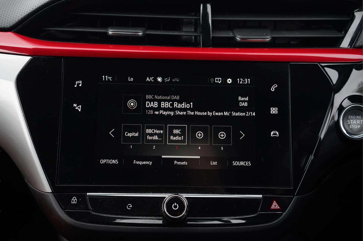 "features": "7 inch digital instrument cluster display, Apple car play/Android Auto, Auto tele unit 3S vehicle communication system, Bluetooth mobile phone portal, Central facia display with digital clock, outside air temperature and audio information, Cruise control with intelligent speed limiter, Driver drowsiness alert system, eCall emergency call system, Front camera system, Front pedestrian detection BASIS, Infotainment remote controls right side of steering wheel, telephone buttons on left side, Instrumentation - Speedometer, rev counter, low fuel gauge warning light + water temperature gauge warning light, Lane departure warning with lane assist, Lights on audible warning, Multi function trip computer - Trip odometer, vehicle range, average speed and fuel economy, instantaneous fuel economy and driving time, Multimedia Navi with 7\" colour touchscreen, Sat Nav, European coverage,2D/3D street level map, points-of-interest search and map updates via USB, RDS with traffic programme, Rear parking distance sensors, Service indicator, Speed sensitive power steering, Speed sign recognition, Vauxhall connect box, 11kW 3-Phase On Board Charger, Electronic returnless fuel system, Mode 3 - 22kW cable, Under body shield for aero, AM/FM stereo radio, Bluetooth A2DP audio streaming, DAB Digital radio, Six speakers, Steering wheel audio, phone and cruise controls, USB with iPod control, Automatic headlight control system, Black lower side window mouldings, Body colour door handles, Body colour door mirrors, Body colour front and rear bumpers, Bonnet/headlight/wiper structure, Centre rear brake lights, Chrome logo bar, Dark tinted rear side windows + tailgate window, Electrically adjustable and heated door mirrors, Electrically operated front and rear windows with safety auto reverse and one touch up/down facility, Electrochromic automatic anti-dazzle rear view mirror, Flexible roof mounted aerial, Glazed tailgate and heated rear window with wash/wipe facility, Hazard warning lights, Headlamps for left side traffic, High beam assist, High gloss black finish B pillar, LED daytime running lights, LED front fog lamps, LED Headlights, LED tail lamp, Manual headlamp level control, Rain sensitive windscreen wipers, Rear fog lamp, Rear reversing lights, Rear side wing doors, Solar heat absorbing windscreen and windows, Sports front and rear body styling for upper and lower bumper design, Third brake light, Two speed windscreen wipers with variable intermittent wipe, Windscreen and side window demist vents, 12V power sockets, 2 way adjustment front driver and co-driver passive headrest, 3 seat bench in 2nd row, 3 spoke flat bottom leather steering wheel with satin chrome effect bezel, 4 speed fan with illuminated controls, 4 way manual co-driver fore/aft seat with reclining seatback, 6 way manual fore/aft, up/down with reclining driver seatback, 60/40 split folding rear seat, Alloy sports pedals, Banda marvel cloth upholstery, Black headliner, Cabin particulate filter - removes dust, airborne particles and pollen, Driver/passenger sunvisors with vanity mirrors + covers, Electronic climate control (ECC), Four adjustable facia vents, Front centre armrest with storage, Front cupholder, Front map reading lights, Height adjustable head restraints, Illuminated glovebox with lid, Illuminated load compartment trunk, Interior courtesy light, Internal chrome door handles, Liquid palladium cloth inserts on door trim, Luggage compartment lighting, Mistral fabric side bolsters and surrounds, Polyurethane gear knob/lever, Reach and rake adjustable steering column, Right hand drive (RHD), Single dome lamp with dual front reading lamps, Single front passenger seat, Sports style front seats, Two litre open door pockets, 3 rear 3 point seatbelts, Anti-lock braking system (ABS), Auto city emergency braking, Cornering brake control, Deactivation switch for front passenger's airbag, Drag torque control, EBD - Electronic brakeforce distribution, Electrical child lock system in rear door latch, Electronic parking brake, Electronic Stability Programme (ESP), Emergency brake assist, Forward collision alert, Front seatbelt unfastened audible warning and warning light, Hill hold and start system, Inertia reel lap and diagonal seatbelts for all seats, ISOFIX child seat mountings incorporating top tether anchor points located on second row rear seats, Seatbelt pretensioners, Single tone horn, Six airbags - Driver's dual stage airbag/front passenger's dual stage airbag/front seat side impact airbags/full size curtain airbags, Straight line stability control, Traction control, Tyre deflation detection system, Tyre pressure monitoring system, 2 keys one folding with integral remote, Engine deadlock and immobiliser, Keyless Start, Locking wheel nuts, Remote control central locking, Remote control security alarm system, Remote locking fuel filler flap, Steering column lock, Liquid palladium facia with hot red accents, 17\" Bi-colour alloy wheels, Tyre repair kit, ",