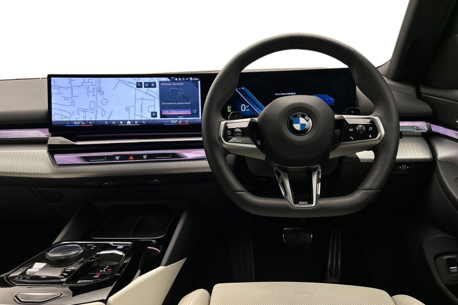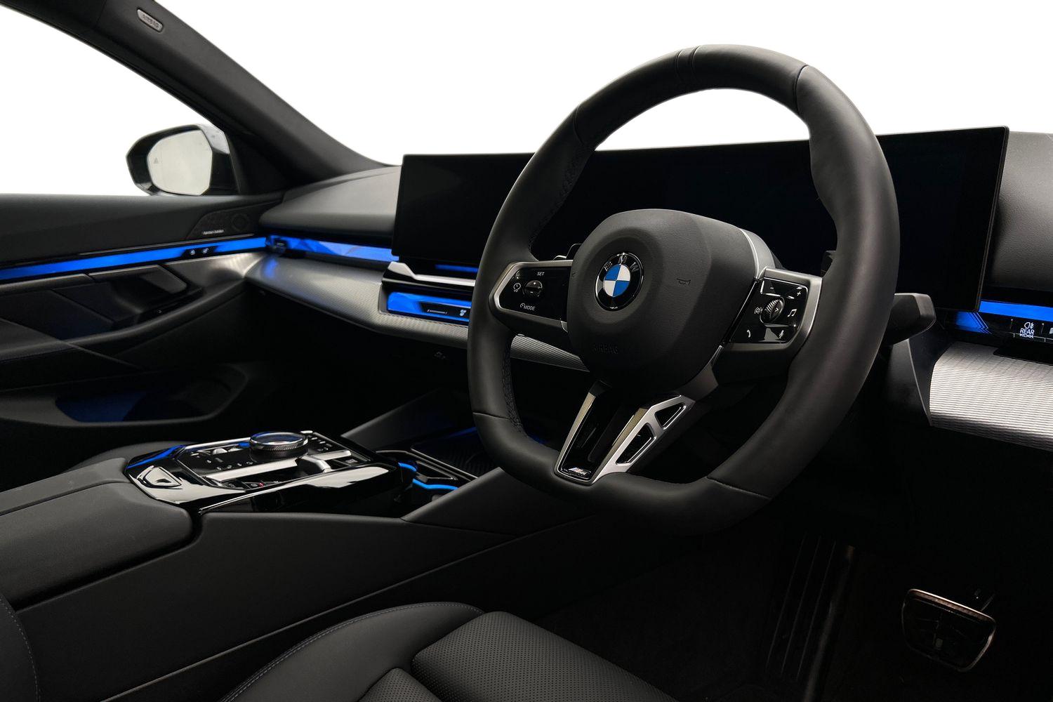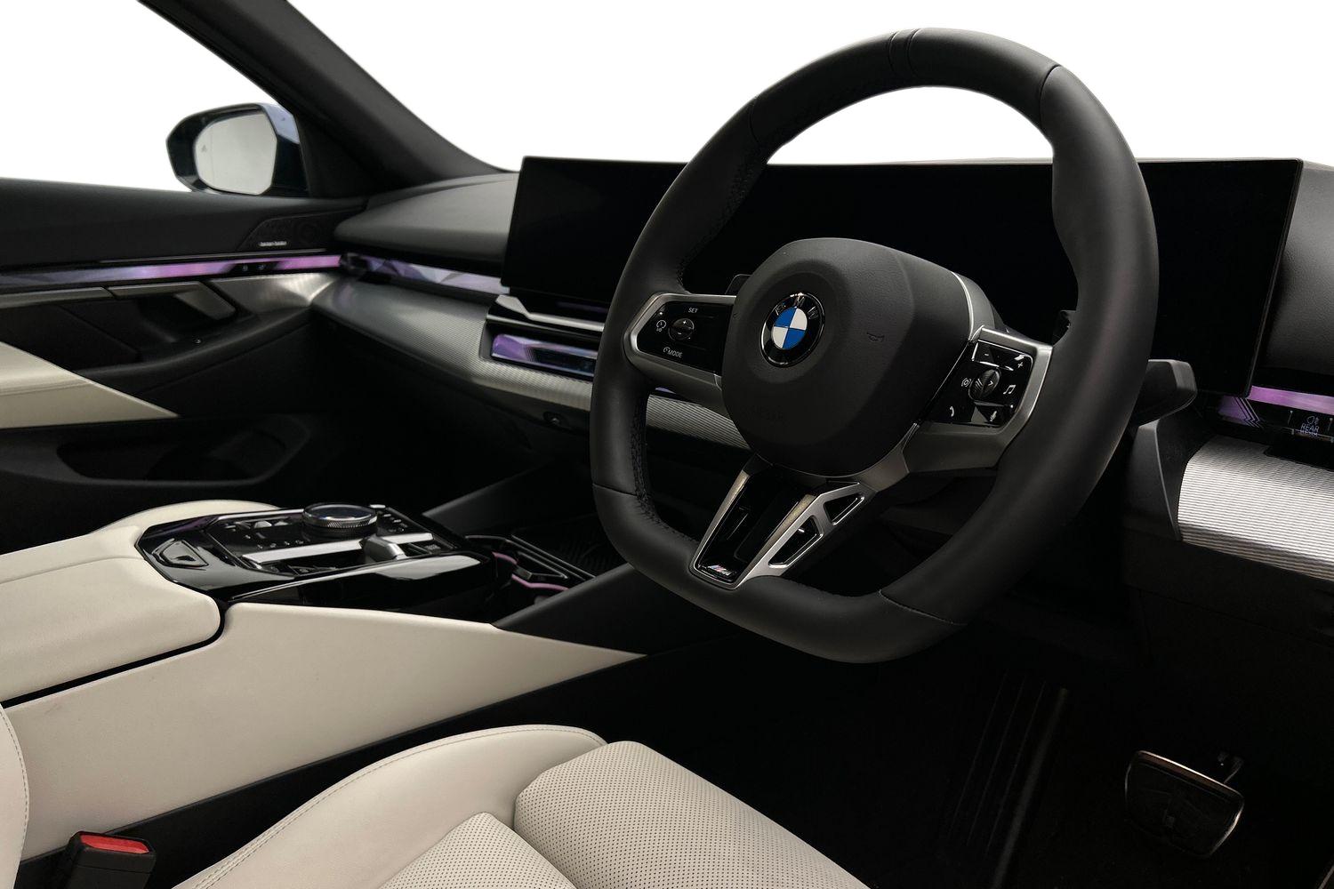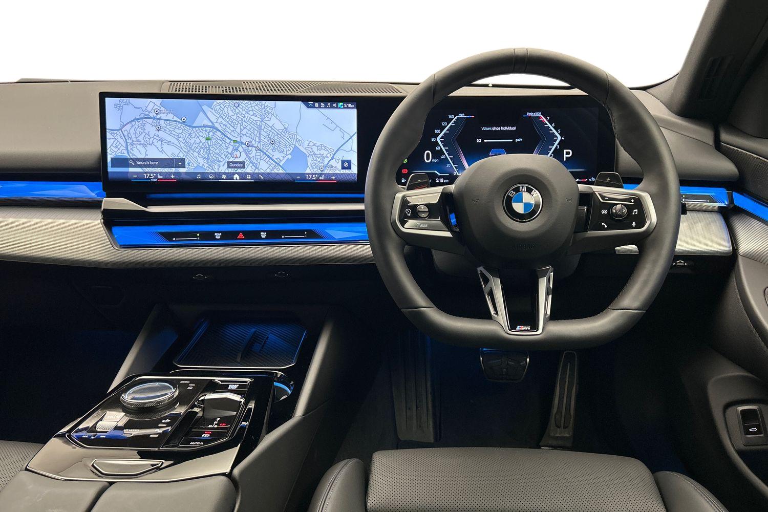 "features": "BMW ConnectedDrive online services, BMW legal emergency call, BMW Teleservices, Brake pad wear indicator, Cruise control with brake assist, Driving Assistant Plus Preparation, Front collision warning with brake intervention, Lane departure warning with active return, Left turn warning with brake function, Multifunctional instrument panel, Oil sensor for level and grade, On board computer inc. average speed, fuel consumption, liquid crystal Info display, journey computer, outside temperature display, personal profile, On-board diagnosis - OBD, PAS, Personal e-SIM, Powered by Operating System 7.0, Run flat indicator, Service interval indicator, Speed limit Info with manual speed limit assist, Stop/start button, 8 speed automatic steptronic transmission with gearshift paddles, DAB tuner, Acoustic glazing, Adaptive LED Headlights, Automatic cornering lights, Automatic windscreen wipers and automatic headlight, BMW selective beam, Body colour door handles, Body coloured bumpers, Dynamic brake lights with LED technology, Electric adjustable door mirrors, Electric front and rear windows with fingertip open/close + anti-trap facility and comfort closing function, Follow me home headlight function, Headlight elements in blue, Heated windscreen washer jets, LED daytime running lights, LED third brake light, Light colour close to that of ordinary daylight, Optimum, homogeneous illumination of the road, Rear boot, Rear side wing doors, 2 zone automatic air conditioning, 3 seat bench in 2nd row, 3 spoke leather M steering wheel in BMW M specific design with M badge, Armrest - front and rear integrated door trim, centre console includes storage compartment, rear centre includes 2 cupholders, Child seat ISOFIX attachment with rear outer seats includes top tether, Electric adjustable front sports seats, Electric adjustable steering column, Electrically adjustable lumbar support for driver and front passenger, Heated driver and front passenger seats, High-gloss black door switch cluster, power window switch and tailgate button on first and second row seat, M Anthracite headlining, M Sport pedal covers in stainless steel, Rear headrests, Single front passenger seat, Through loading system with 40/20/40 rear seat backrest split, Velour floormats, Wireless charging tray, Ambient lighting pack - 5 Series/I5, Connected package professional - 5 Series/I5, Driving assistance pack - 5 Series/I5, Expanded exterior mirror package - 5 series/I5, M high gloss shadow line pack - 5 Series/ I5, M Sport exterior styling pack - 5 Series/I5, 3 rear three point seatbelts, Active protection, Airbag deployment is controlled with respect to the intensity and scope, Anti-lock braking system (ABS), Brake assist, Brake energy regeneration, Cornering brake control (CBC), Crash sensor activating central locking release, hazard warning lights, fuel cut off and interior lighting, Driver and front passenger airbags, Driver central airbag, Driver/front passenger side airbags, DSC - Dynamic Stability Control, Dynamic brake control, Dynamic Traction Control - DTC, Electromechanical parking brake with automatic drive away release and auto hold function, Electronic brake force distribution, Engine drag torque control, Front and rear brake discs with interior ventilation, Front and rear curtain airbags, Front head restraints with anti-whiplash, Head airbags for first and second row seats, Hill start assist, Locking of doors after driving off, M Sport brakes in dark blue metallic painted brake callipers with M designation, Mechanical child proof lock on rear doors, PC iBrake PostCrash approach control warning with light braking function, Side impact protection, Trailer stability control, Two tone horn, Tyre pressure monitoring system, Warning triangle and first aid kit, Alarm system, Locking wheel bolts including wheel bolt adapter, Tyre repair kit plus, ",