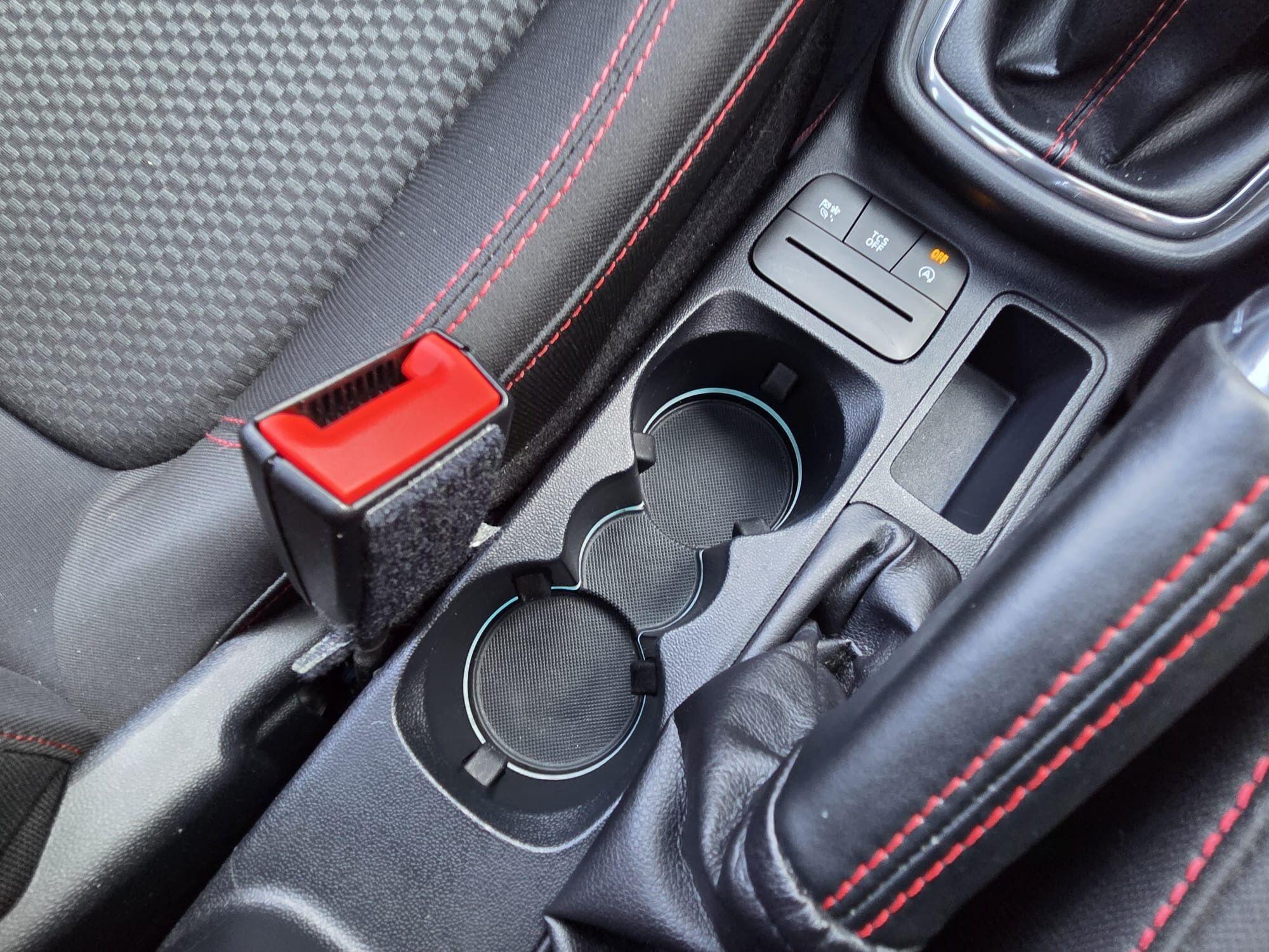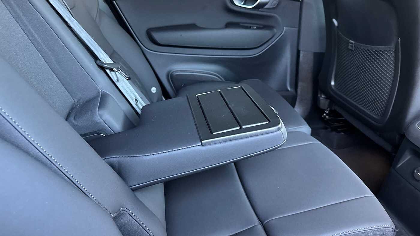 "Foldable rear centre armrest with 2 cupholders and storage compartment",