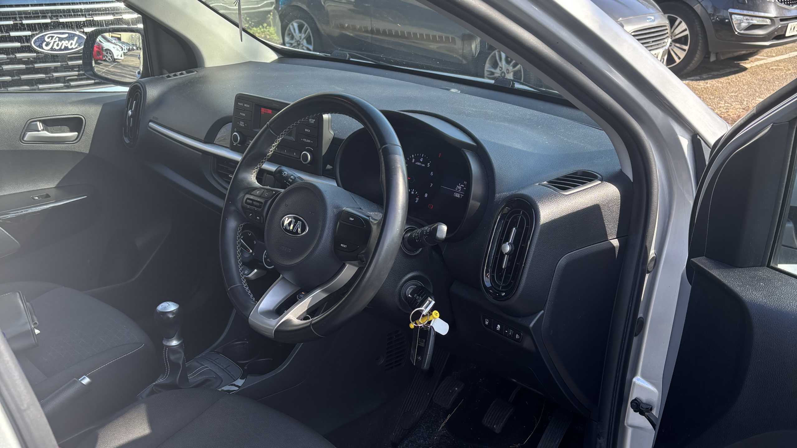 "Brushed dark silver decorative inserts in dash and door panels",