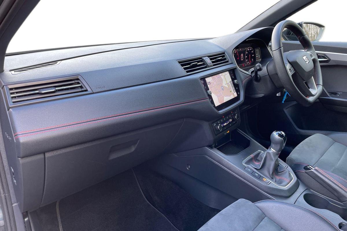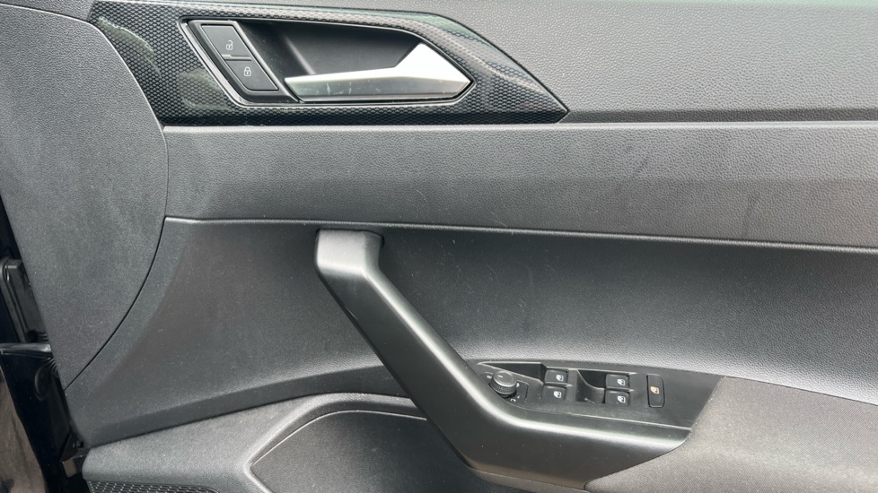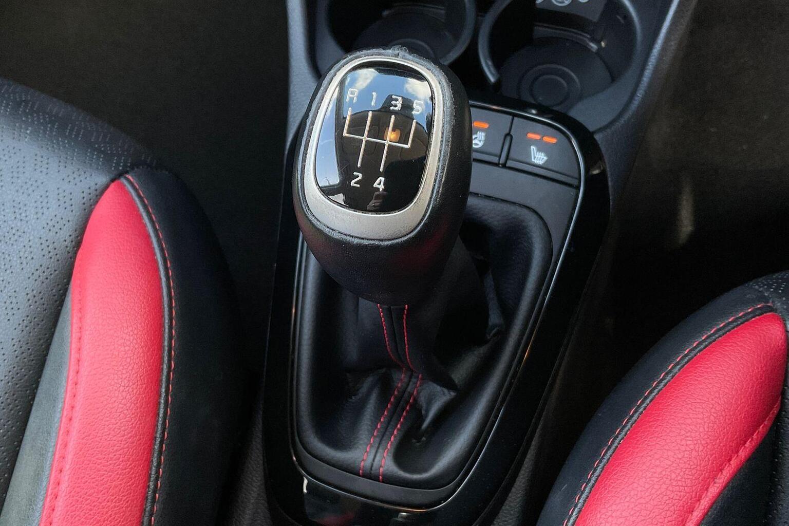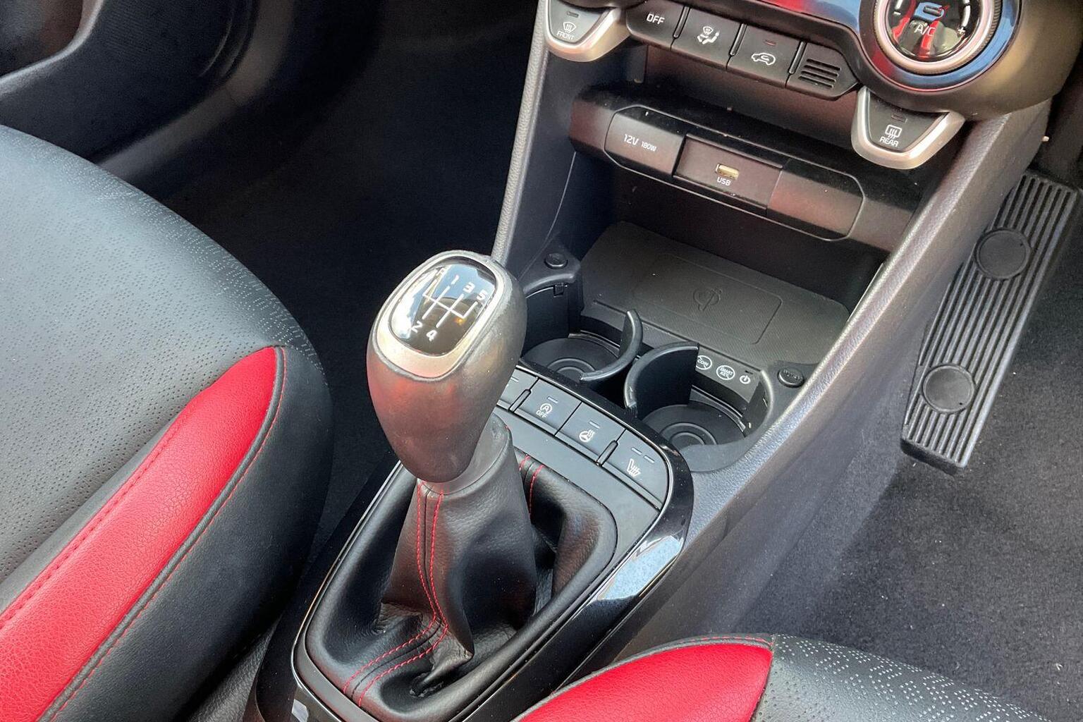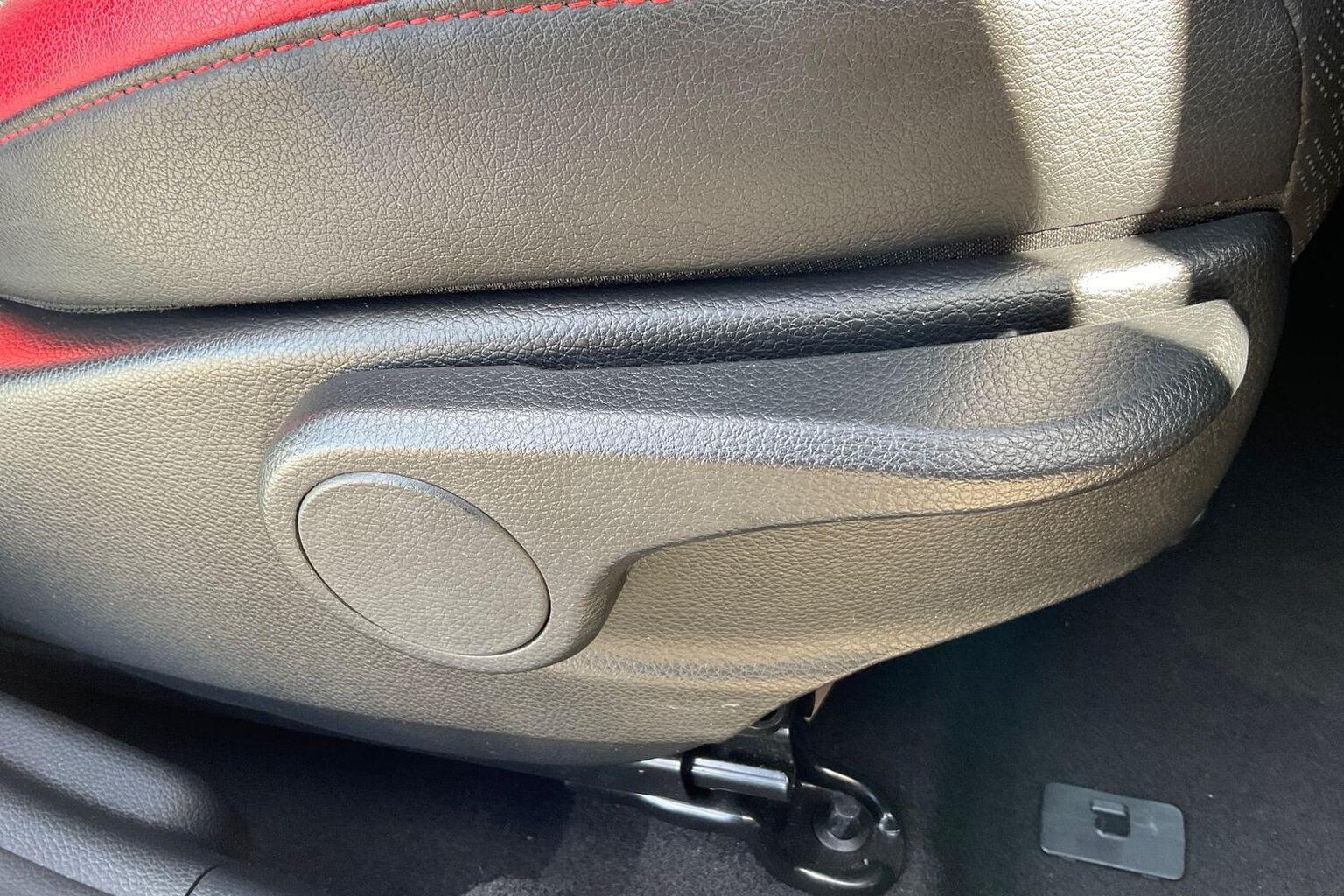 "Black and red accents front door armrest",