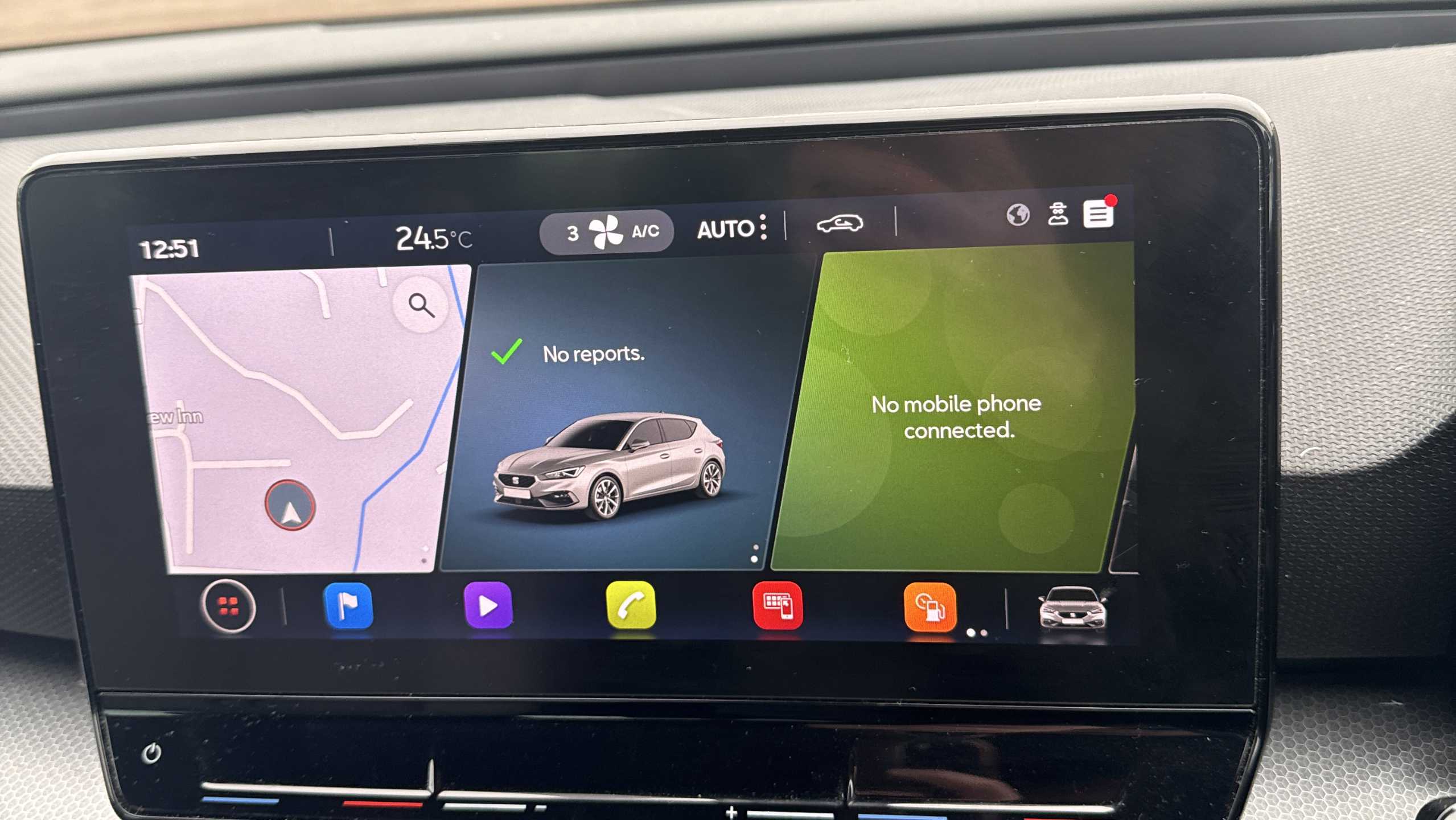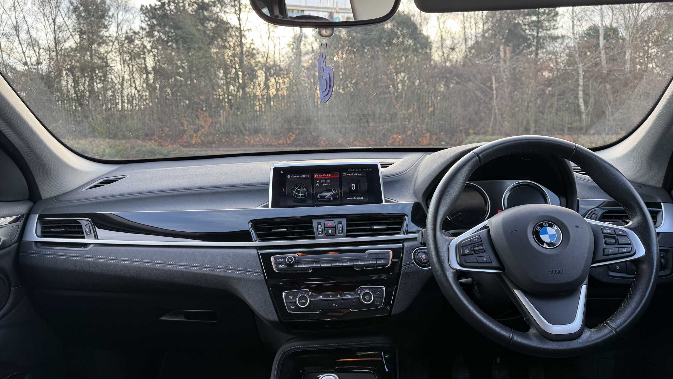 "3 spoke flat bottomed leather steering wheel with satin chrome bezel",