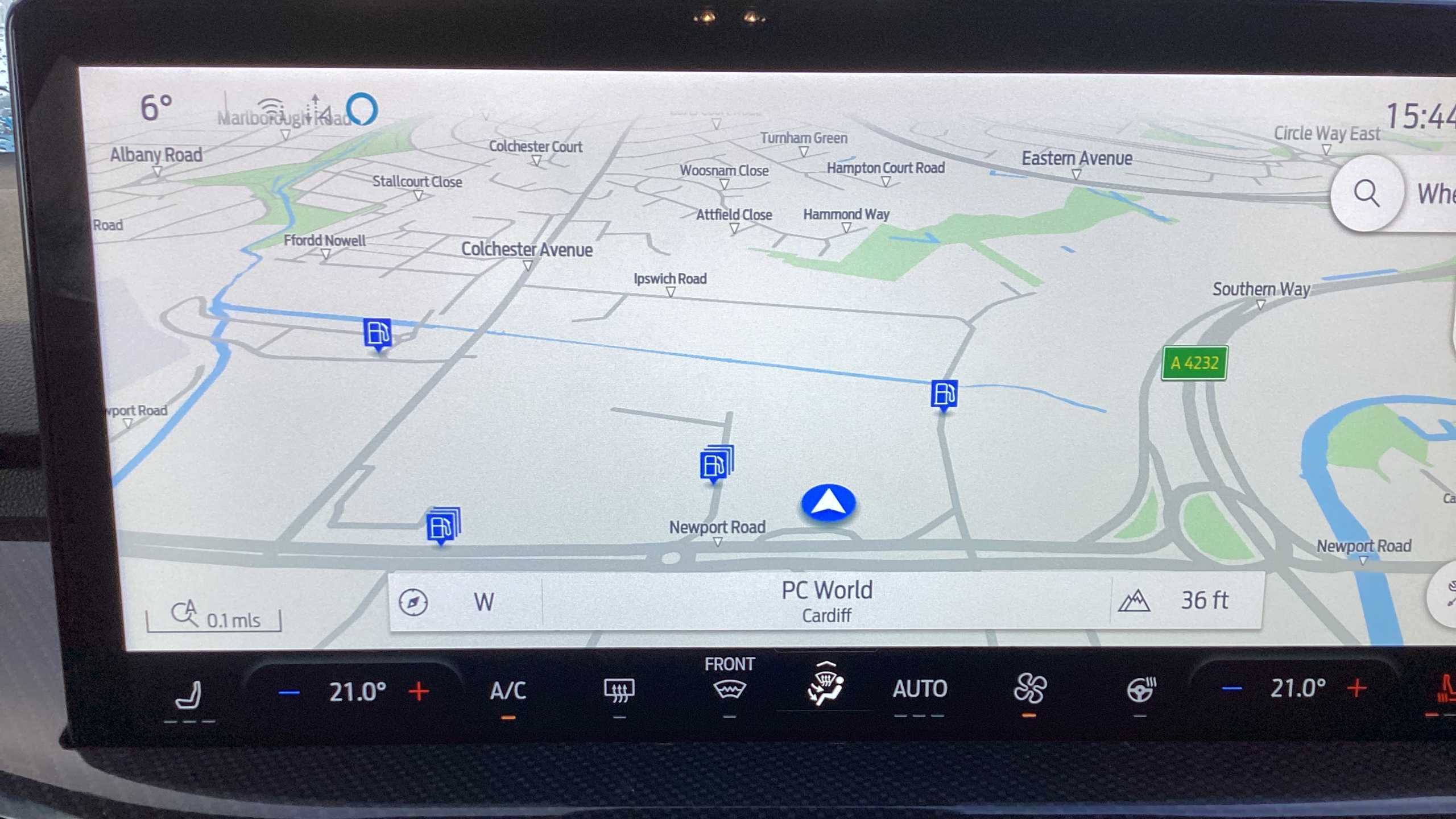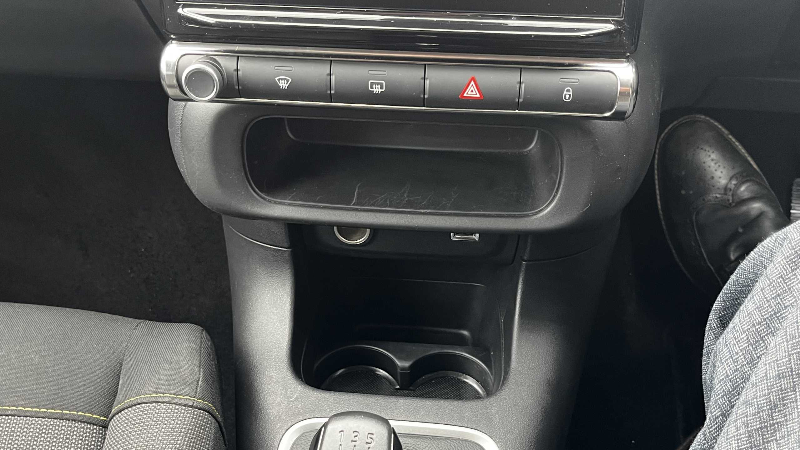 "Centre console with two cup holders at front and one in rear",
