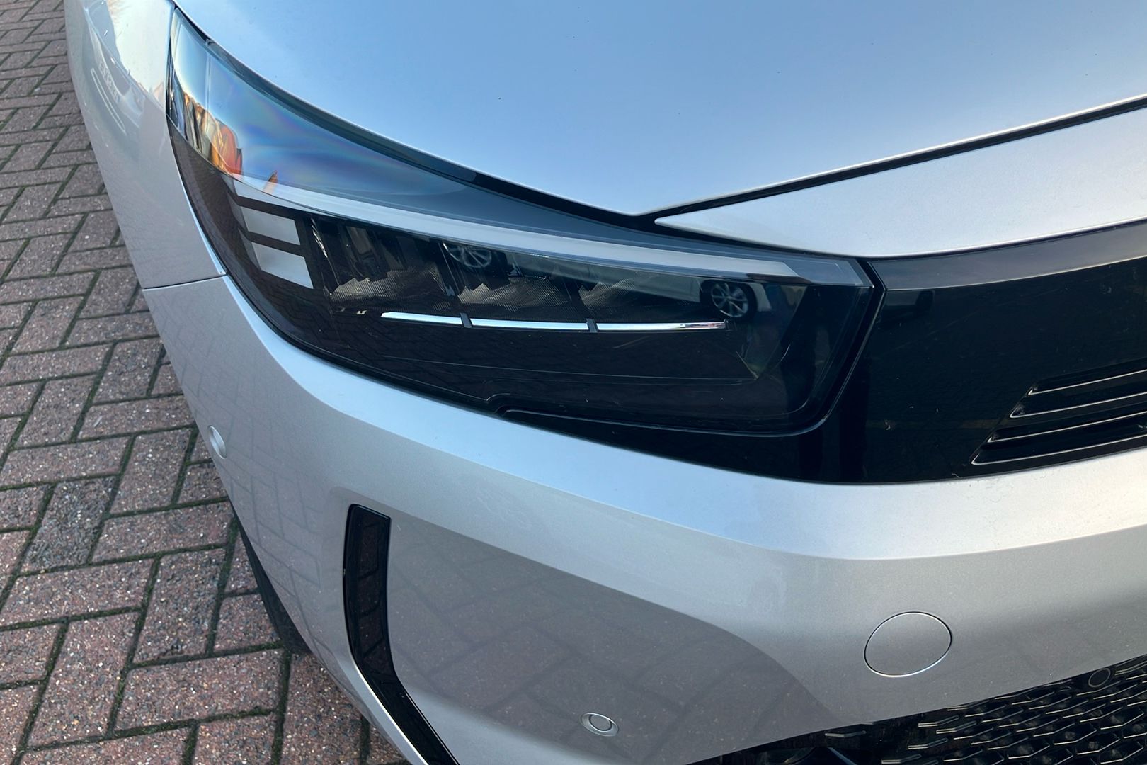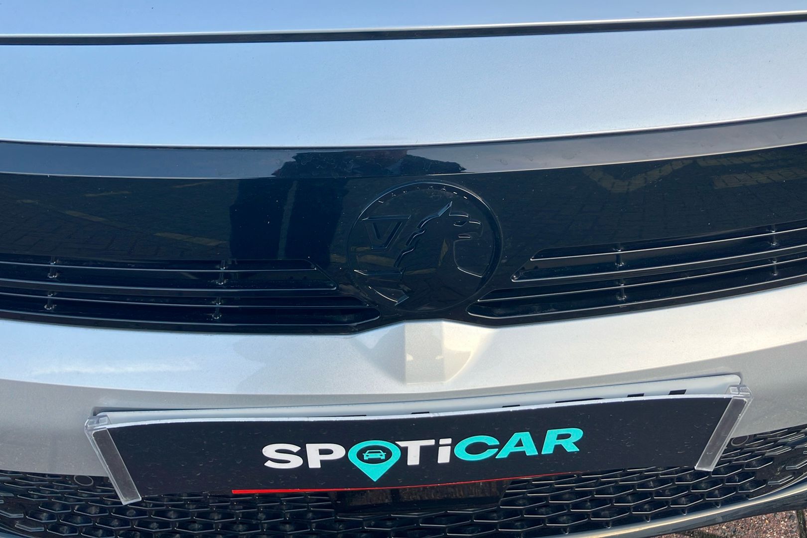 "Black radiator grille with silver surround",