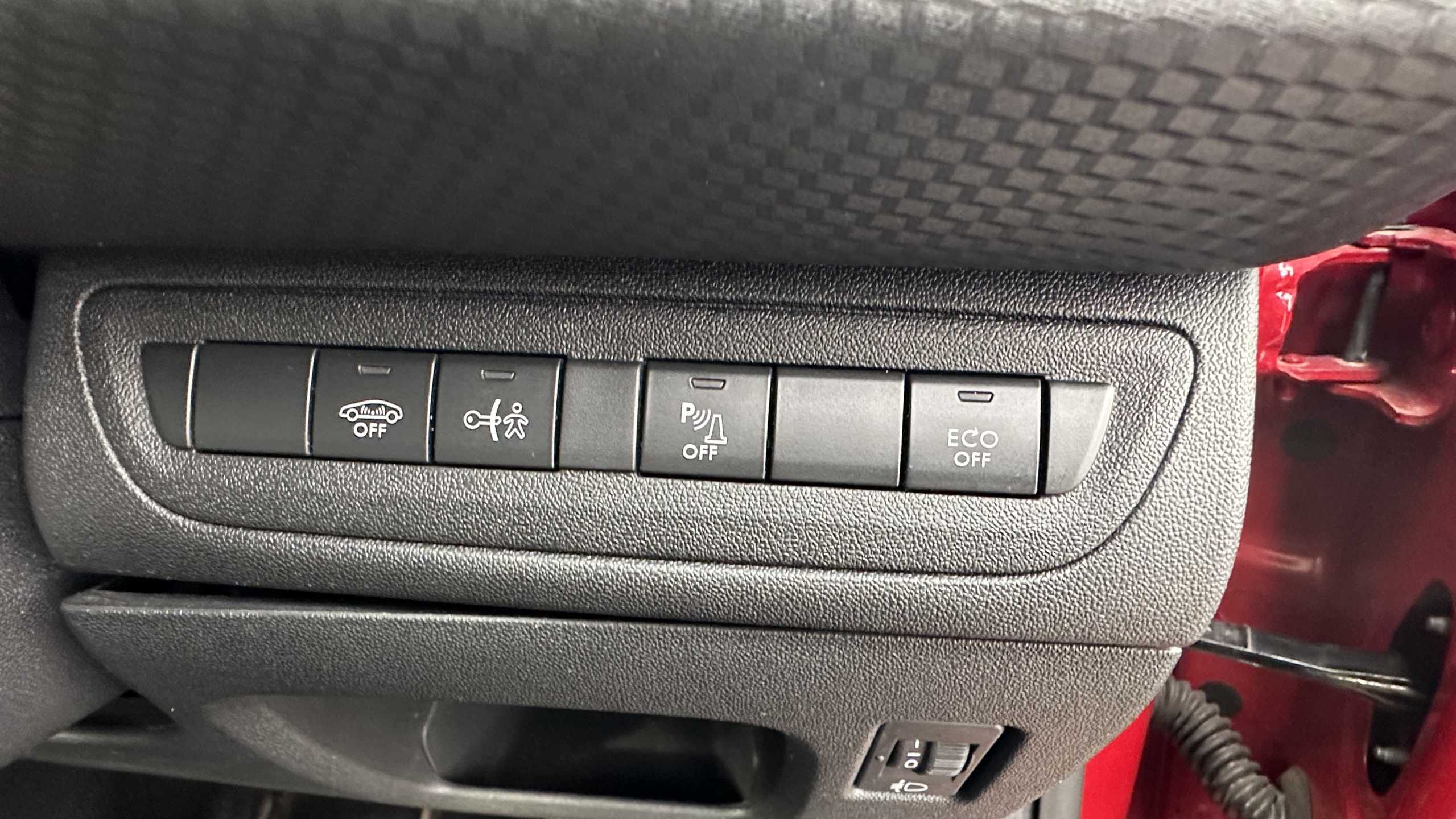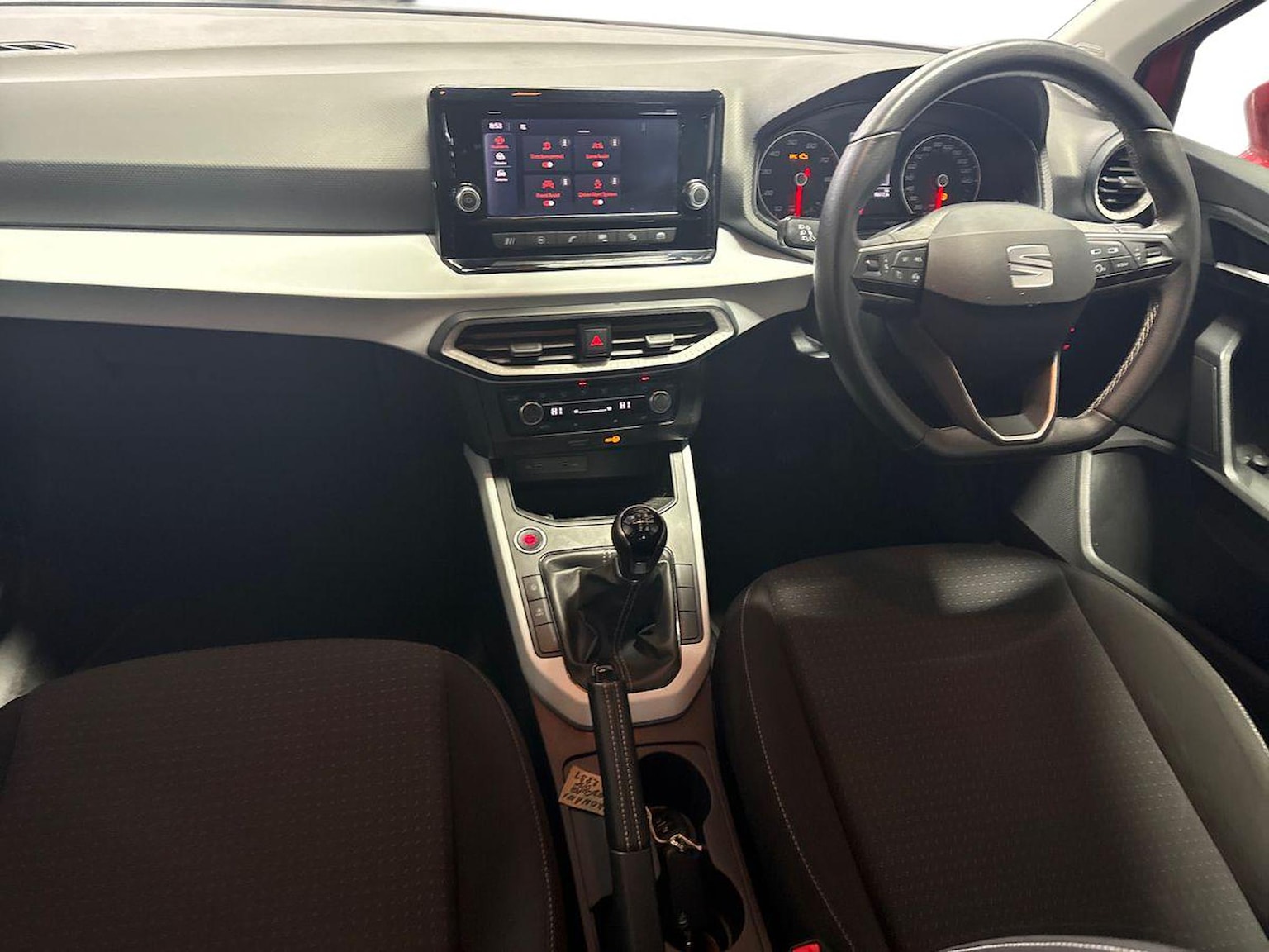 "Partial premium touch Sensico with black cloth inserts and red stitching",